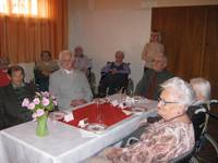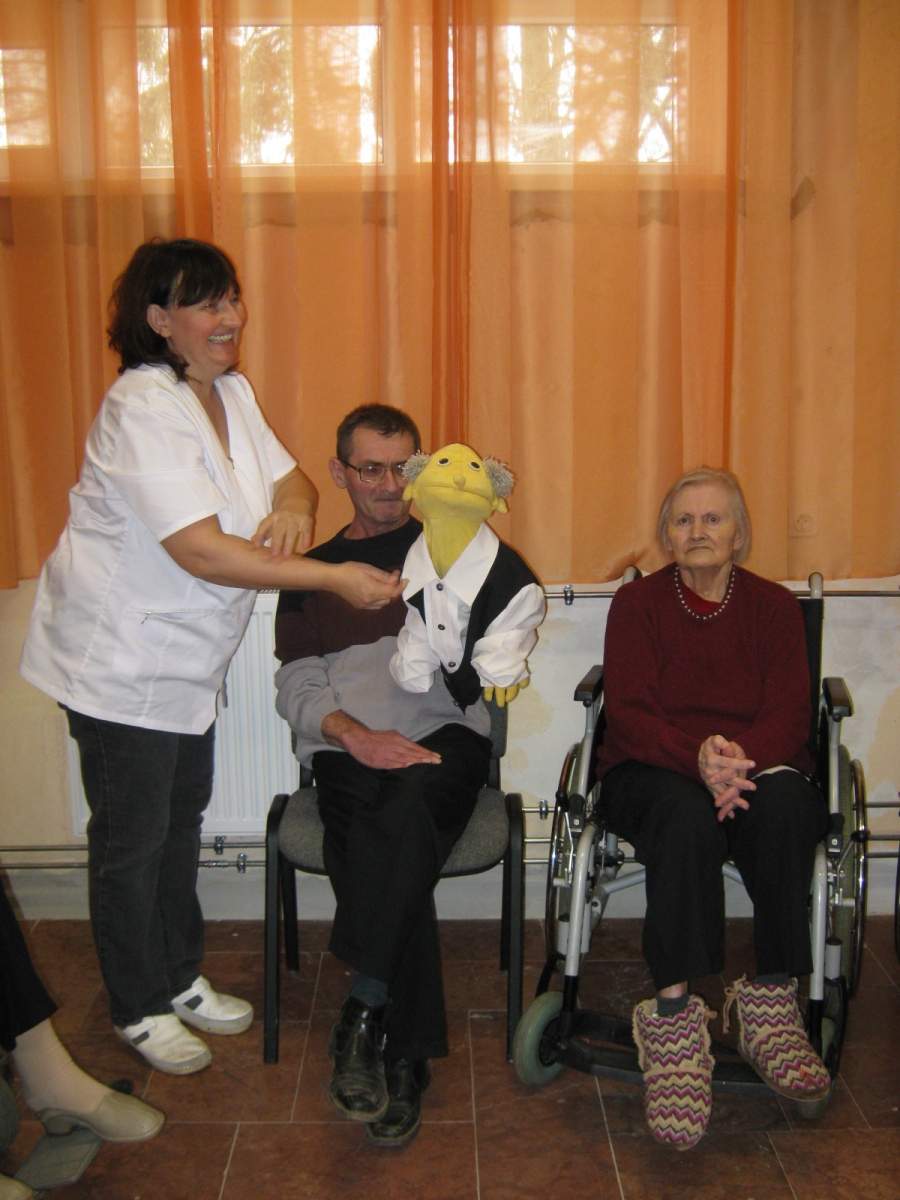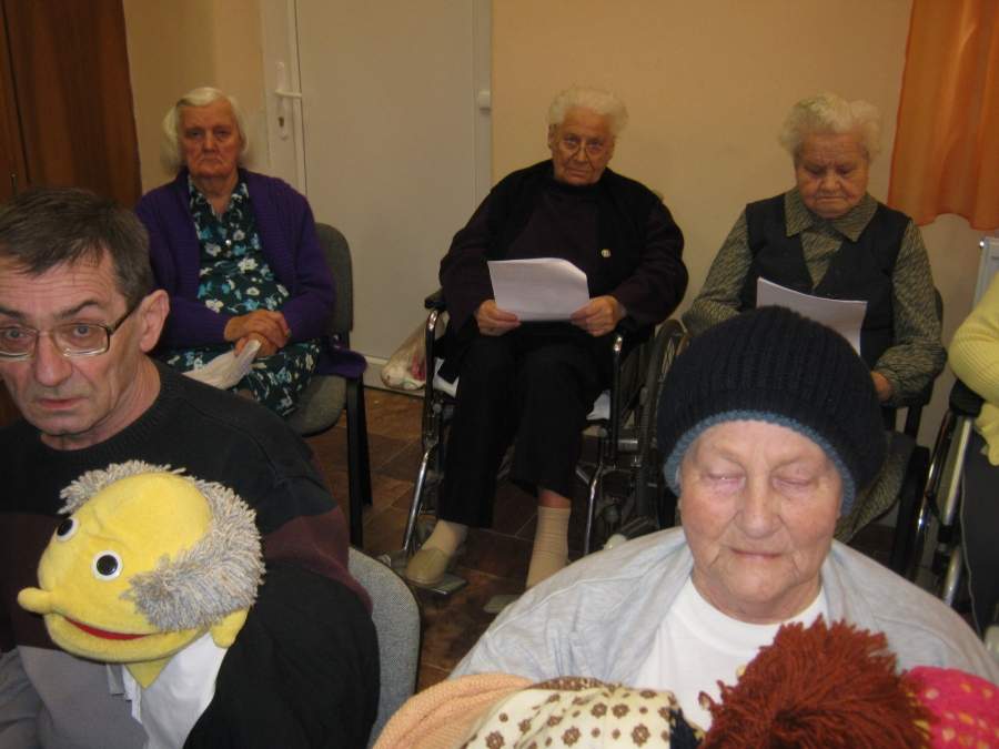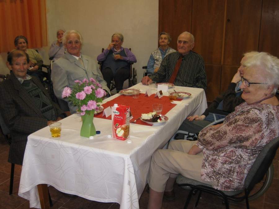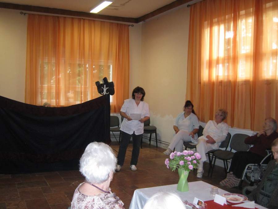 Ünnepi bábjátékkal és versekkel köszöntötték a lakók az ünnepelteket. Megható pillanatoknak lehettünk tanúi a csoportos és az egyéni köszöntésekkor. Az ünnepeltek részéről Gyopáros Nusi néni köszönte meg mindazt a szeretetet, amelyet közöttük átél.