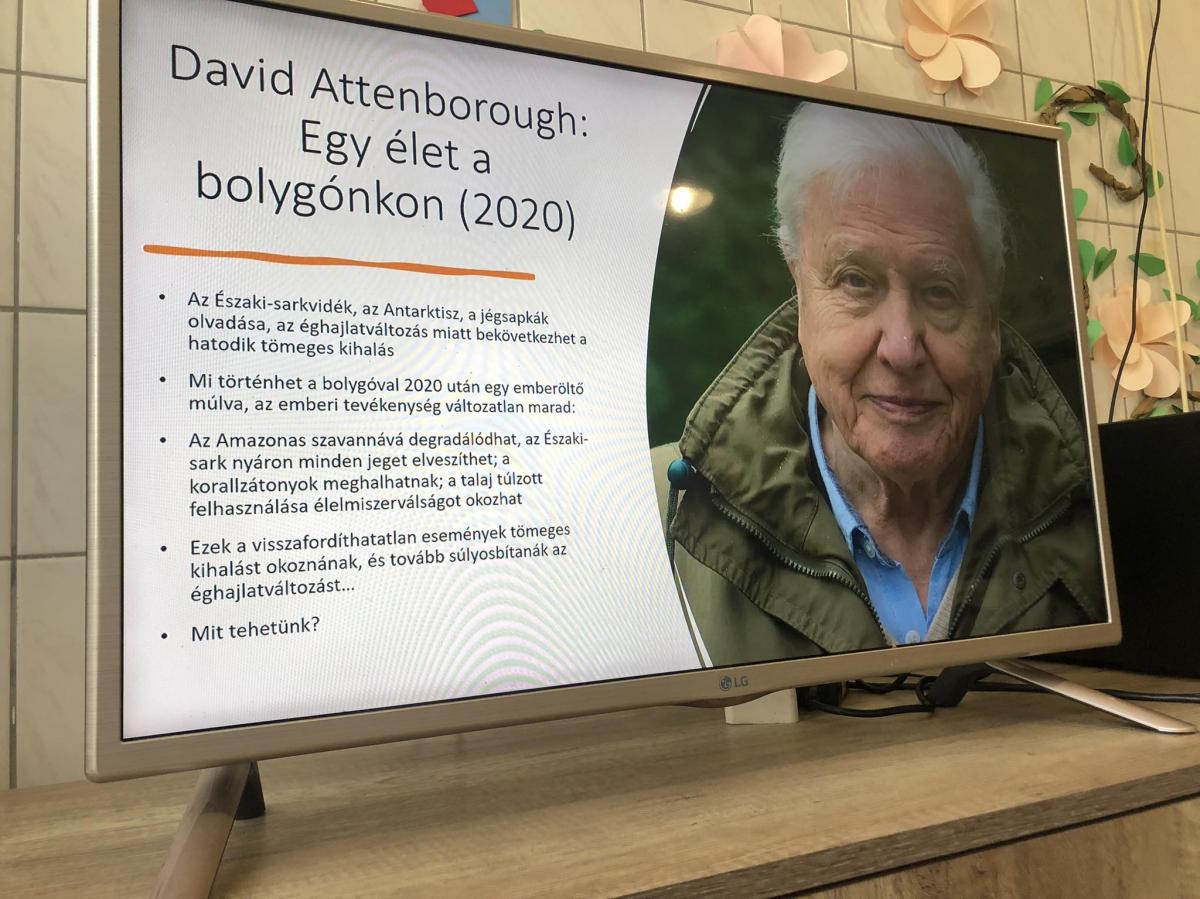 A  beszélgetésen szó esett a mozgalom céljáról, arról, milyen megújuló energiaforrásokat ismerünk, hazánkban ezek közül melyek alkalmazhatók leginkább, és, hogy mi mit tehetünk Földünk megóvása érdekében. Időseink nagyon érdekesnek találták az előadást és sokan tájékozottak is voltak a témában. David Attenborough: Egy élet a bolygónkon című filmjéről is hallhattak a jelenlévők.
