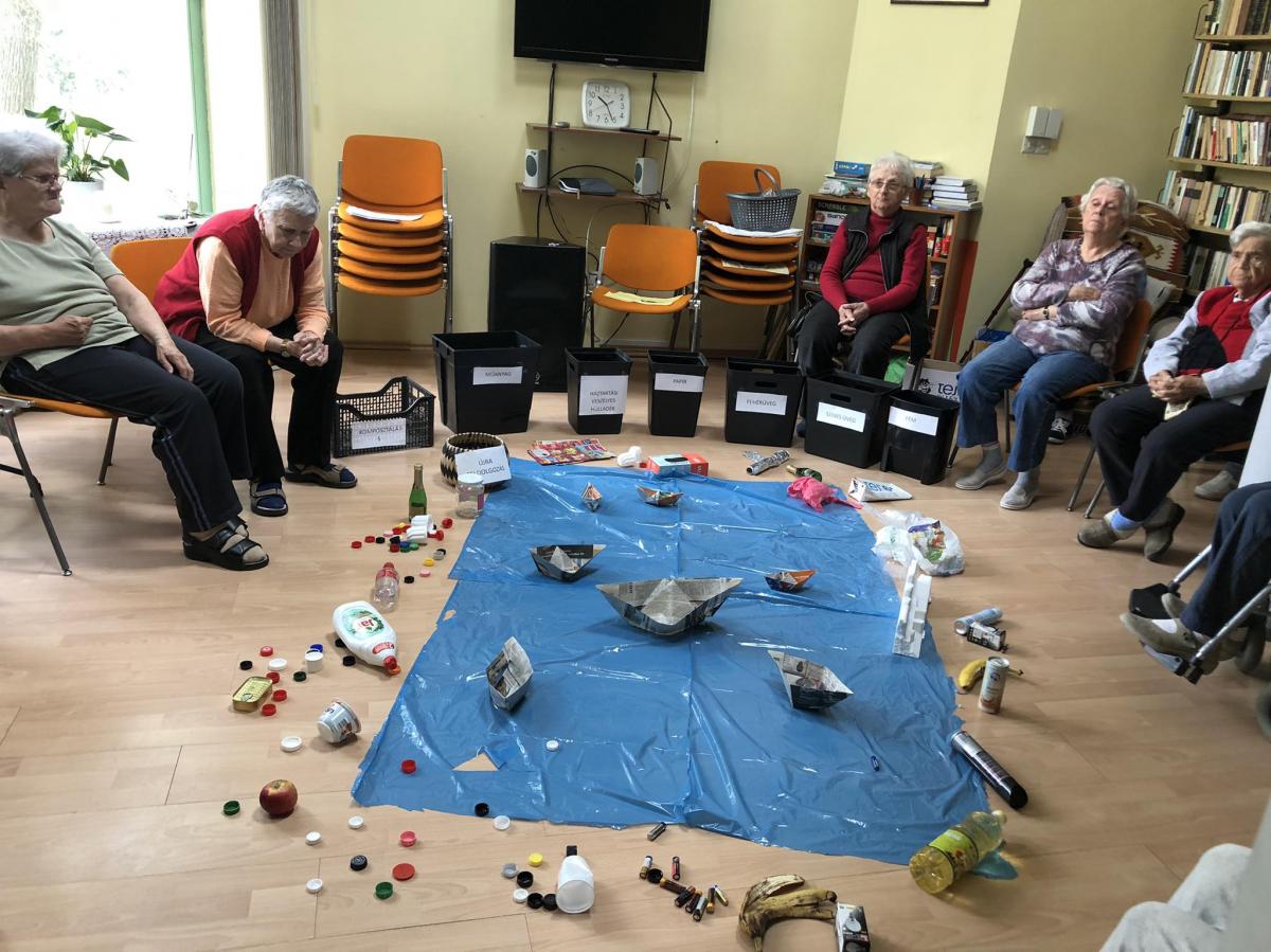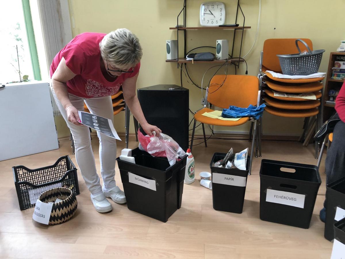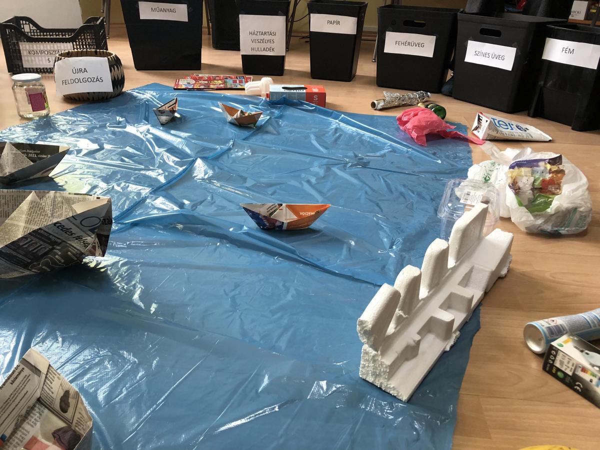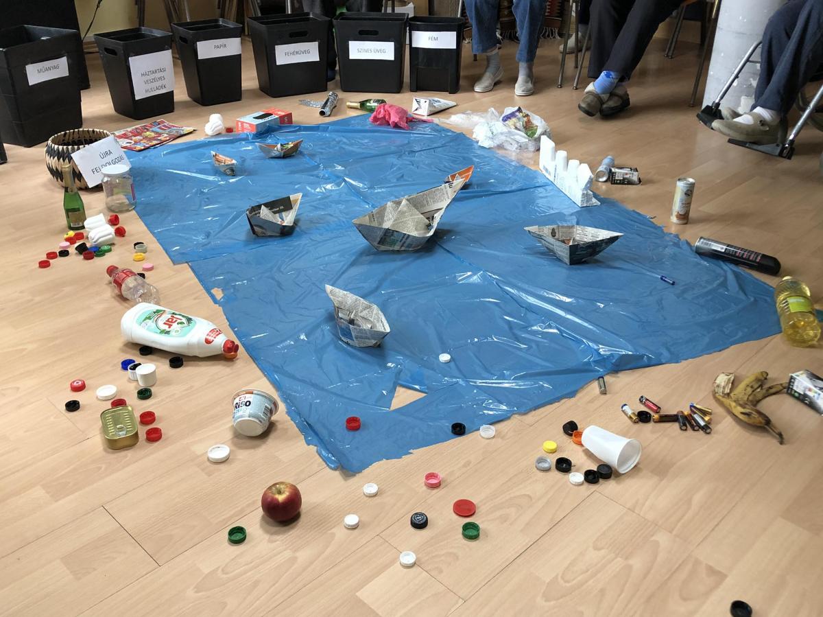 A papírból hajtogatott csónakok között műanyag-, fém-, veszélyes hulladék, üvegek „úsztak”. Lakóink feladata az volt, hogy ezeket a hulladékokat válogassák szét.