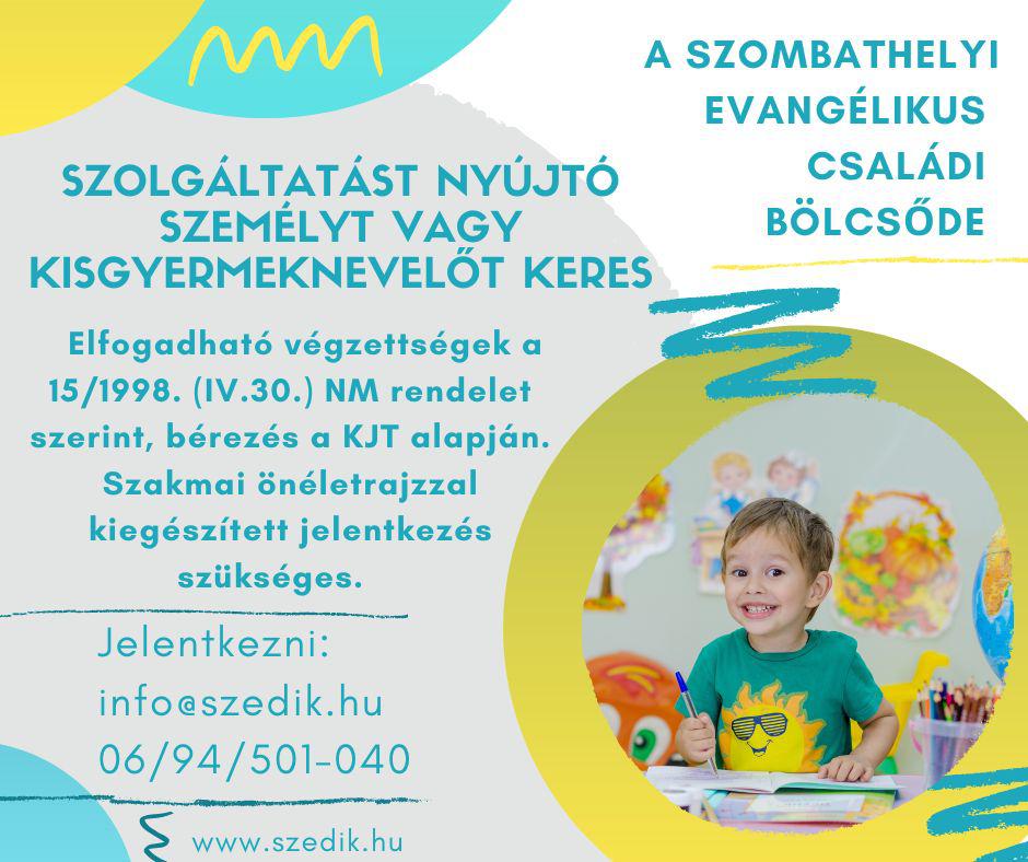 Kisgyermeknevelőt, szolgáltatást nyújtó személyt keresünk