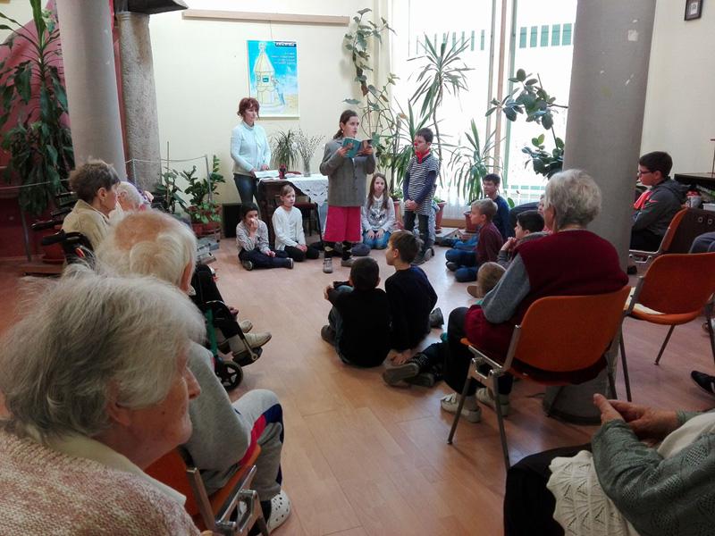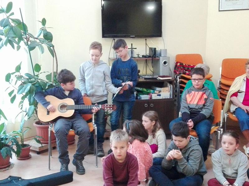 A Reményik iskola 3. osztályos diákjai énekkel, versekkel színesítették időseink délelőttjét.