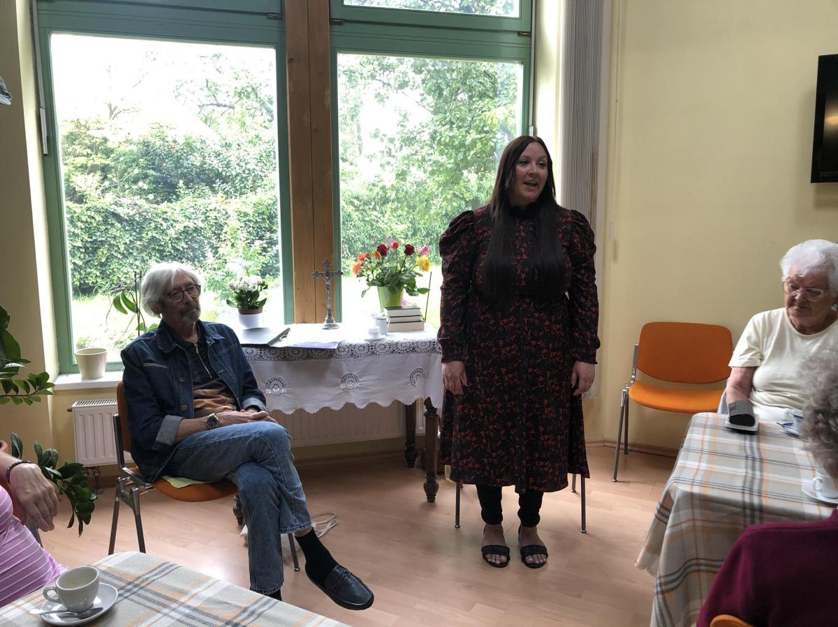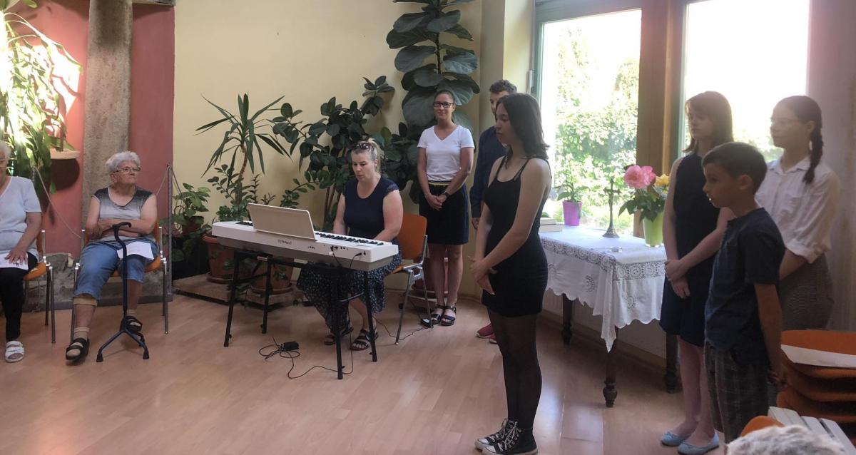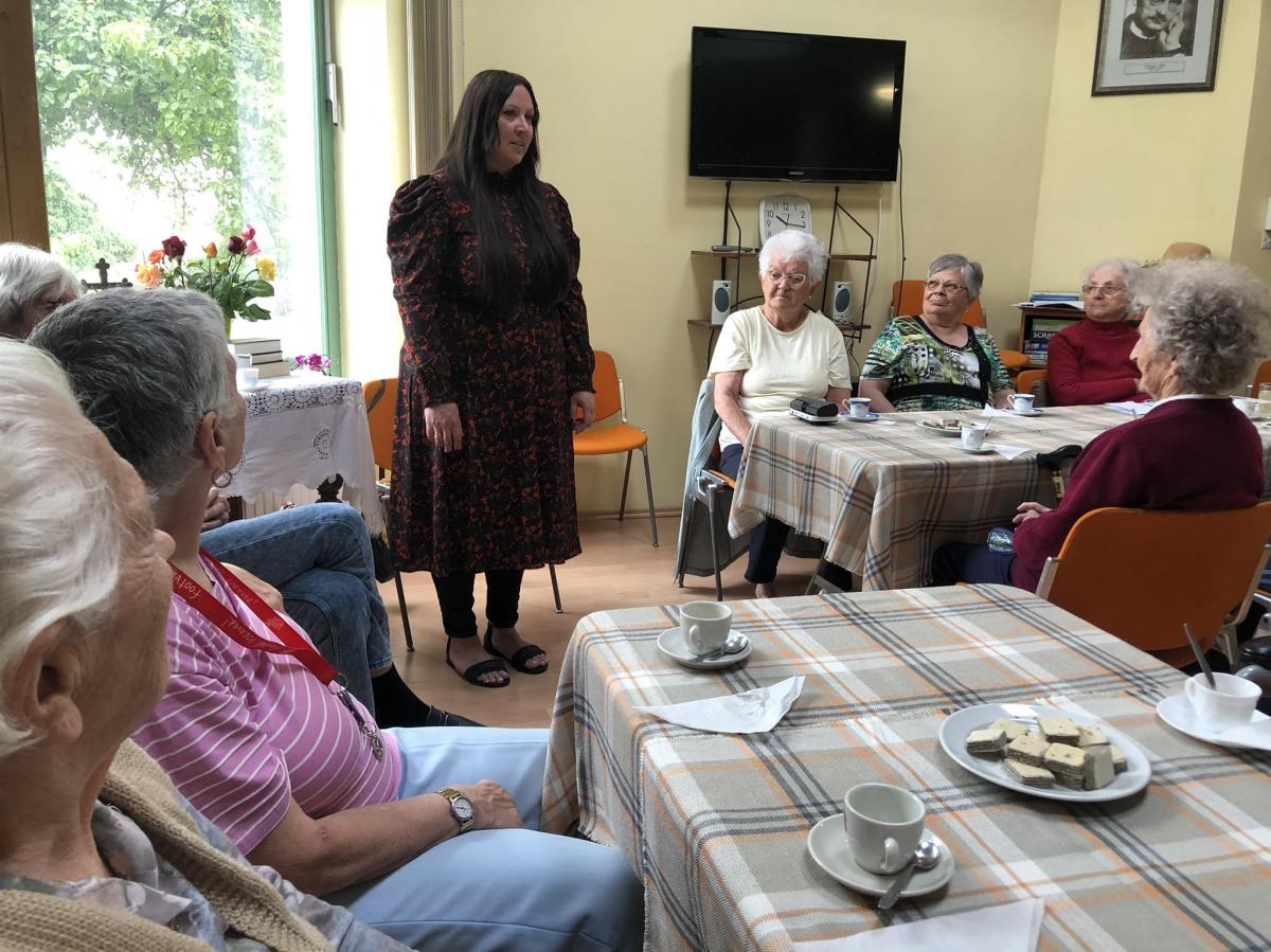 A fiatal édesanya a szombathelyi evangélikus gyülekezet tagja, szívesen érkezett a tanár úrral a szeretetotthonba. Egy versblokkal nyitották az alkalmat: Petőfi Sándor, Sziveri János, Tóth Krisztina, Zsille Gábor, Mécs László költemények is elhangoztak, sok érdekes információval kiegészítve.