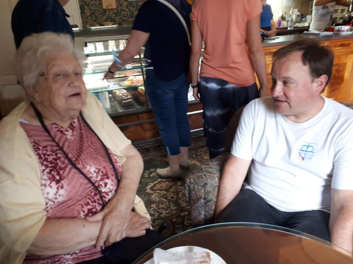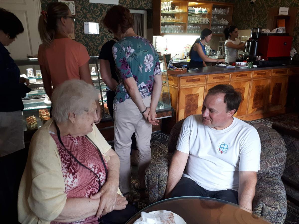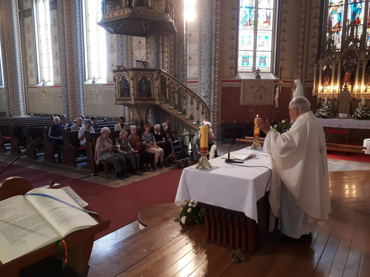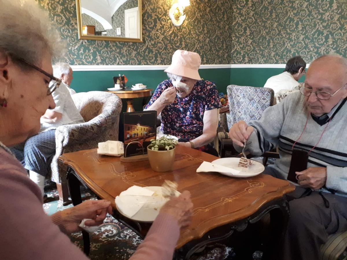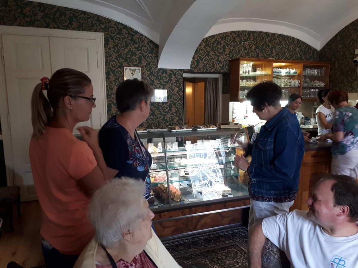 Dr. Perger Gyula atya szíves segítségével és hozzájárulásával időseink belülről is megcsodálhatták a város XIX. század végén épült, neogótikus stílusú plébániatemplomát. A történelmi belvárosban álló Jézus Szíve templom Vas megye második legnagyobb temploma a szombathelyi székesegyház után, s alkotója ugyanaz a Ludwig Schöne bécsi építész, kinek művei között a szombathelyi evangélikus templom is szerepel. A templom megtekintése után Horváth József atya misét celebrált lakóink számára. A mise után, a Fő téren járva idén is betérhettünk a város patinás cukrászdájába, a nevét az egykori Strauss vendégfogadóstól nyerő Arany Struccba, ahol kávé, üdítő és friss, helyben készített finomságok társaságában zárult a kirándulás.