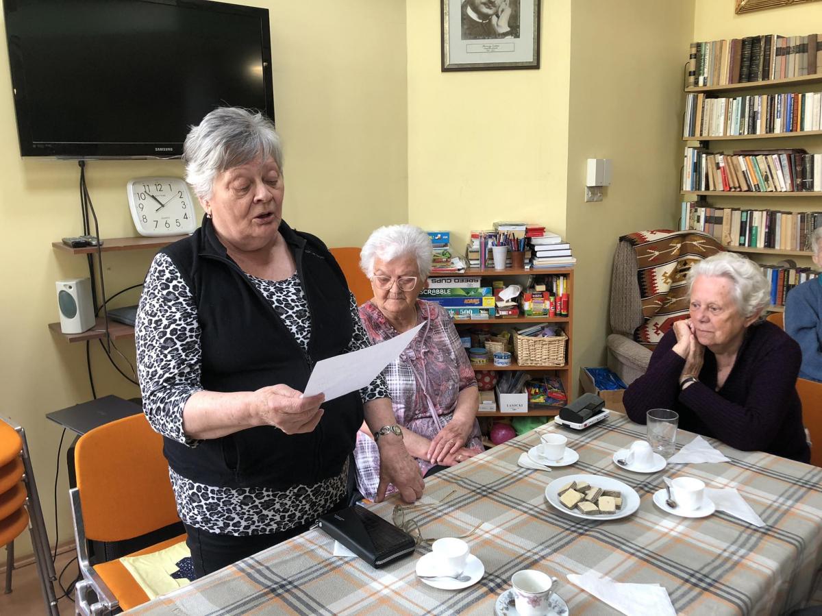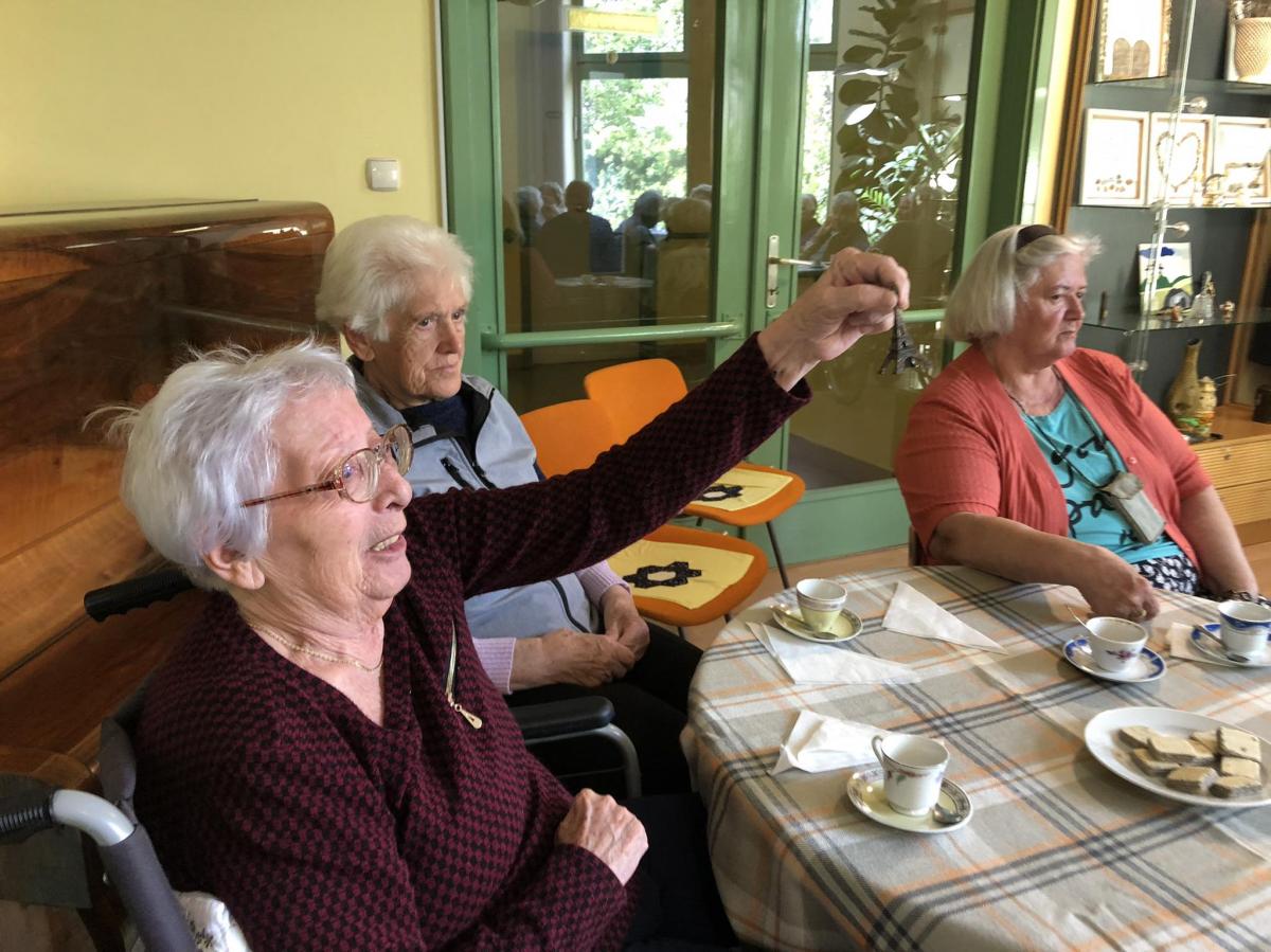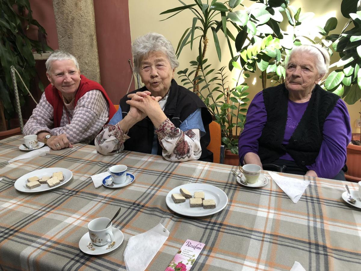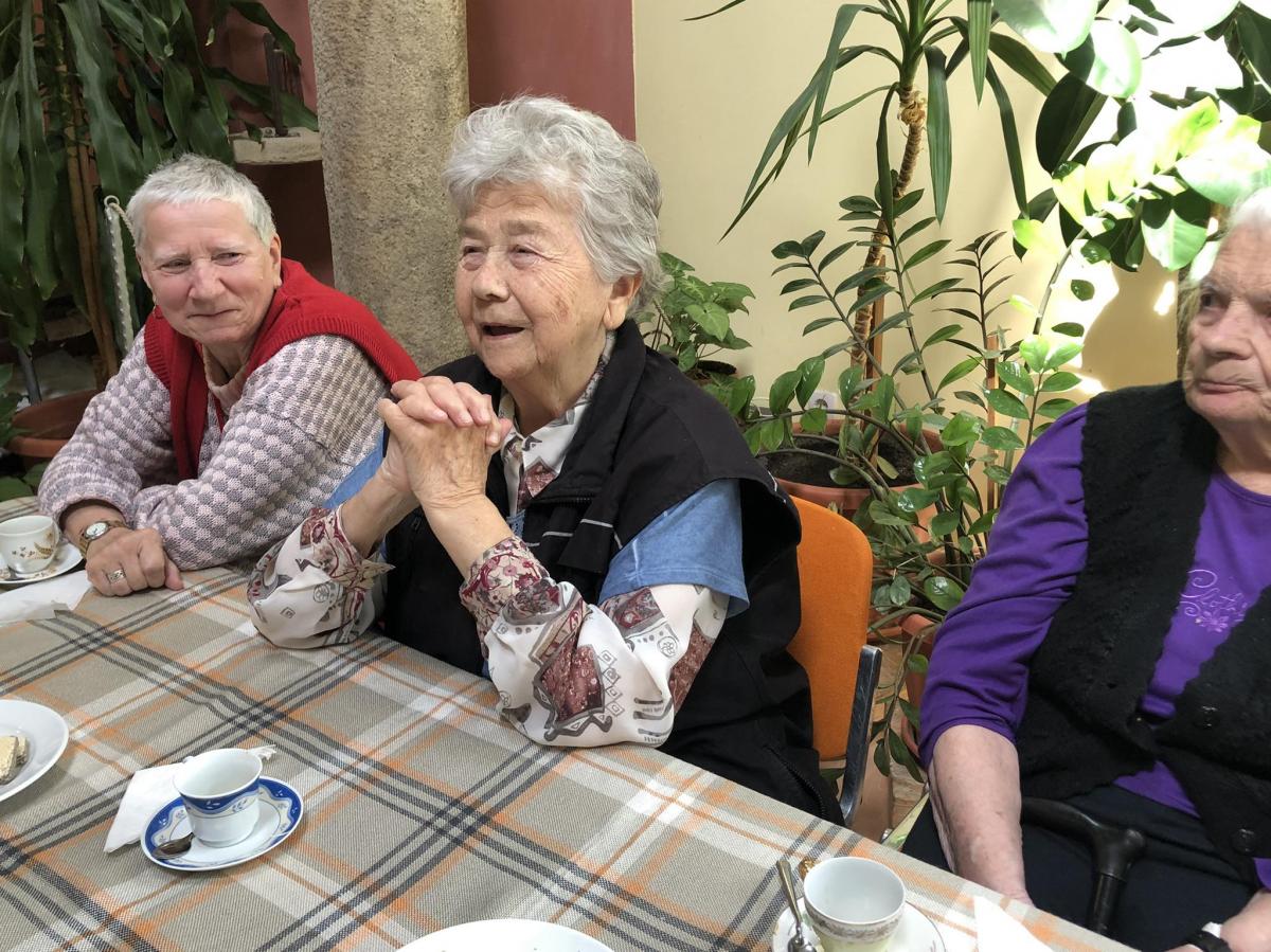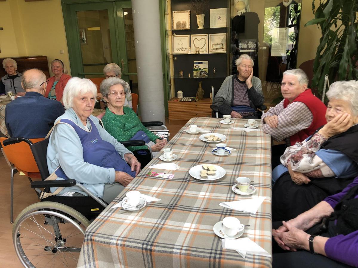 Sokszor érkezik a forró fekete és a sütemény mellé vendég is, vagy Fábiánné Domján Mária, az otthon mentálhigiénés munkatársa készül a szépkorúaknak érdekességekkel, rövidebb előadással.