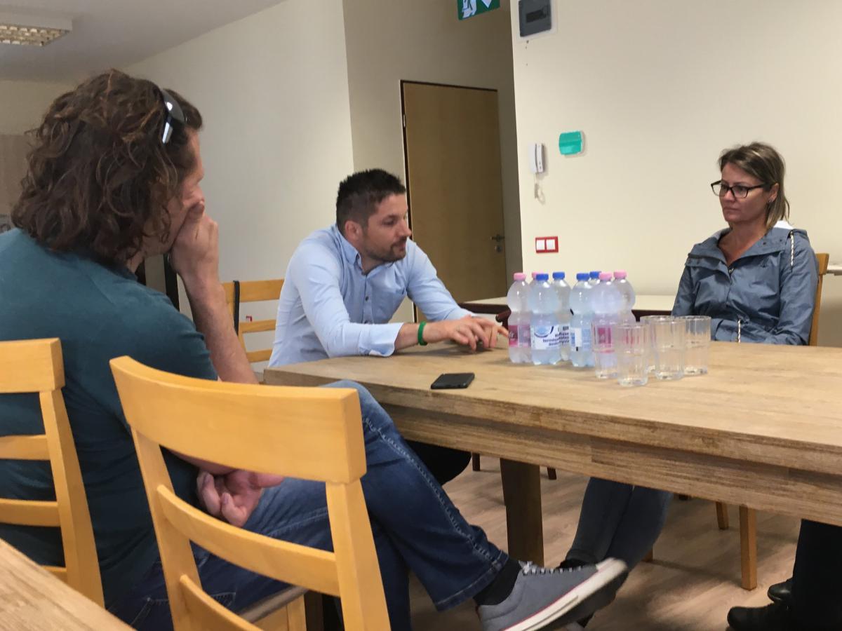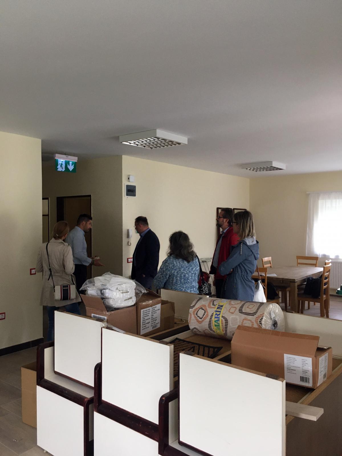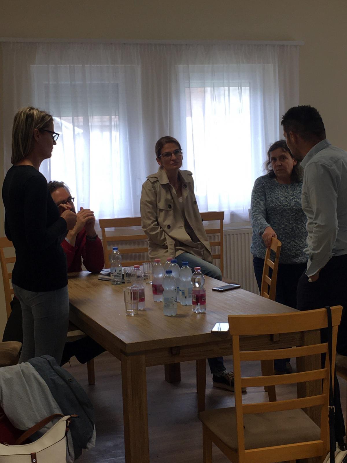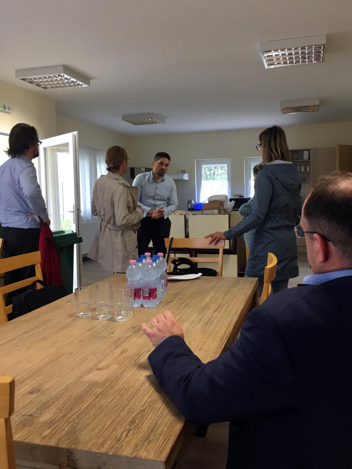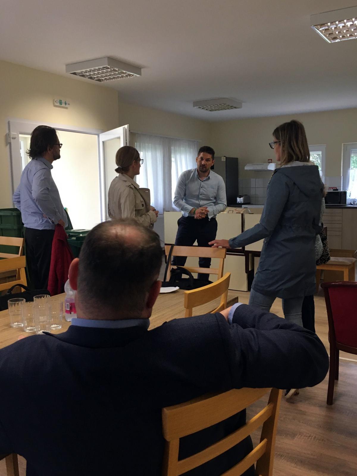 Ódor Richárd, a nagymúltú integrált intézmény vezetője fogadott bennünket szakmai tapasztasztalatszerző utunk célállomásán. Az 1951-ben alapított otthon székhelye Bucsuszentlászlón található, és további telephelyei vannak Kehidakustányban és Zalaapátiban. Az intézményegyüttes egykor a Fővárosi Önkormányzat, majd néhány éve már a Szociális és Gyermekvédelmi Főigazgatóság fenntartása alatt működik. Fogyatékkal élők, pszichiátriai- és szenvedélybetegek teljes körű ellátását végzi több ellátási formában. Minket közelebbről a sokszínű intézményi működés egy tényleges szelete érdekelt, mégpedig a szakmai berkekben egyre többet emlegetett intézményi férőhelykiváltás, más néven a „kitagolás” területén elért eredményeik. A lassan tíz éve elinduló, országosan több lépcsőben megvalósuló férőhelykiváltásba a zalai intézmény is bekapcsolódott. A pályázati pénzből megvalósuló fejlesztés során már három működő és egy átadásra váró, 12-12 főt befogadó lakóotthon kialakításával büszkélkedhetnek. Ódor Richárd intézményvezető az utóbbi, már kulcsrakész, gyakorlatilag a lakók beköltözésére váró ingatlanban fogadott bennünket. A kívülről egy megszokott családi háznak tűnő épület a falu főutcáján épült. Belépve egy tágas nappalival kombinált konyha, a lakás közösségi tere fogadott bennünket. Tovább haladva a ház felfedezésében a folyosóról jobbra és balra kétágyas hálószobák nyíltak, közös mosdóval, mosókonyhával, személyzeti szobával kiegészülve. Összességében egy modern, letisztult és remélhetőleg a használat során majd praktikusnak bizonyuló környezet benyomását tette ránk. Egy olyan miliő, amiben mi is szívesen tudnánk elképzelni azokat a lakóinkat, akik alkalmasak lennének erre az ellátási formára. Mert látogatásunkat ugyanis nem csak a pusztai szakmai kíváncsiság vezérelte, hanem a felkészülés a ránk is váró feladatra, hiszen a Szombathelyi Evangélikus Diakóniai Központ a közeljövőben bekapcsolódik az intézményi kiváltás fokozatos megvalósításába. Ódor Richárd intézményvezető úr bepillantást engedett abba a rendkívül összetett és elágazó folyamatba, amely a pályázattól, az ingatlan megszerzésén keresztül, a munkatársak szakmai képzéséig tart és számtalan buktatót, előre nem várt akadályt tartogat a szép, de nehéz feladatra vállalkozóknak. A kitagolás abból a nemes elgondolásból fakad, hogy az intézményi elhelyezésre támaszkodni kénytelen ember nem a társadalom jóindulatára szoruló, többed rangú, szánalomra ítélt személy, hanem egyanrangú embertársunk. Olyan testvérünk, aki személyre szabott segítséggel, a lehető legkevesebb korlátozással integrálható társadalmunkba. A fogyatékkal és mentális betegséggel élő ember ilyenforma közösségi megítélése még gyermekcipőben jár, ennek a szemléletnek a kialakítása hosszú és sok erőfeszítést igénylő feladat. Igazgató úr beszámolt a lakóotthonok helyének kiválasztásánál jelentkező, az emberek előítéletéből fakadó akadályokról is. A rendkívül érdekes beszámoló alatt pillanatok alatt elrepült az ott töltött szűk három óra. Nagyon hálásak voltunk Ódor Richárd intézményvezetőnek ezekért a hasznos, pótolhatatlan információknak, amelyeket megosztott velünk. Az ő hite, az intézményi kiváltás melletti elkötelezettsége inspiráló volt számunkra. Bízunk benne, hogy ez a találkozó egy jövőben is folytatódó kölcsönös szakmai együttműködés első állomása volt.
