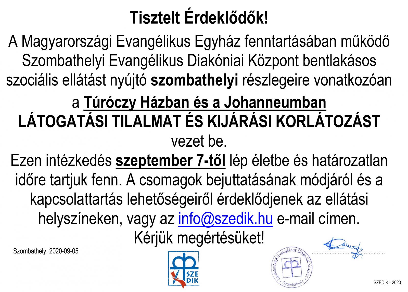 A Magyarországi Evangélikus Egyház a fenntartásában működő bentlakásos szociális intézményeire vonatkozóan látogatási tilalmat és kijárási korlátozást vezet be. Kérjük a lakók és hozzátartozók türelmét és együttműködését a ránk bízottak egészségének védelmében tett intézkedések során.