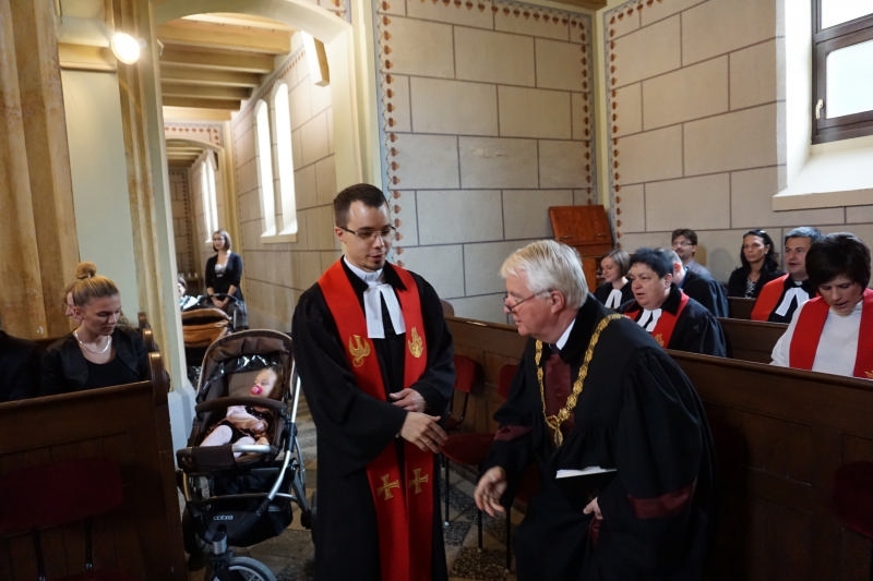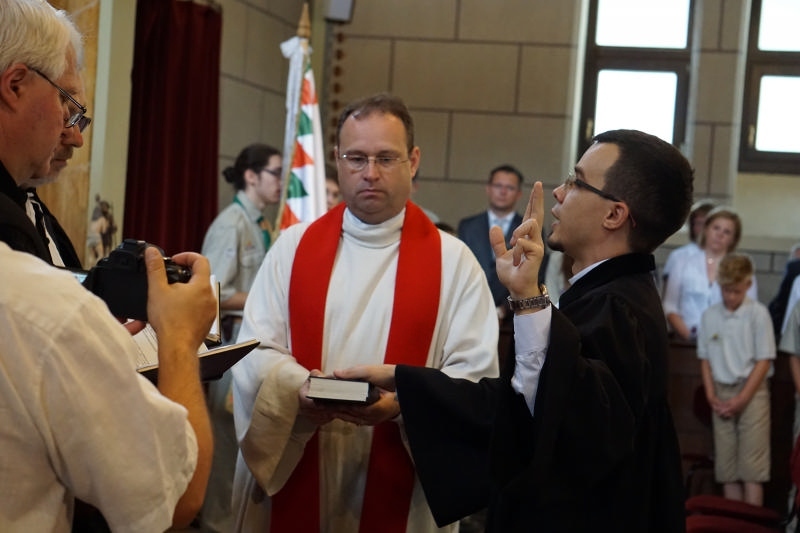 Az ordináció és az eskütétel felemelő pillanatai után – a lelkészjelölt kérésére – Gregersen-Labossa György és Szabó Lajos felhelyezték vállára a stólát. „Kérem mindazokat, akik a stólát használják, hogy Krisztus igájaként, a ráfigyelés jeleként hordják. Ugyanakkor ne felejtsék el, hogy nem a jelkép az igazán fontos, hanem az az engedelmesség, amit Krisztus mindannyiunktól vár” – hangsúlyozta Szemerei János.