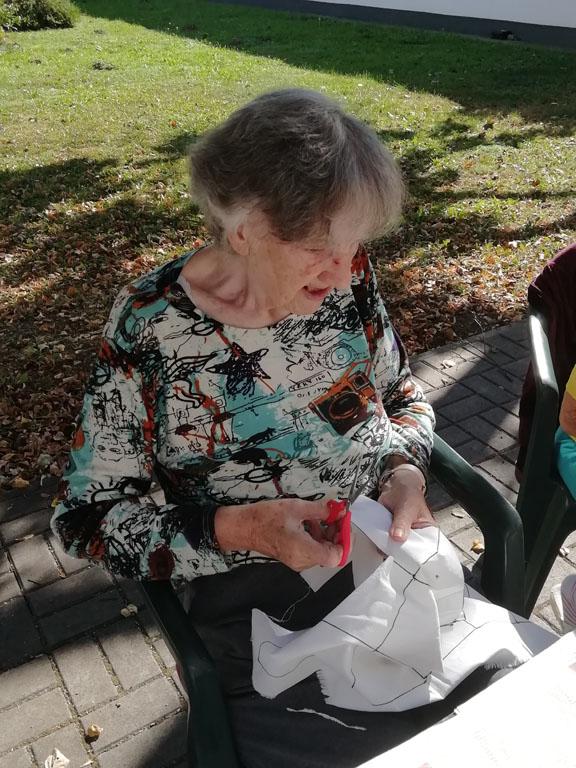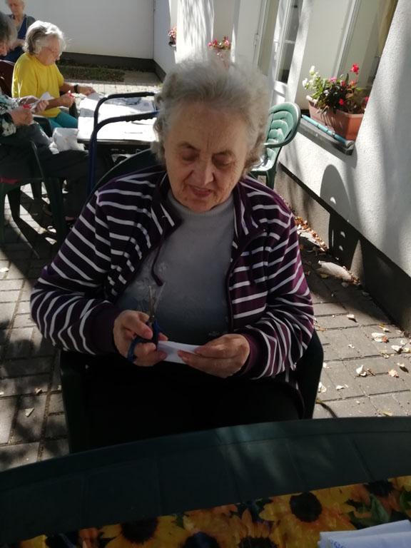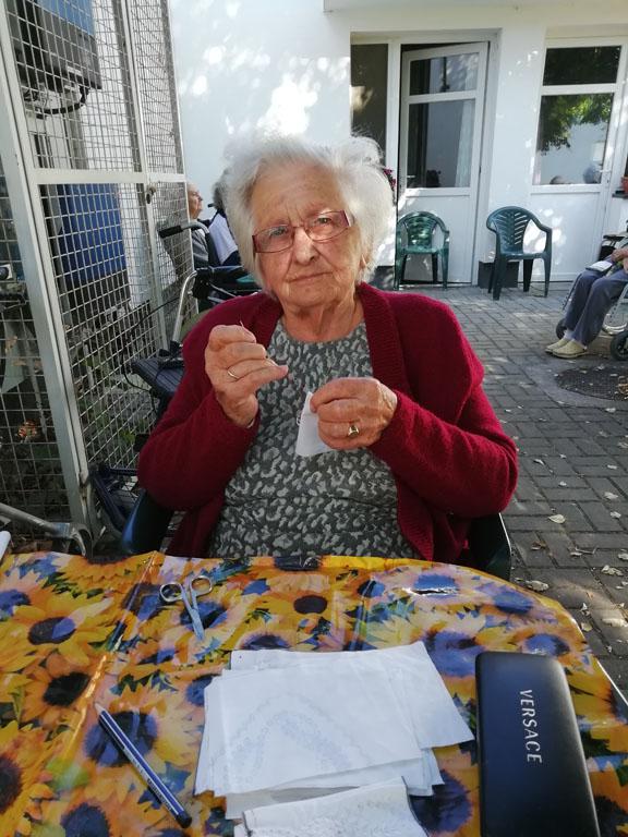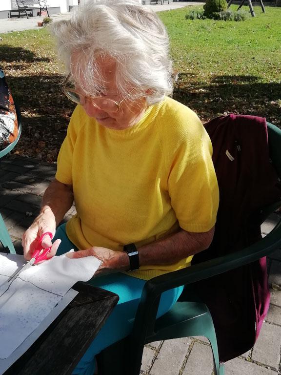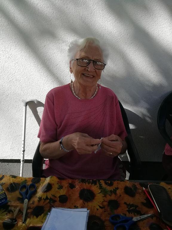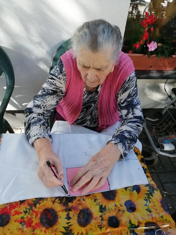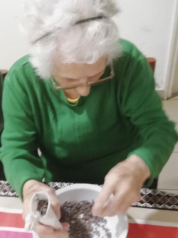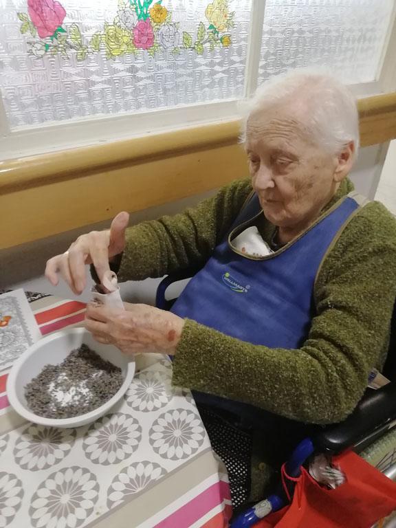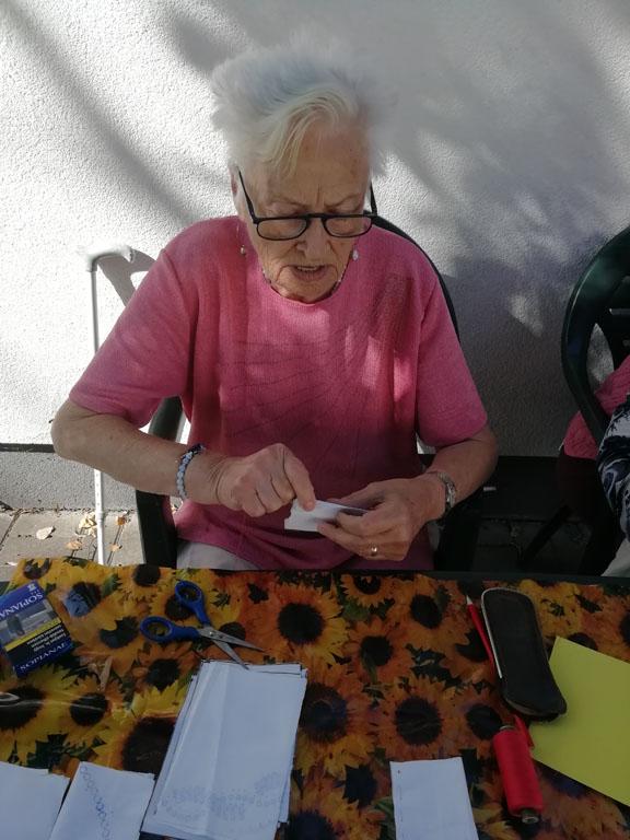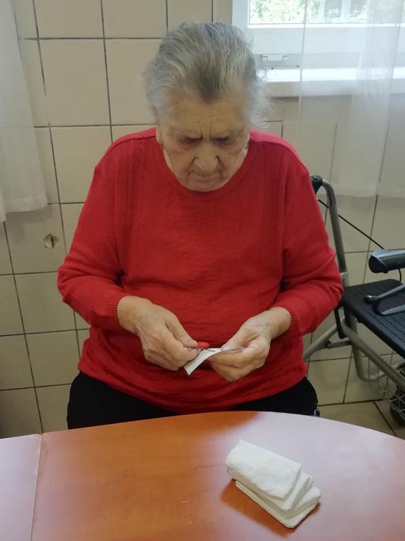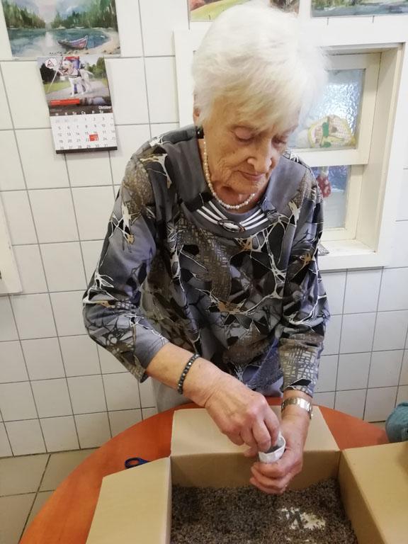 Első alkalommal még jó időben az udvaron kezdték el a szorgoskodást lakóink, de az eső elől behúzódva végül az osztályokon fejezték be a munkát. Saját szekrényeikbe készítették a kis tasakokat. Mindenki saját maga töltötte meg a zsákot az osztály udvarán termett, majd gondosan elrendezett levendulával. Az illatozó zsákocskák sok emléket elevenítettek fel, amiről egymásnak szívesen meséltek.