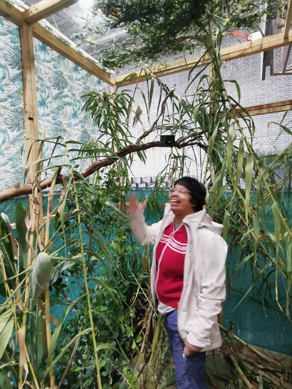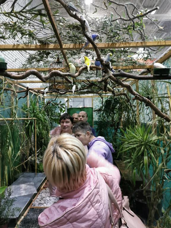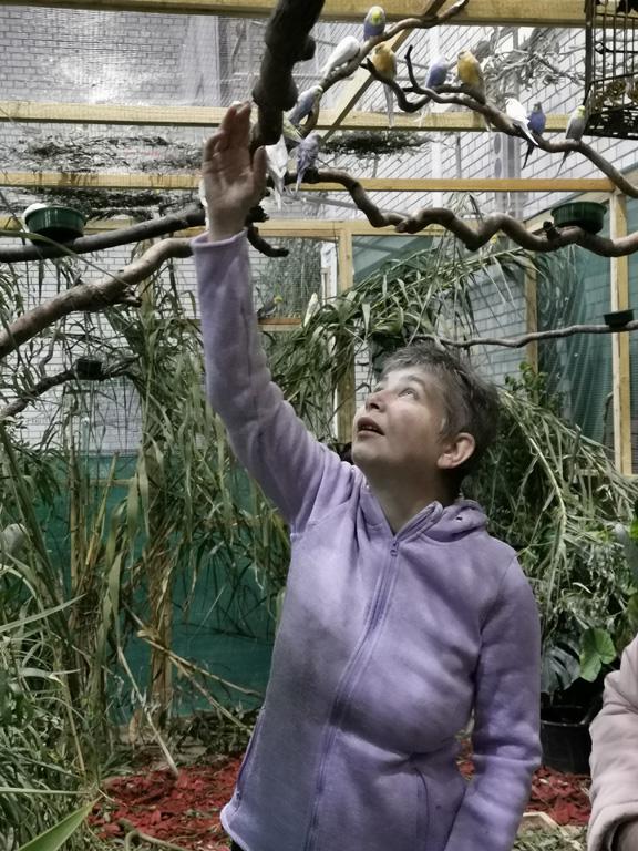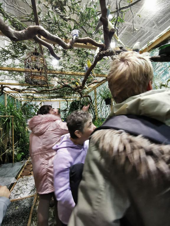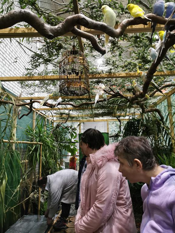 Különböző madarakat láthattunk. A fiataljaink örültek, hogy ott lehettek, tetszett nekik a kiállítás. Volt, aki beszélt és énekelt a papagájoknak. Most még dzsungelben is járhattunk, ahol a madarak szabadon repültek a fejünk felett. Jó volt látni lakóink örömteli, vidám arcát.