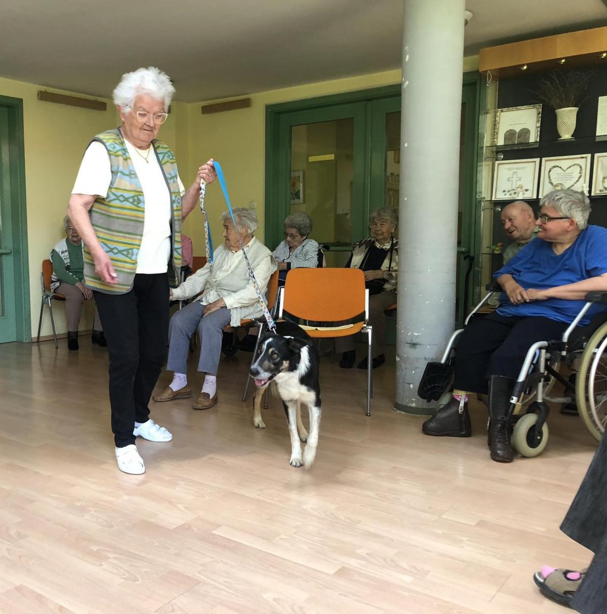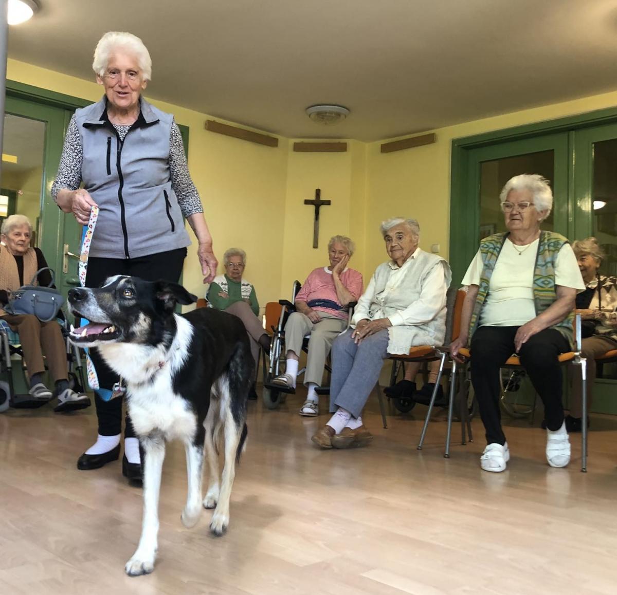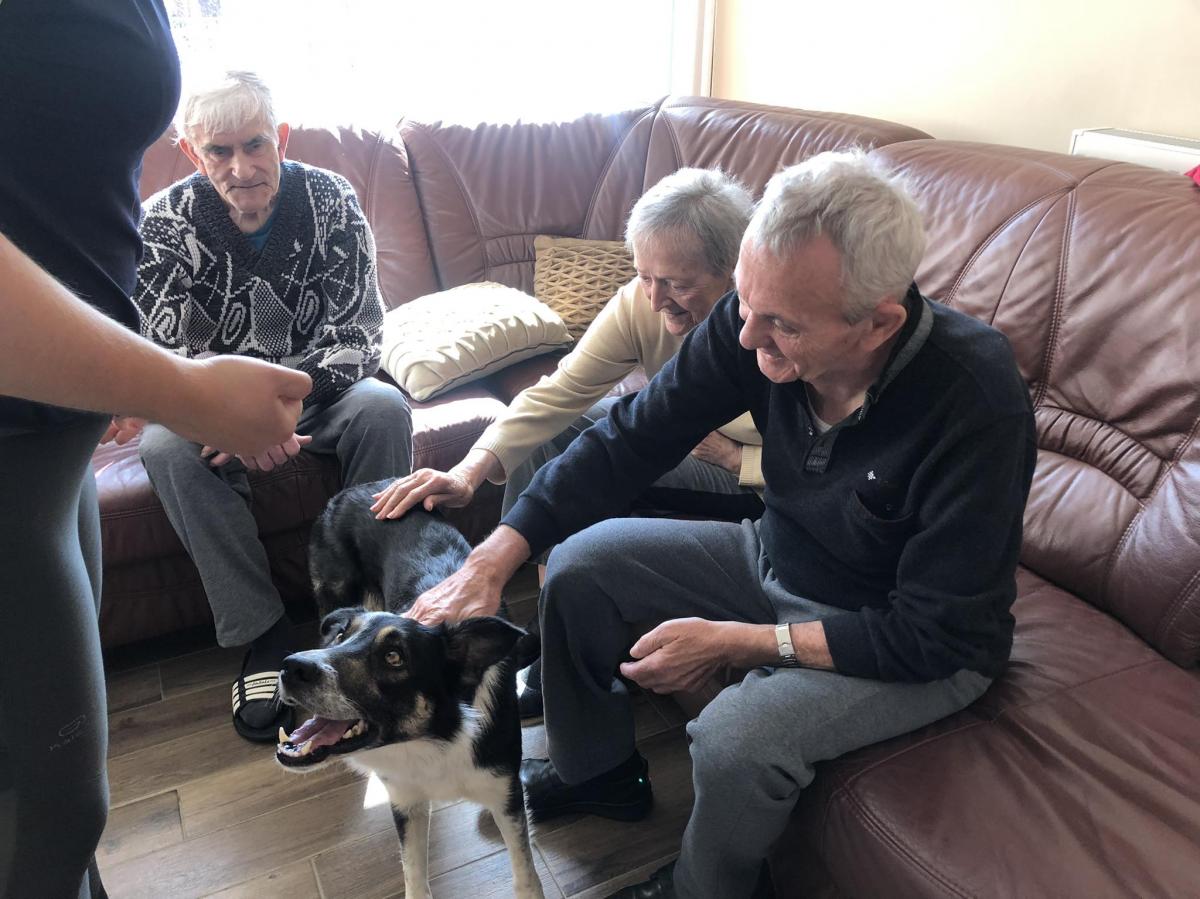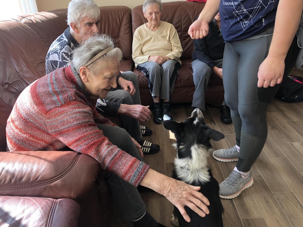 Továbbra is nagy népszerűségnek örvendenek központunkban a kutyaterápiás foglalkozások, amelyeken Bartalis Viktória és terápiás kutyusa Jamie számtalanszor csal mosolyt lakóink arcára. Nem mellesleg nagyon hasznosak is ezek a programok, hiszen a terápia pozitív hatással bír az idős, akár demenciával élő emberekre, az értelmi sérültek esetében fejlődés érhető el.