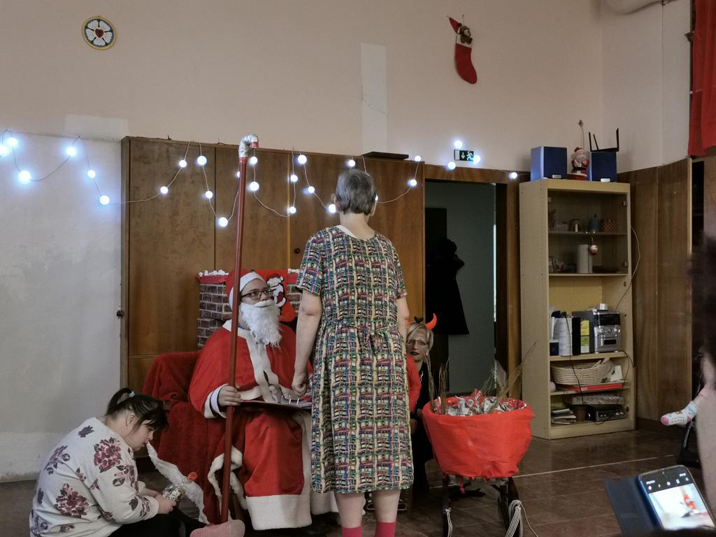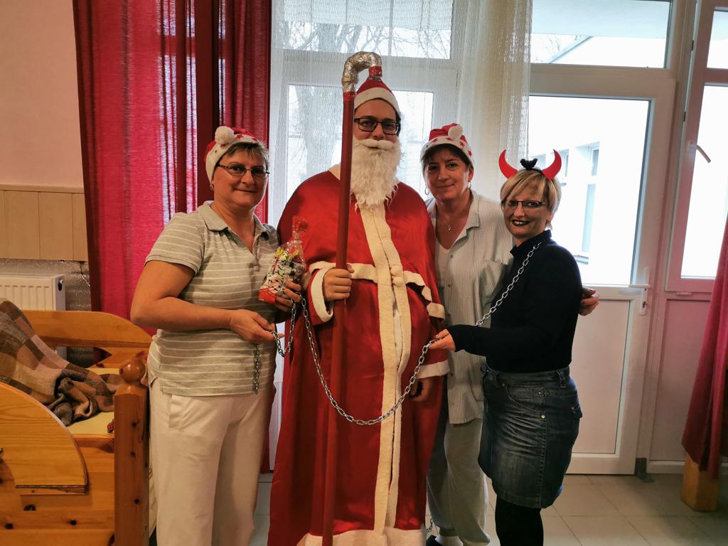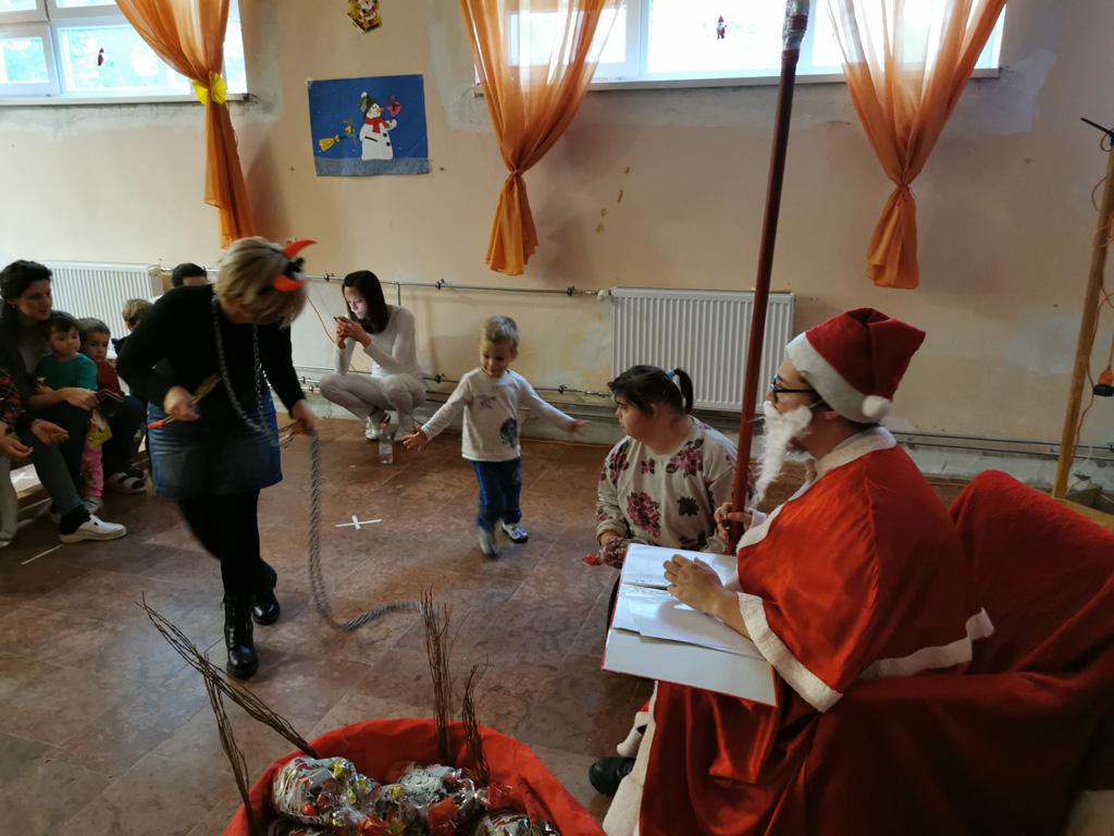 Elérkezett a várva várt nap, megérkezett a Mikulás segédjével a krampusszal. Előkerült a Télapó nagy piros könyve is, amiből felolvasta a manók által írt jelentéseket. Csomagukat megkapva énekkel búcsúztak el fiatalok a Mikulástól. De nemcsak a fiataljainkat látogatta meg, hanem az időseket és persze a dolgozók se maradhattak ki. Jutott mindenkinek egy - egy szaloncukor. Mellettük még ellátogatott a családi bölcsőde gyermekeihez, akik megszepenve, de boldogan mentek ki átvenni a csomagjaikat. A krampusz idén is munkanélkül maradt.