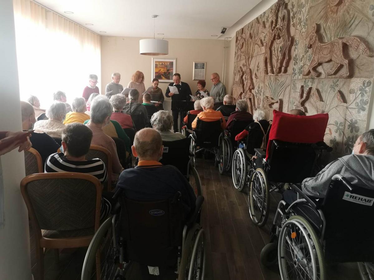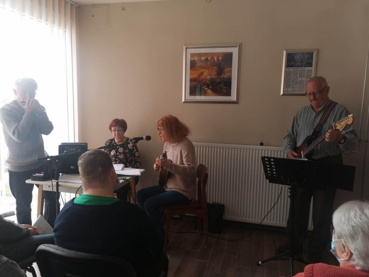 Nem először hozott intézményünkbe színvonalas összeállítást Rozán Eszter, szombathelyi író és baráti köre. A zenés irodalmi műsort a költészet napja alkalmából láthatták a Johanneum lakói.
