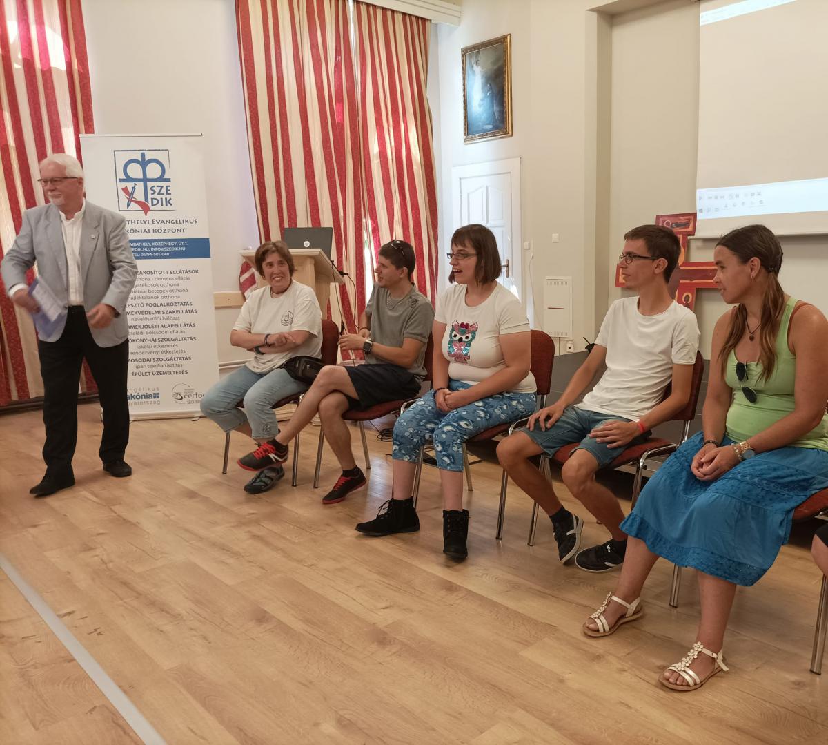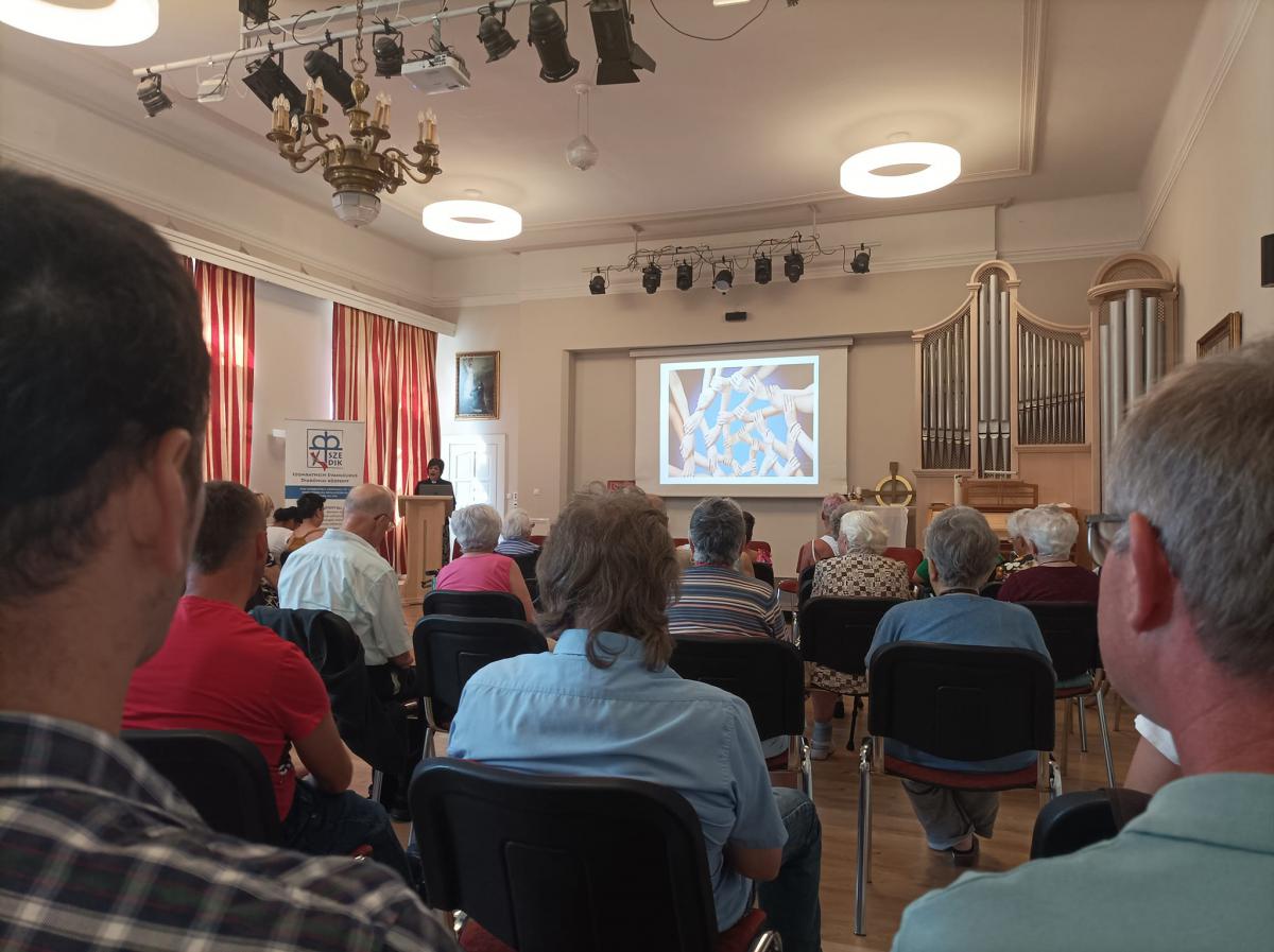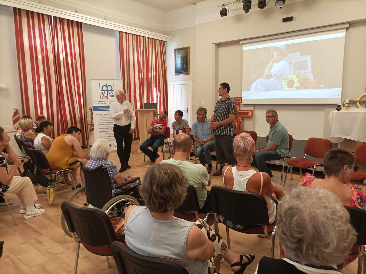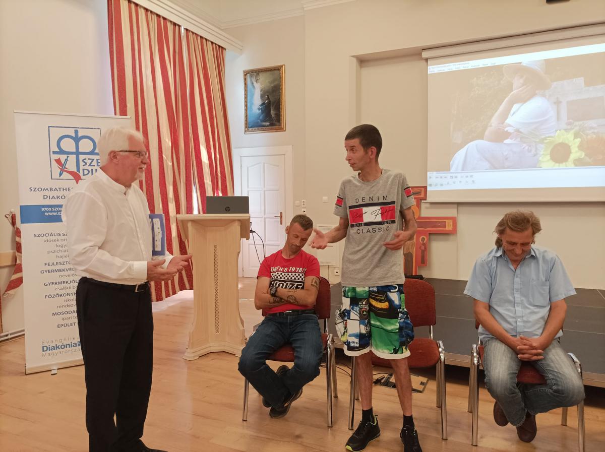 Szabó Miklós intézményvezető úr köszöntője és Steindl-Papp Judit evangélikus lelkésznő áhítata egymás elfogadására, a másik ember segítésére és e különleges szakmai munkára hívta fel a figyelmet, s arra az útra, melyen nem járunk egyedül. Az ágfalvi telephelyünk pszichiátriai otthonának Ágfalvi Filmes Csoportja és a FÉHE Szombathelyi Speciális Filmes Csoportja hozták el nekünk filmjeiket, melyek között több díjnyertes alkotás is volt. Elgondolkodtató, lelkeket megérintő filmeket láthattunk, s bizonyossá vált, hogy a film nagyszerű lehetőséget ad az önkifejezésre. Lehetőség nyílt érdekes, kulisszák mögé is betekintést engedő derűs beszélgetésekre, melyeket Lovass Tibor, a szombathelyi evangélikus gyülekezet felügyelője vezetett. Az alkotók és segítőik közös ebéddel zárták a programot.