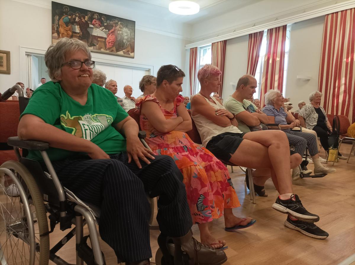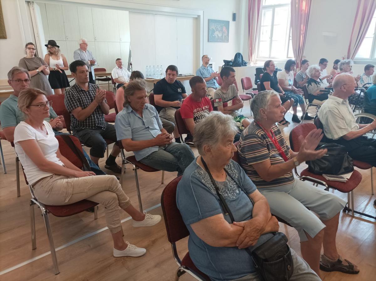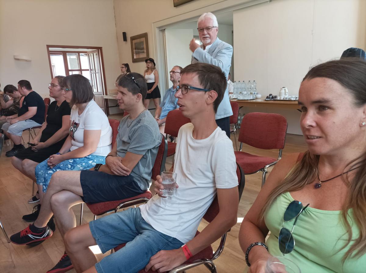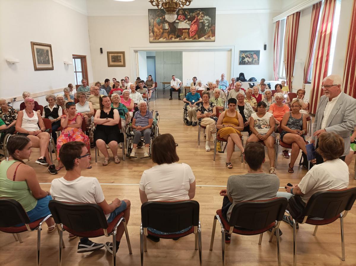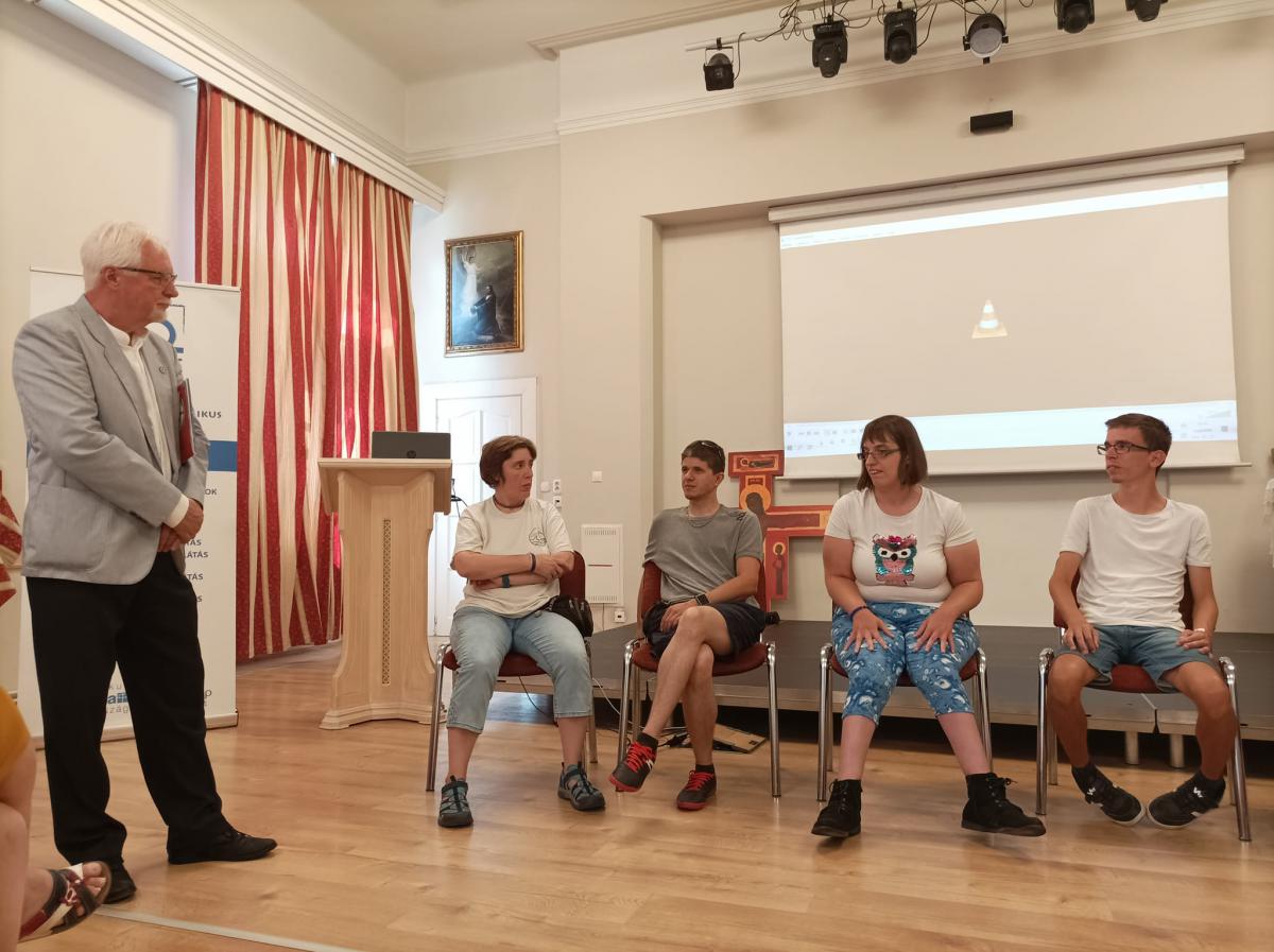 Szabó Miklós intézményvezető úr köszöntője és Steindl-Papp Judit evangélikus lelkésznő áhítata egymás elfogadására, a másik ember segítésére és e különleges szakmai munkára hívta fel a figyelmet, s arra az útra, melyen nem járunk egyedül. Az ágfalvi telephelyünk pszichiátriai otthonának Ágfalvi Filmes Csoportja és a FÉHE Szombathelyi Speciális Filmes Csoportja hozták el nekünk filmjeiket, melyek között több díjnyertes alkotás is volt. Elgondolkodtató, lelkeket megérintő filmeket láthattunk, s bizonyossá vált, hogy a film nagyszerű lehetőséget ad az önkifejezésre. Lehetőség nyílt érdekes, kulisszák mögé is betekintést engedő derűs beszélgetésekre, melyeket Lovass Tibor, a szombathelyi evangélikus gyülekezet felügyelője vezetett. Az alkotók és segítőik közös ebéddel zárták a programot.