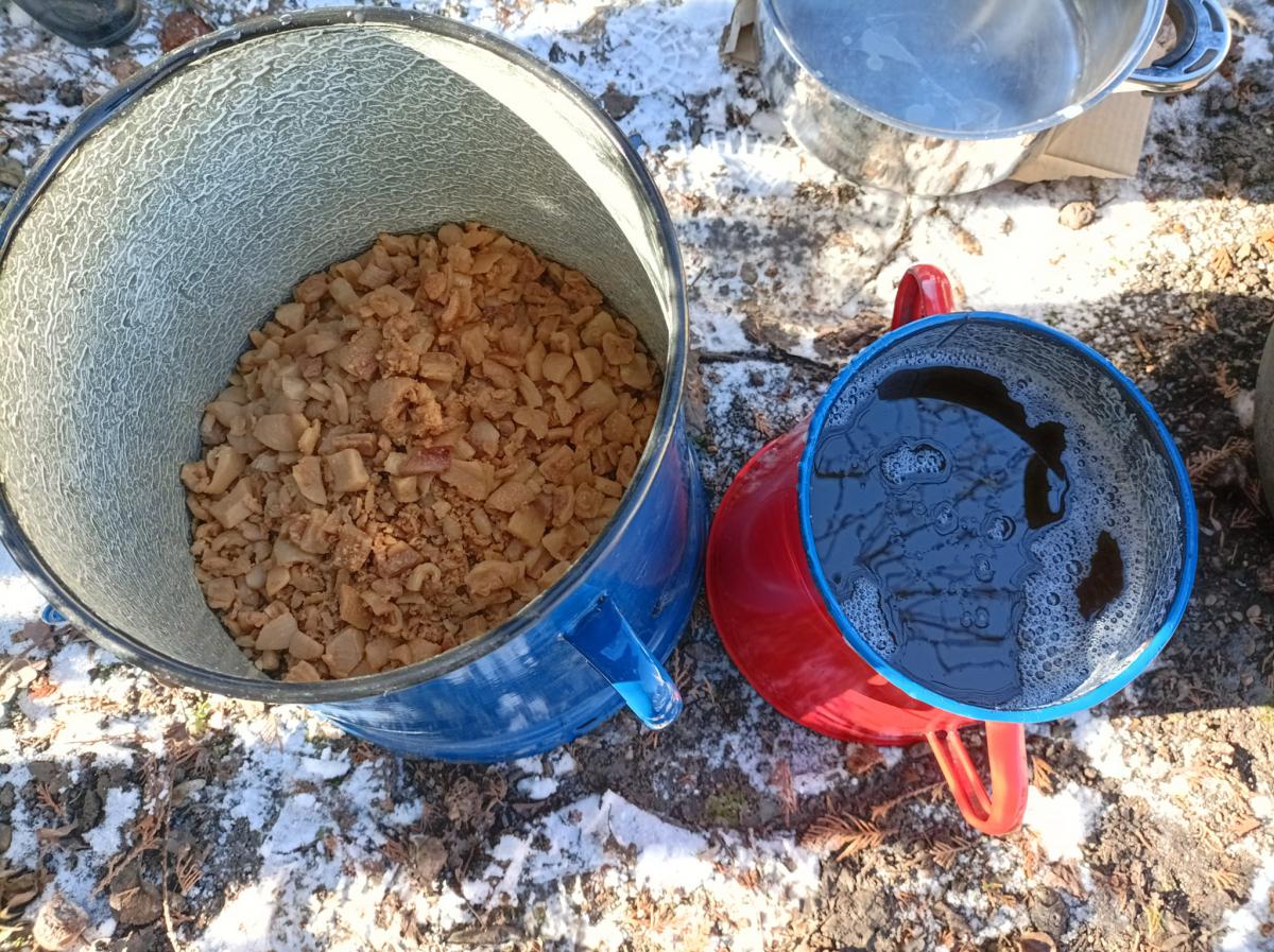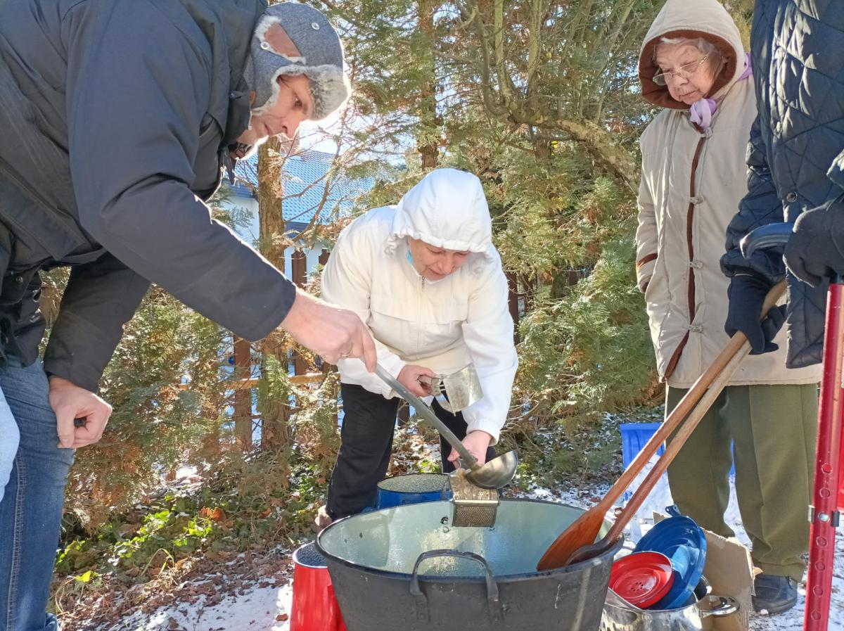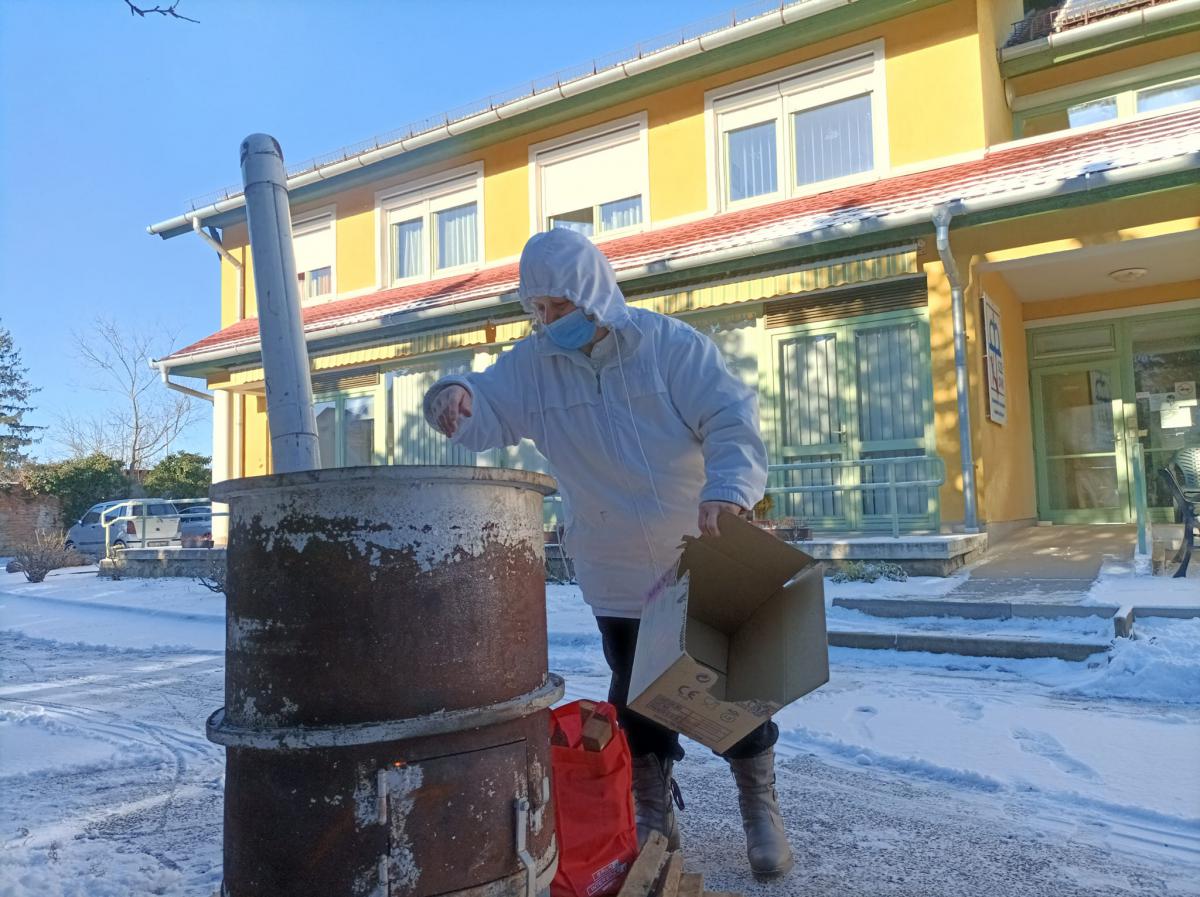 A Túróczy otthon idős lakói zsírt sütöttek. A hideg, havas délelőtt segített megteremteni a régi disznóölés hangulatát.