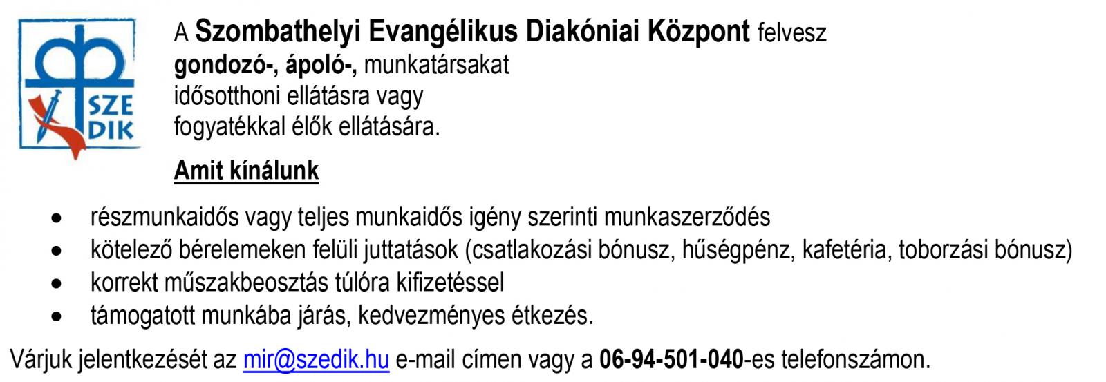 Ágfalvi pszichiátriai betegeket ellátó otthonunk ápoló-, gondozó- és takarító munkatársakat keres