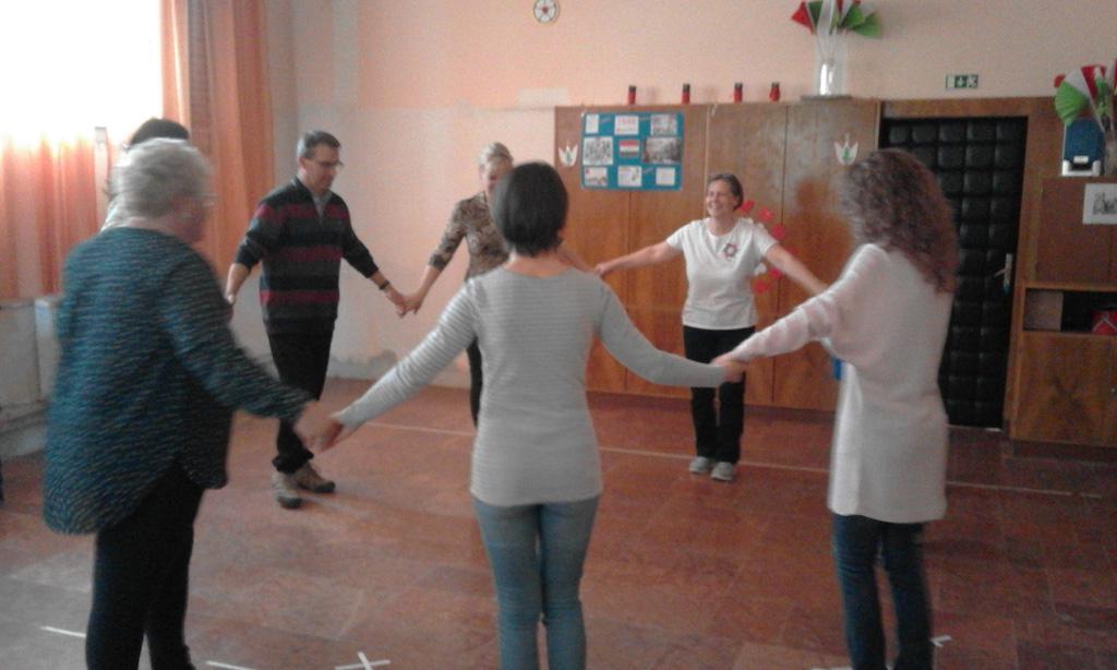 Az ebédszünet után már a kikapcsolódásra, feltöltődésre figyeltünk. Örömtáncot tanultunk Sikterné Csizmadia Ágnestől. A tánc összpontosított, megmozgatott és ellazított bennünket. A feltöltődés után szólított mindenkit haza az anyai kötelesség.