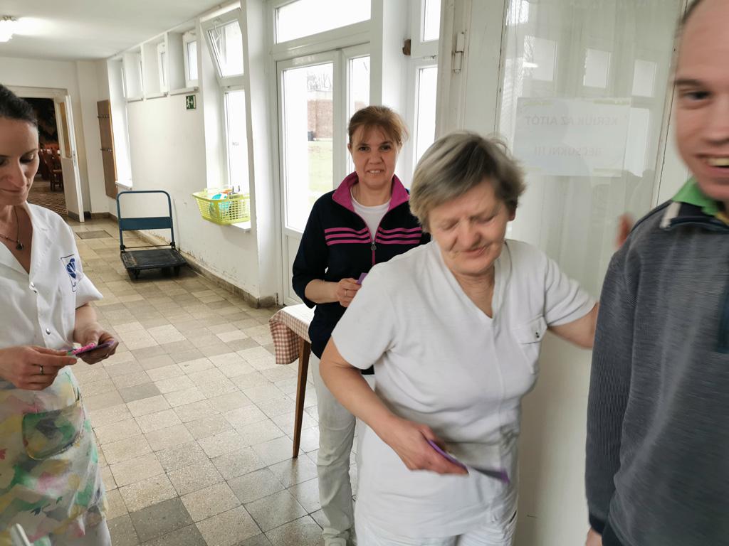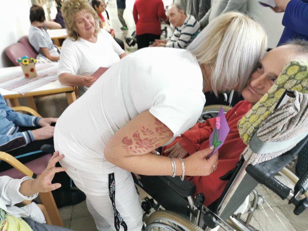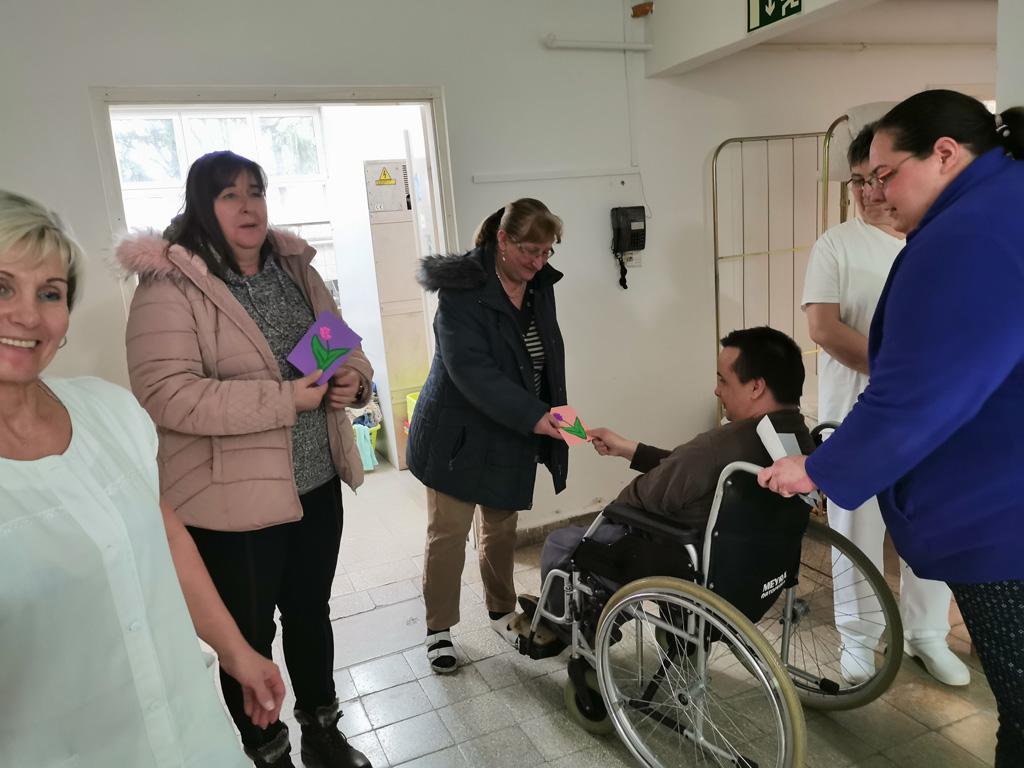Március 6-án nőnap alkalmából felköszöntöttük az intézmény női dolgozóit. A fogyatékkal élő fiúk műsort adtak elő. Kis apró ajándékkal, rövid versekkel és dalokkal készültek.