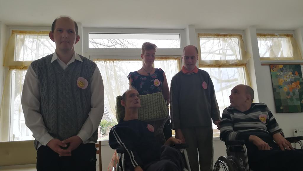 Nemcsak virágot, hanem verseket és dalokat is hoztak dolgozóinknak és lakóinknak. A hallgatóság örült, mosolygott, néhányan nagyon meghatódtak. A fiúk örültek,hogy örömet okozhattak és ajándék csokoládékkal megpakolva zárták a napot.