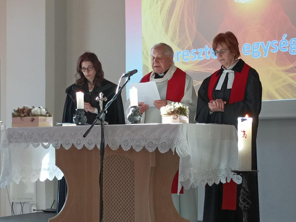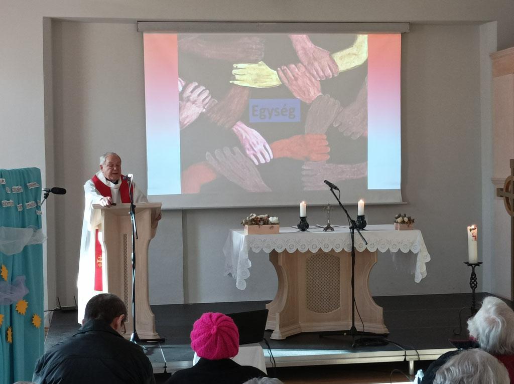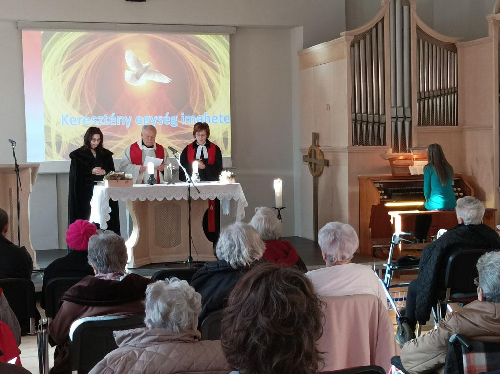 A Szombathelyi Evangélikus Diakóniai Központ lakói és dolgozói az evangélikus Kápolnában gyűltek össze és együtt imádkoztak a látható egyház egységéért. Az istentiszteleten a liturgiában szolgáltak: Horváth József katolikus plébános, Jakabné Köves Gyopárka református lelkésznő és Menyesné Uram Zsuzsanna evangélikus diakóniai lelkésznő. Az igehirdető József atya kiemelte, hogy az imádságban, a szeretetben Krisztus keresztje körül és keresztje által átélhetjük az egységet, amelyért Jézus Krisztus is imádkozott.