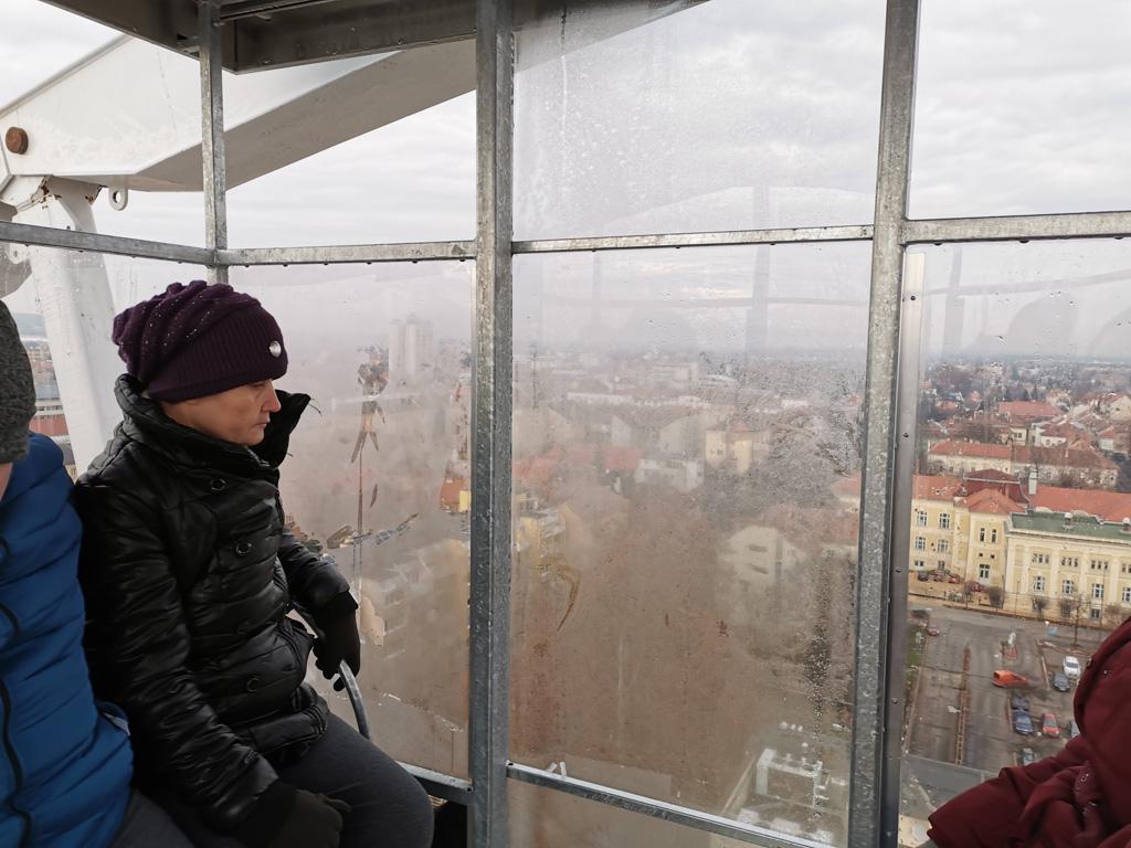 A decemberi hidegben egy nagy sétát tettünk lakóinkkal. Ellátogattunk a Fő térre, s megnéztük az óriáskereket, melyre 7 bátor lakó fel is szállt. Nagyon élvezték.