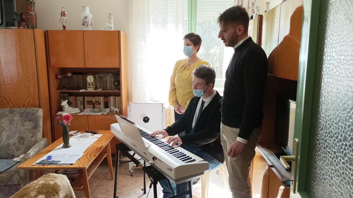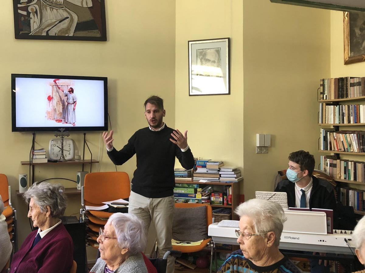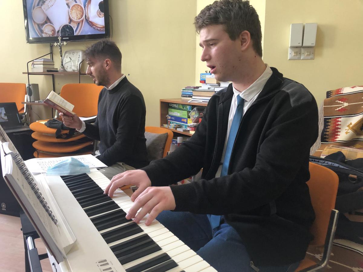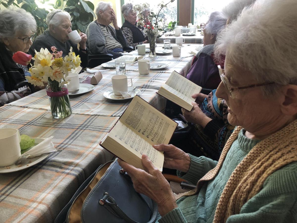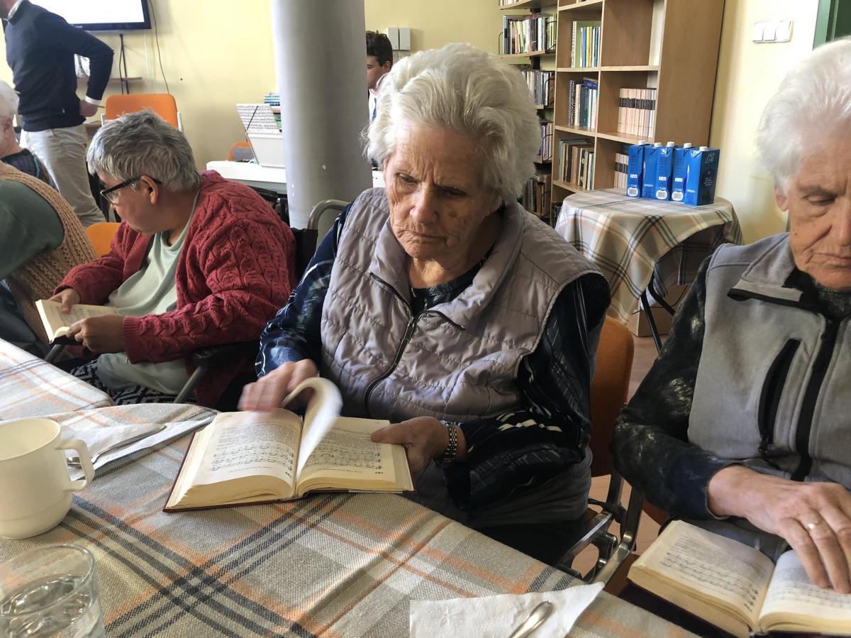 Fekvőbetegeinknek, akik szobáikat nem tudják elhagyni pedig énekszóval kedveskedtek vendégeink, Tamástól áldást is kaptak.