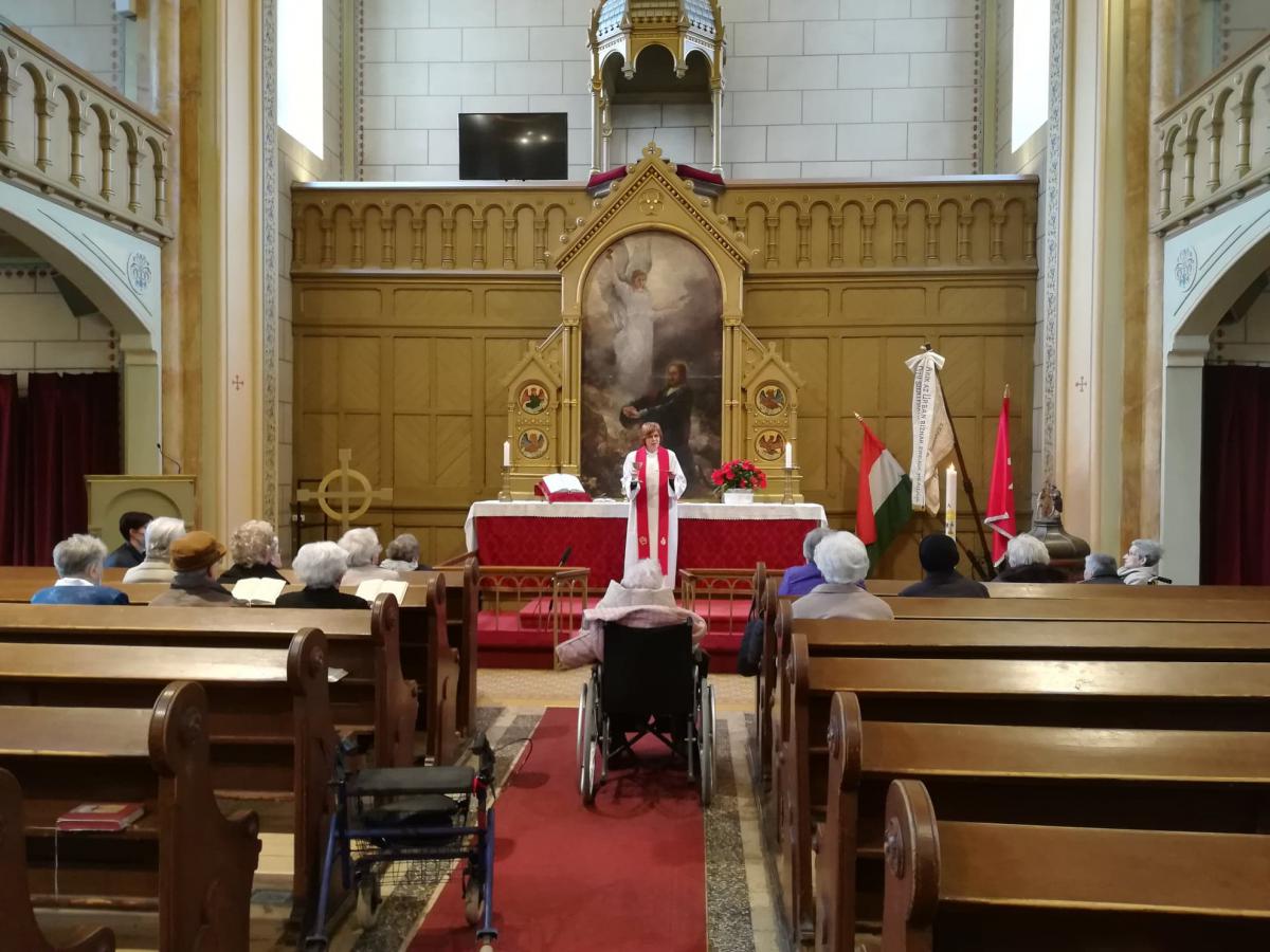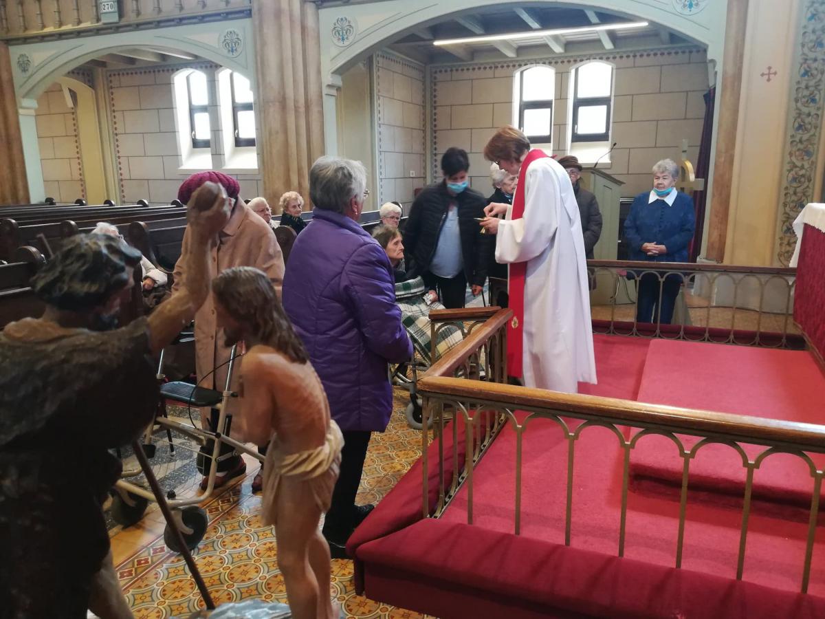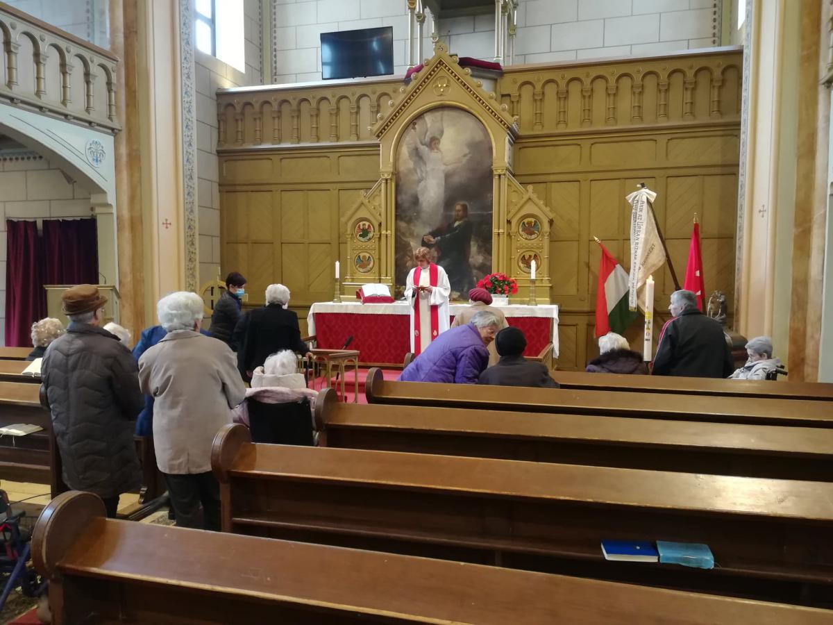 Az igét hirdette az intézmény diakóniai lelkésze. Hosszú hónapok bezártsága után idős lakóink ismét látogathatják a templomot, s élehetnek az úrvacsora szentségével.