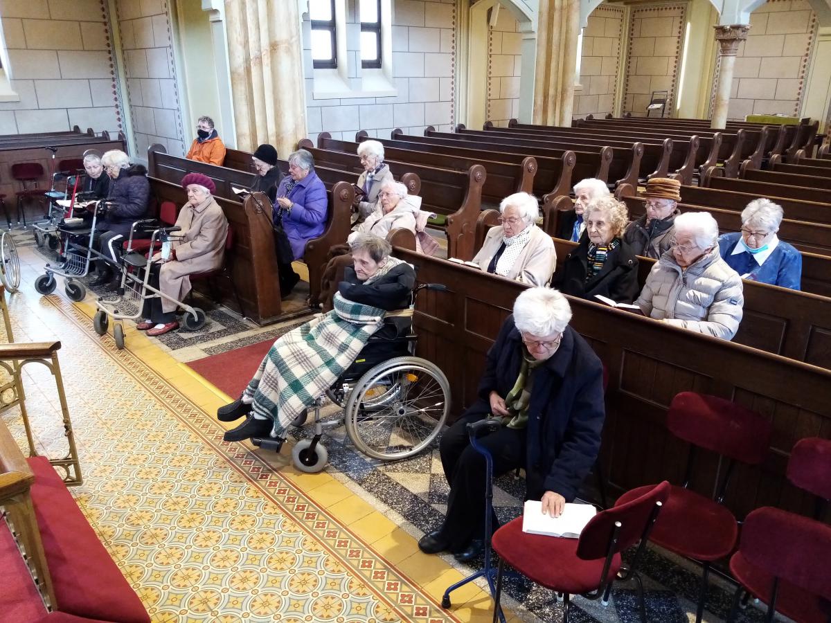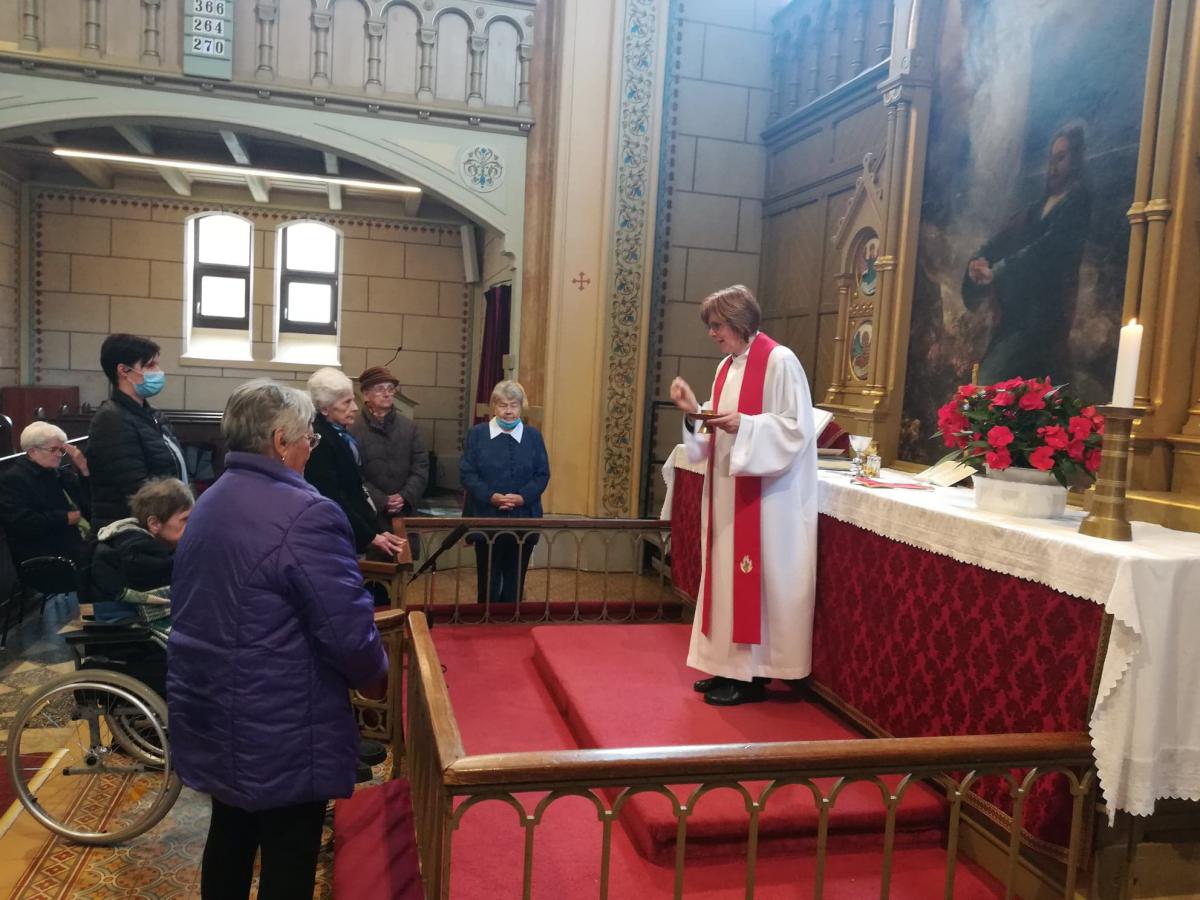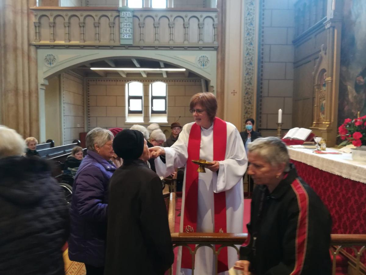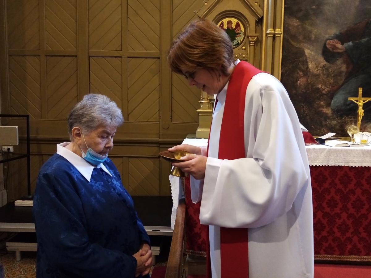 Az igét hirdette az intézmény diakóniai lelkésze. Hosszú hónapok bezártsága után idős lakóink ismét látogathatják a templomot, s élehetnek az úrvacsora szentségével.