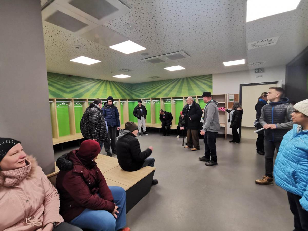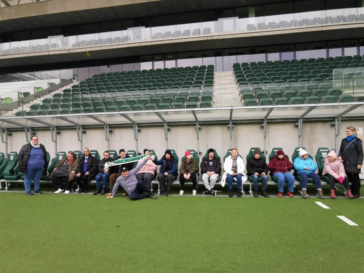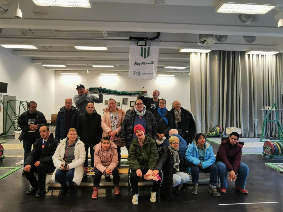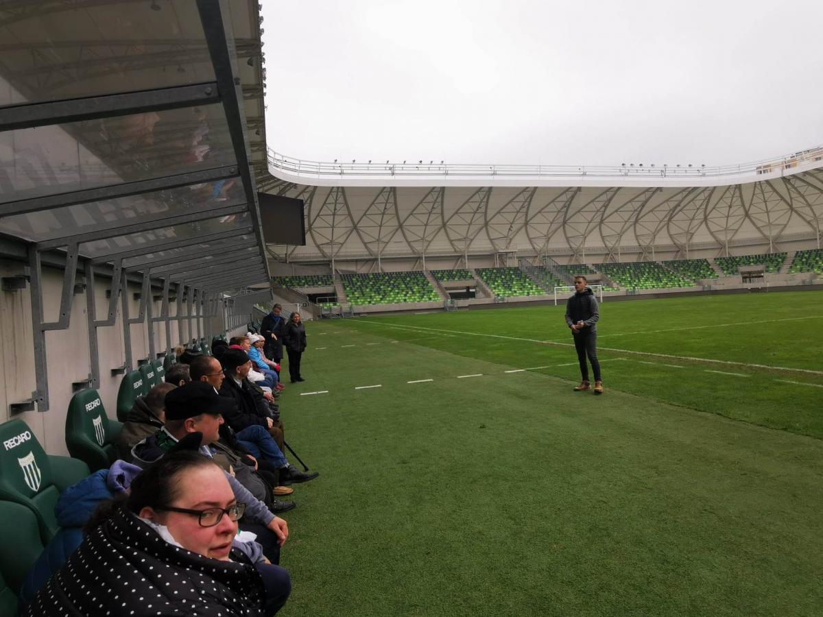 Magyarország egyik legmodernebb sportlétesítményét, a Haladás Sportkomplexumot tekinthették meg. Lakóink a komplexumtúra során egy kedves fiatalember, Osztrosits Ákos túravezető szíves kalauzolásával közelebbről ismerkedhettek meg a város labdarúgócsapatának modern, európai szintű sportstadionjával, beülhettek a játékosok székeibe, és megtekinthették a labdarúgó pályát is, amelynek gyepe még magán viselte a női labdarúgó válogatott Üzbegisztán elleni felkészülési mérkőzésének nyomait. A létesítmény színvonalas voltát mutatja, hogy az Európai Labdarúgó Szövetség (UEFA) IV. kategóriájú labdarúgó stadionként tartja számon, tudtuk meg vezetőnktől. A vidám hangulatú beszélgetés és közös fotó után lakóink bekukkanthattak a hazai csapat öltözőjébe, megismerhették a futballvilág kulisszatitkait, s az emeleti, a Haladás VSE Futsal csapata edzéseinek, mérkőzéseinek otthont adó teremben pedig együtt szurkolhattak a kézilabdázó szombathelyi kisdiákoknak. A sportkomplexum ugyanis nemcsak számtalan rendezvény megtartására ad kiváló lehetőséget (céges rendezvények, családi napok, esküvők, szalagavatók…), hanem csaknem ezer szombathelyi fiatal, kisiskolás és gyermek jár ide rendszeresen naponta sportolni. Ezt követően a különféle szakosztályok termeibe nyerhettünk betekintést. Különösen felemelő élmény volt számunkra az ökölvívó szakosztálynak otthont adó, Kajdi János-terem megtekintése. A híres szombathelyi ökölvívó, s egyik kedves idős lakónk, Imre bácsi ugyanis személyesen ismerték egymást, valaha osztálytársak voltak, s most Imre bácsi felelevenítette számunkra a sok szép régi emléket, színes és érdekes anekdotákat mesélt nekünk városunk híres szülöttéről, sportolójáról. A búcsúzás derűs perceiben hálás szívvel mondtunk köszönetet kalauzunknak a színvonalas túravezetésért, aki szeretettel invitálta vissza lakóinkat a zöld-fehérek következő idénybeli labdarúgó mérkőzéseire, de ezúttal már nem érdeklődő látogatókként, hanem szurkolókként. Drukkoljunk együtt a csapatnak: „Hajrá Hali!”