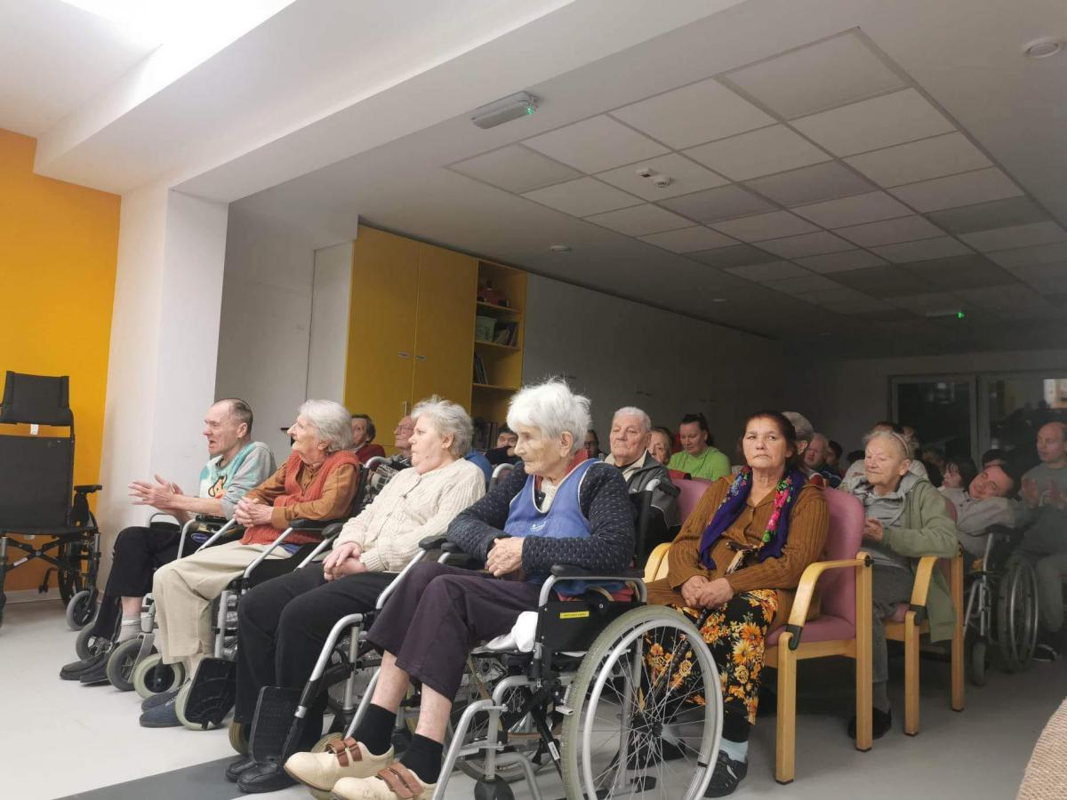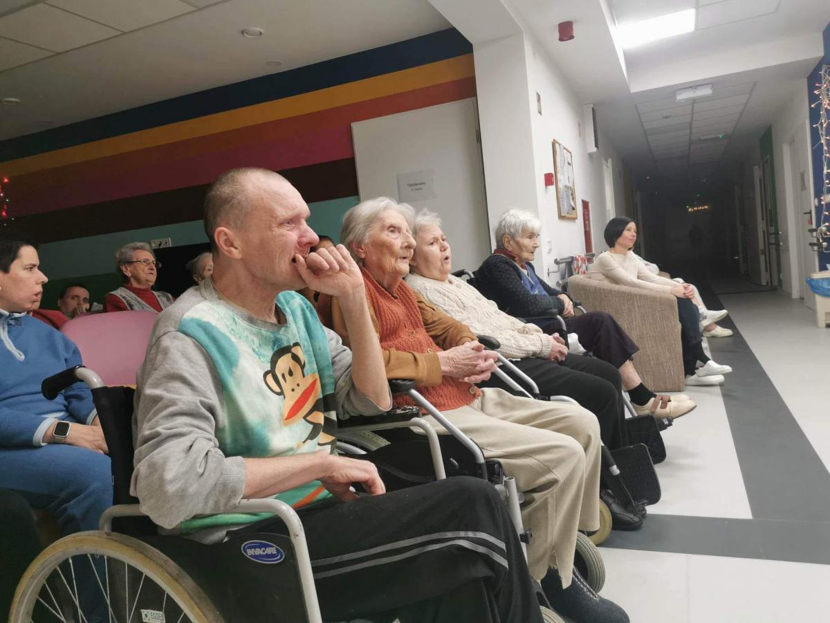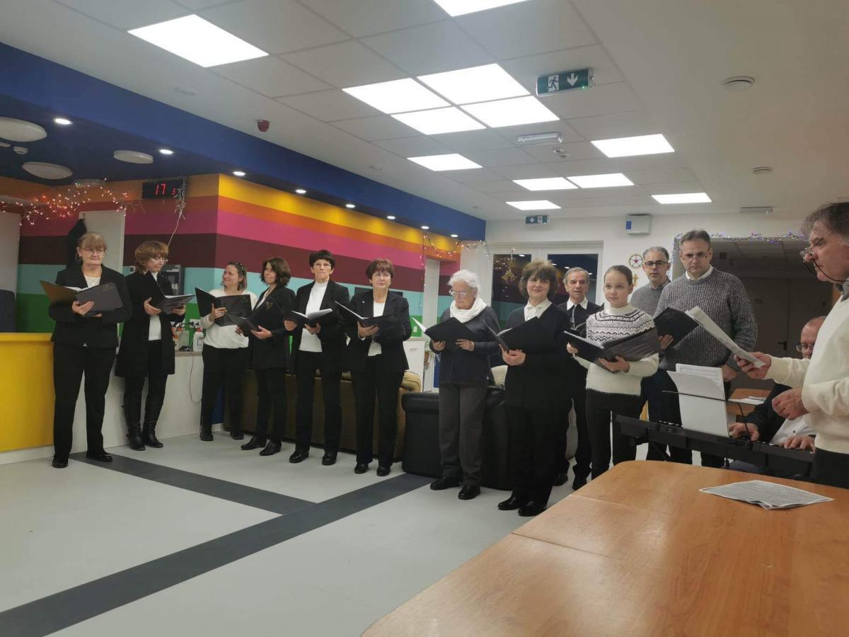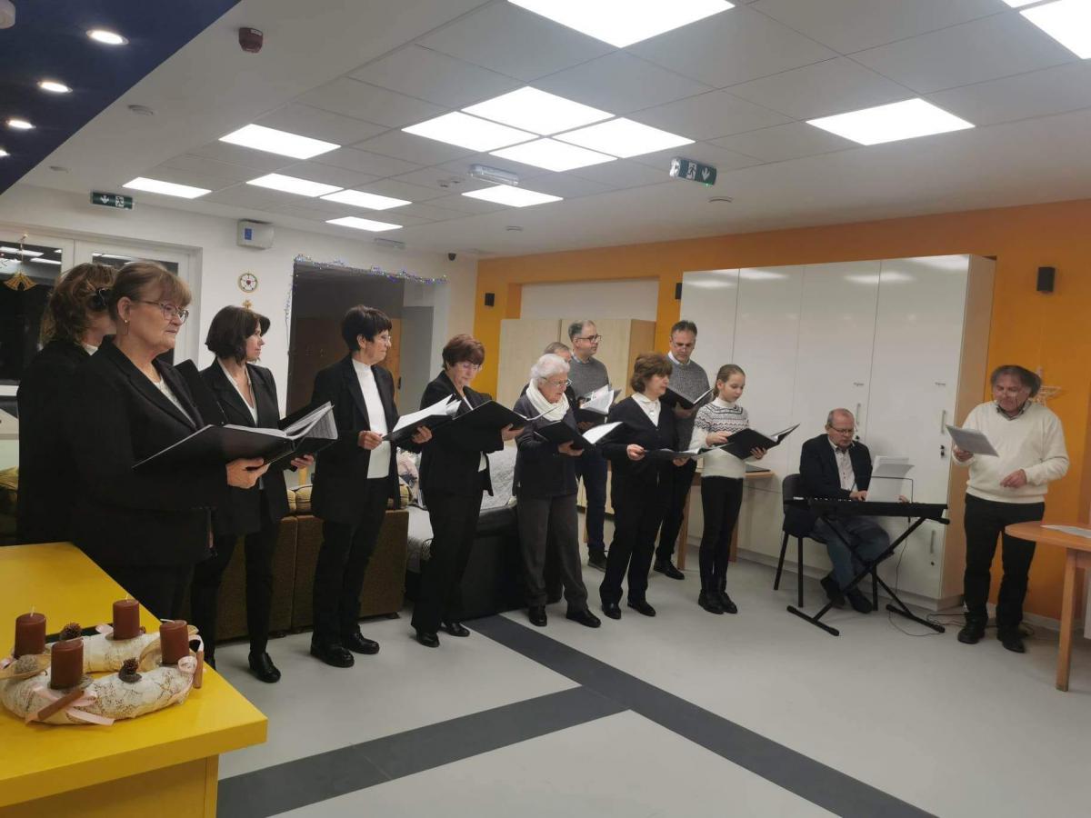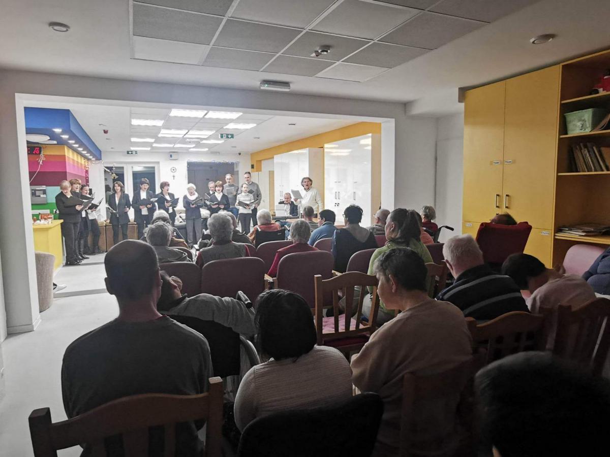 Karácsony ünnepére készülve adventi-karácsonyi énekekből készített, felemelő dalösszeállítással örvendeztették meg az idős, fogyatékkal élő és hajléktalan részlegek lakóit. A hallgatóság kezdetben bele-bele kapcsolódott az énekbe, majd együtt énekeltek az énekkarral, s végül az „Ó gyönyörű szép titokzatos éj” kezdetű karácsonyi dalt már közösen, kánonban adták elő, ahol az egymás után belépő szólamok közül az egyik maga a lelkes közönség volt. A szép és tartalmas zenei összeállítás végül a népszerű karácsonyi dallal, a Csendes éjjel zárult, melyet az adventi várakozást jelző félhomályban, gyertyaláng meghitt fényénél adtak elő a kóristák.