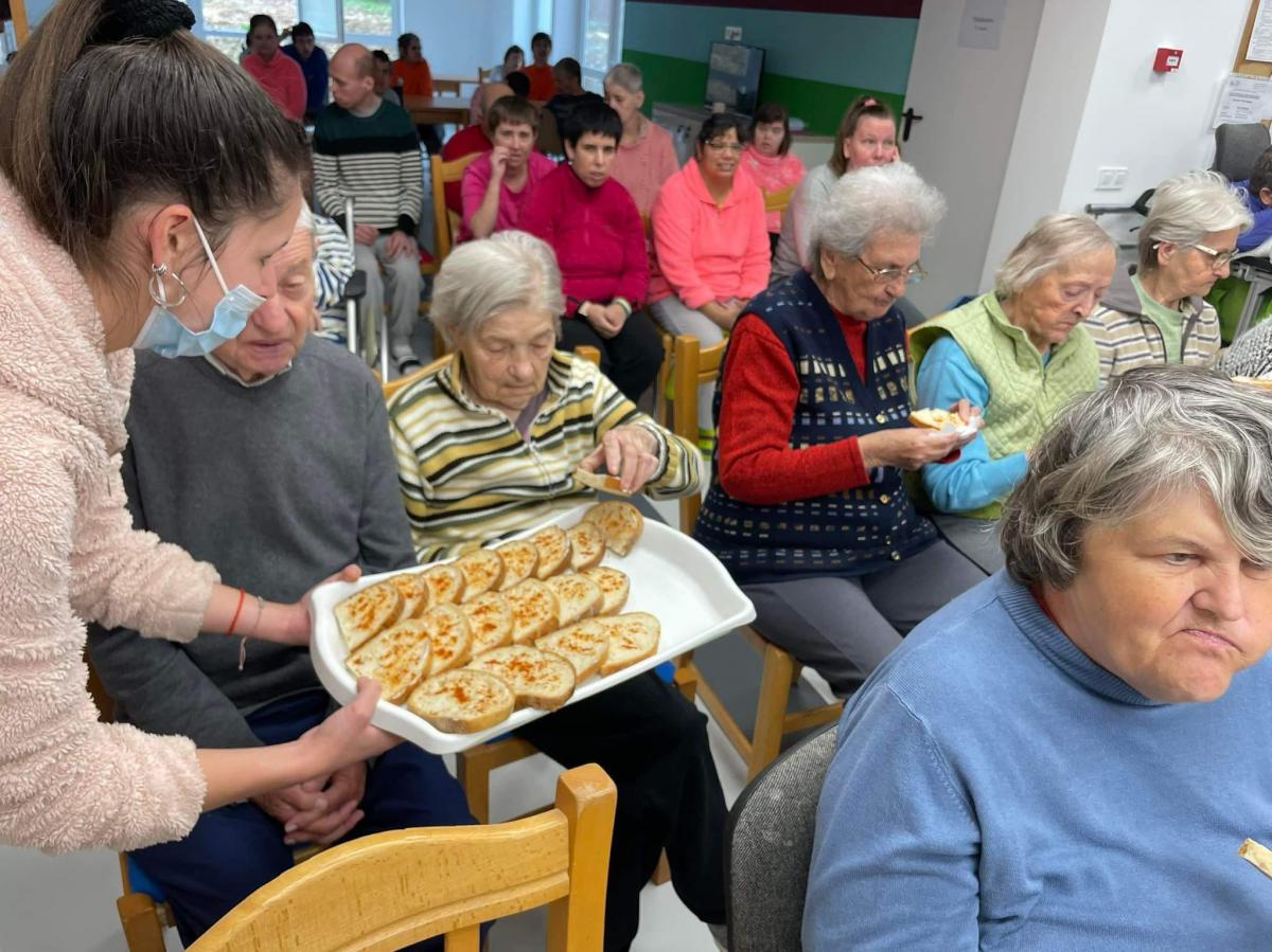 A mentálhigiénés munkatársak által szervezett foglalkozásokon számos, az adventi vásárra szánt, jótékony célra felajánlott dekoratív, üvegfestéssel készített Márton napi lampion került ki a kreatív tevékenységeket kedvelő lakóink kezei alól. Horváth Vilmos újságíró, a Szombathelyi Dobó SE elnöke tett szívélyes látogatást a Johanneumban, aki a jeles nap alkalmából tartott érdekfeszítő előadást lakóinknak Savaria szentjének életéről. A Túróczy otthonban is megemlékeztek Szent Mártonról, s az előadásokat követően munkatársaink szeretetvendégségen, agapén látták vendégül lakóinkat, ahol a már hagyományosnak számító, Márton napi libazsíros-hagymás-pirospaprikás kenyér került a terítékre.