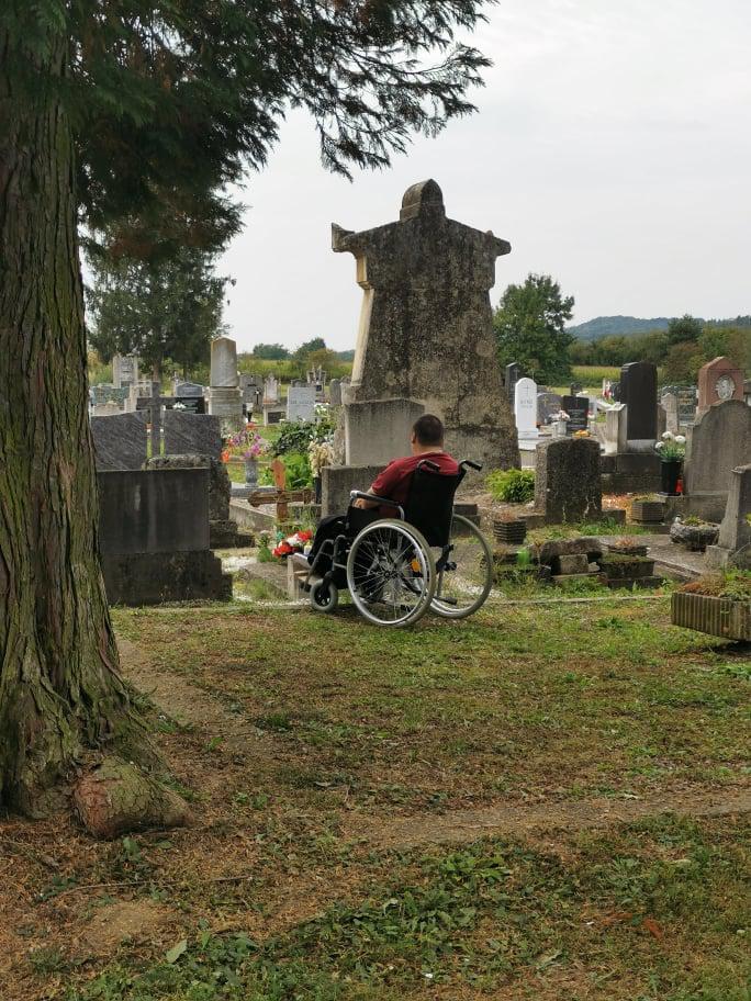 Zolika ismét hazament. Szeretett édesanyja már nem él, de a temetőben egy kis virággal emlékezett. Elkísértük őt páran.