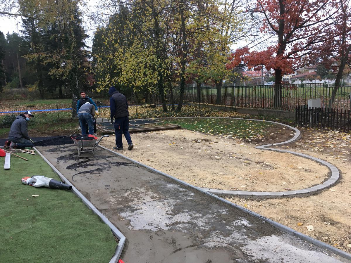 Az új betonozott út a régi járda nyomvonalát követi, a bejárat melleti terület pedig egy pihenő résszel gazdagodik.