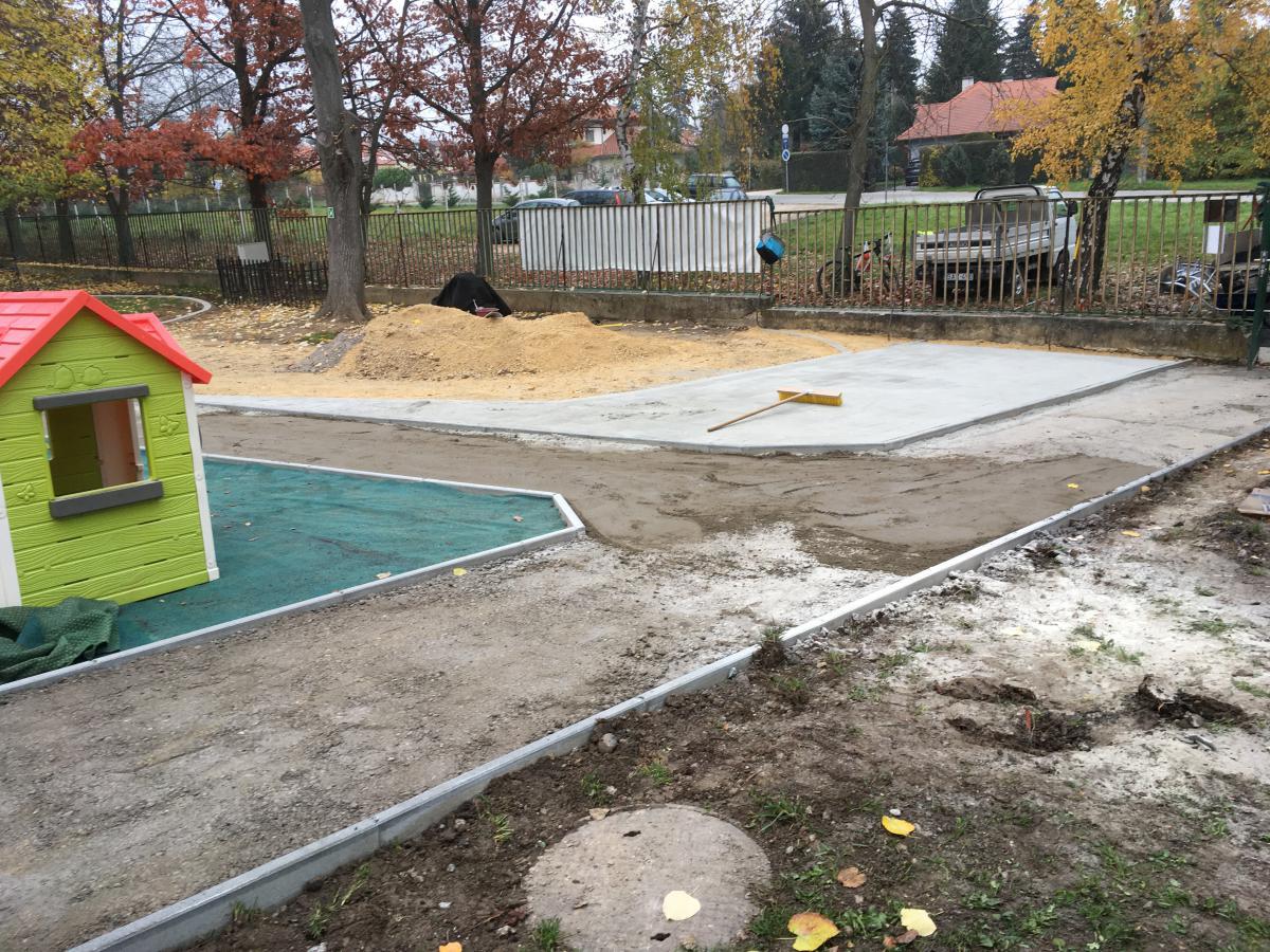 Megkezdődött a Családi Bölcsődék előtti udvar szépülése az elmúlt időszakban. Betonozott úton juthatnak el a kicsik az épületbe, emellett térkőburkolat is épült a bejáratnál.