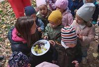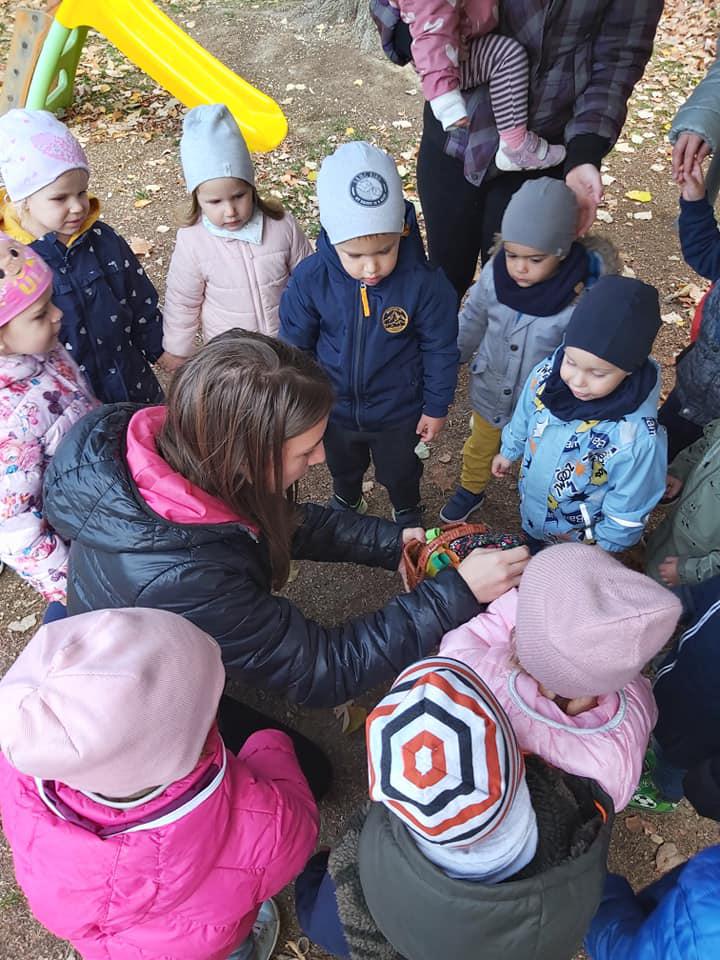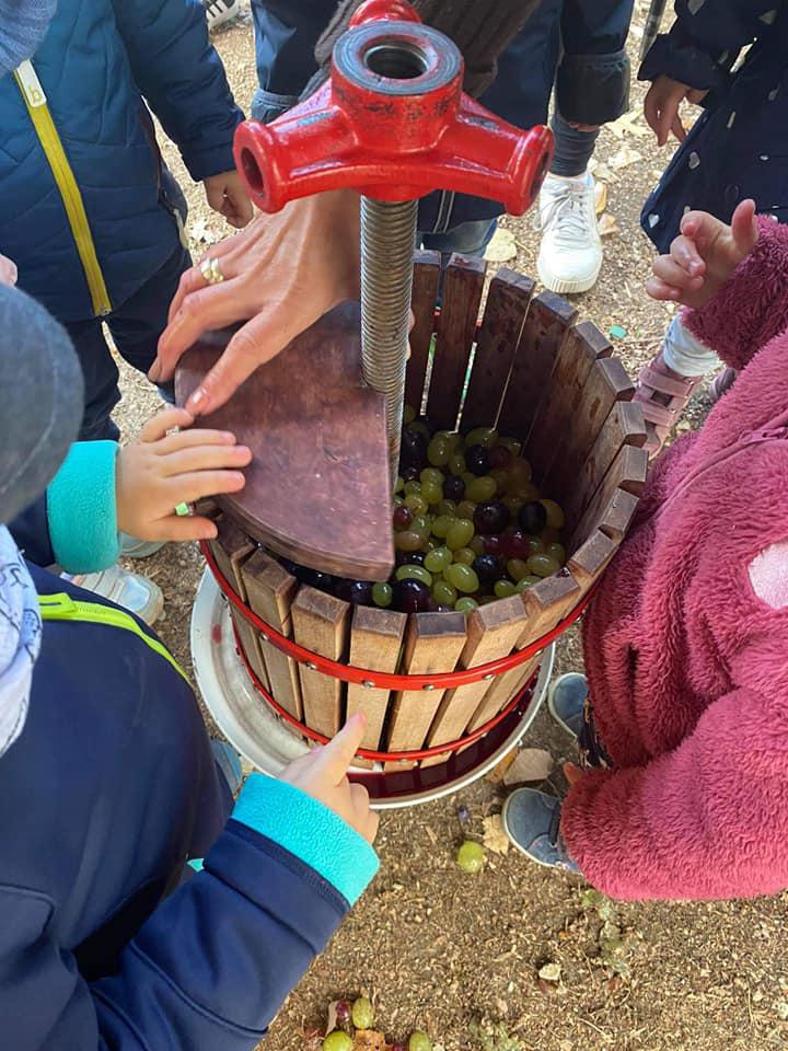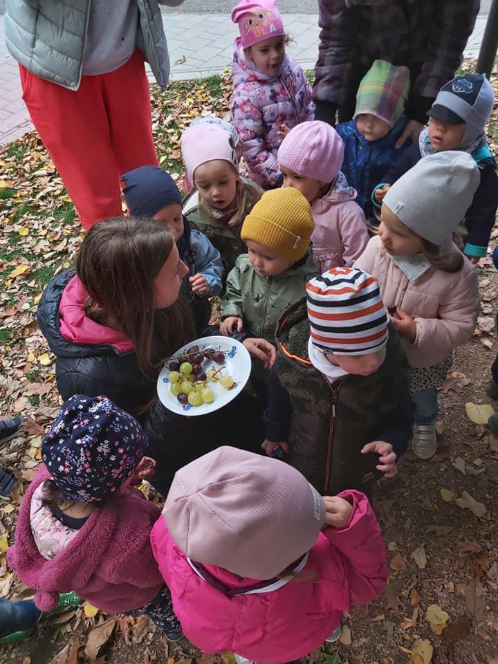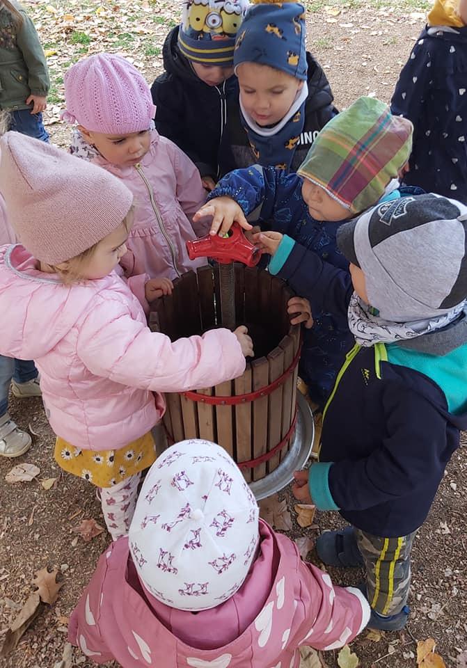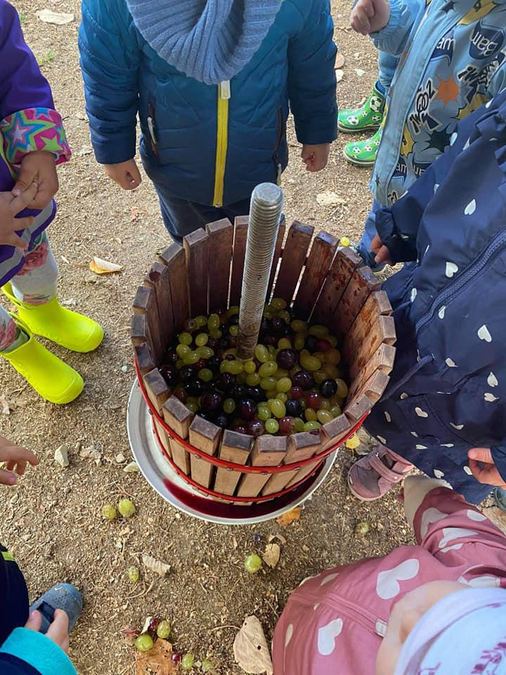 A gyerekek megismerkedtek a szőlővel. Mondókák segítségével játszottunk, szüreteltünk. Minden kisgyermek érdeklődve figyelte, hogy működik a prés, végül a must kóstolása sem maradhatott el.