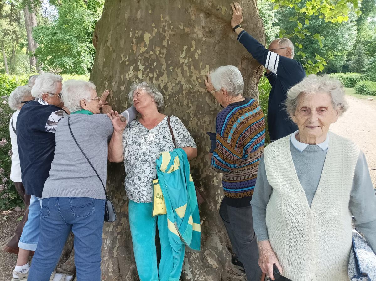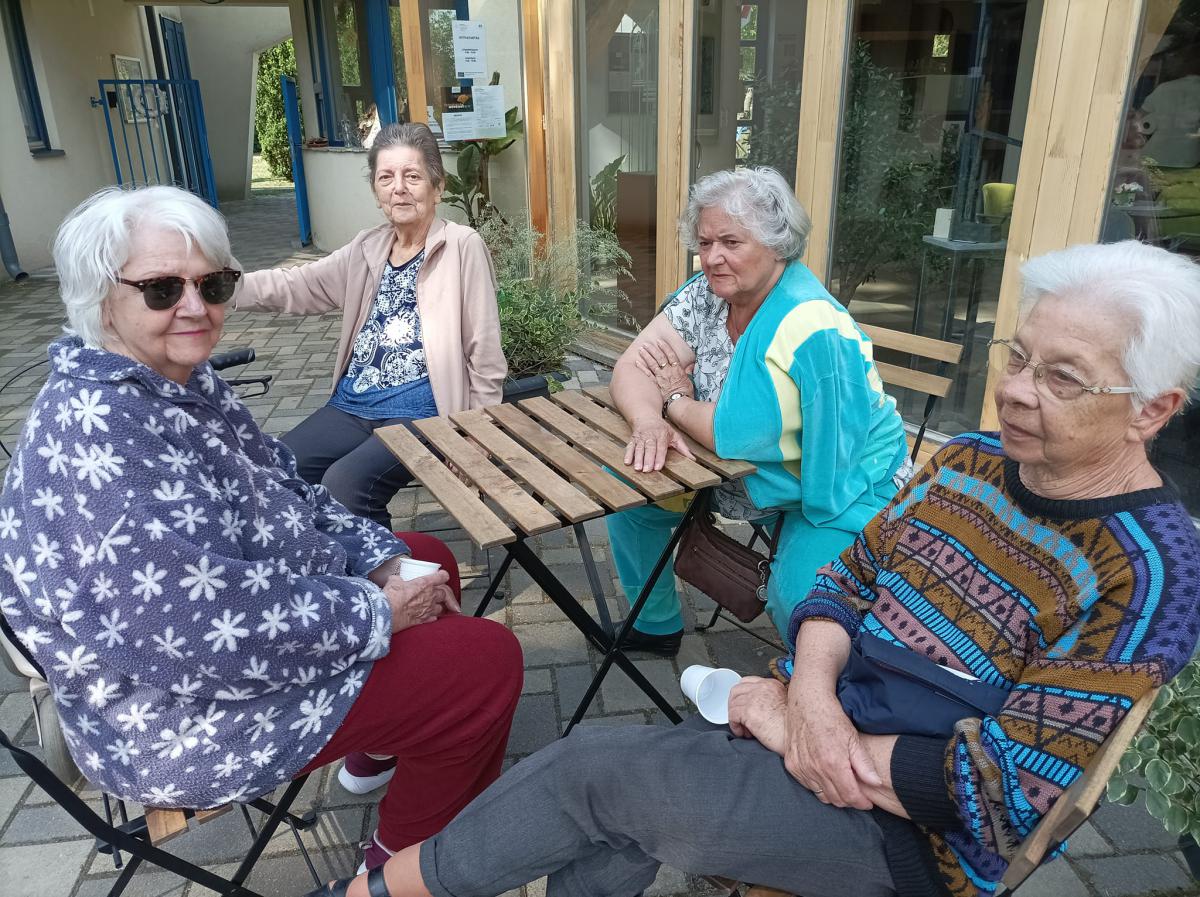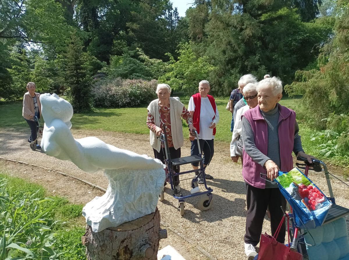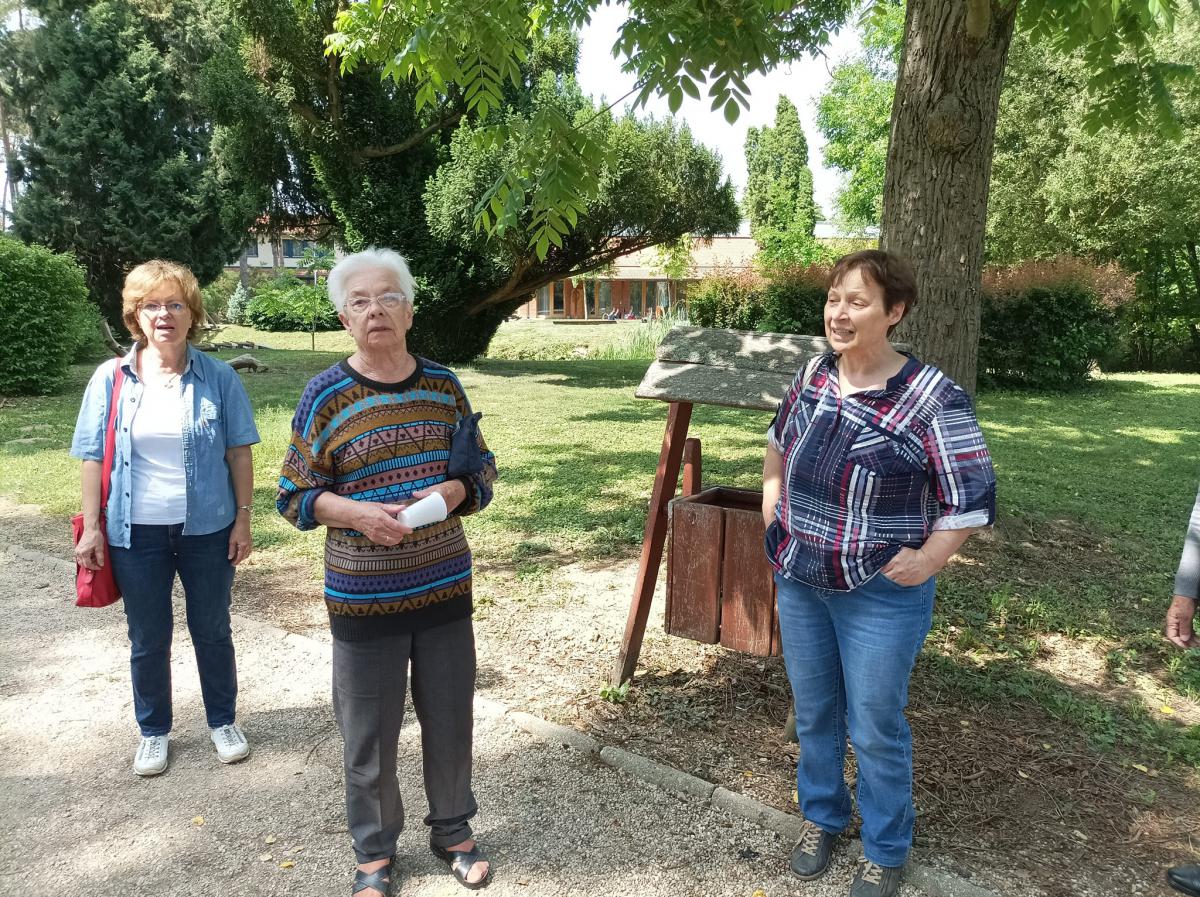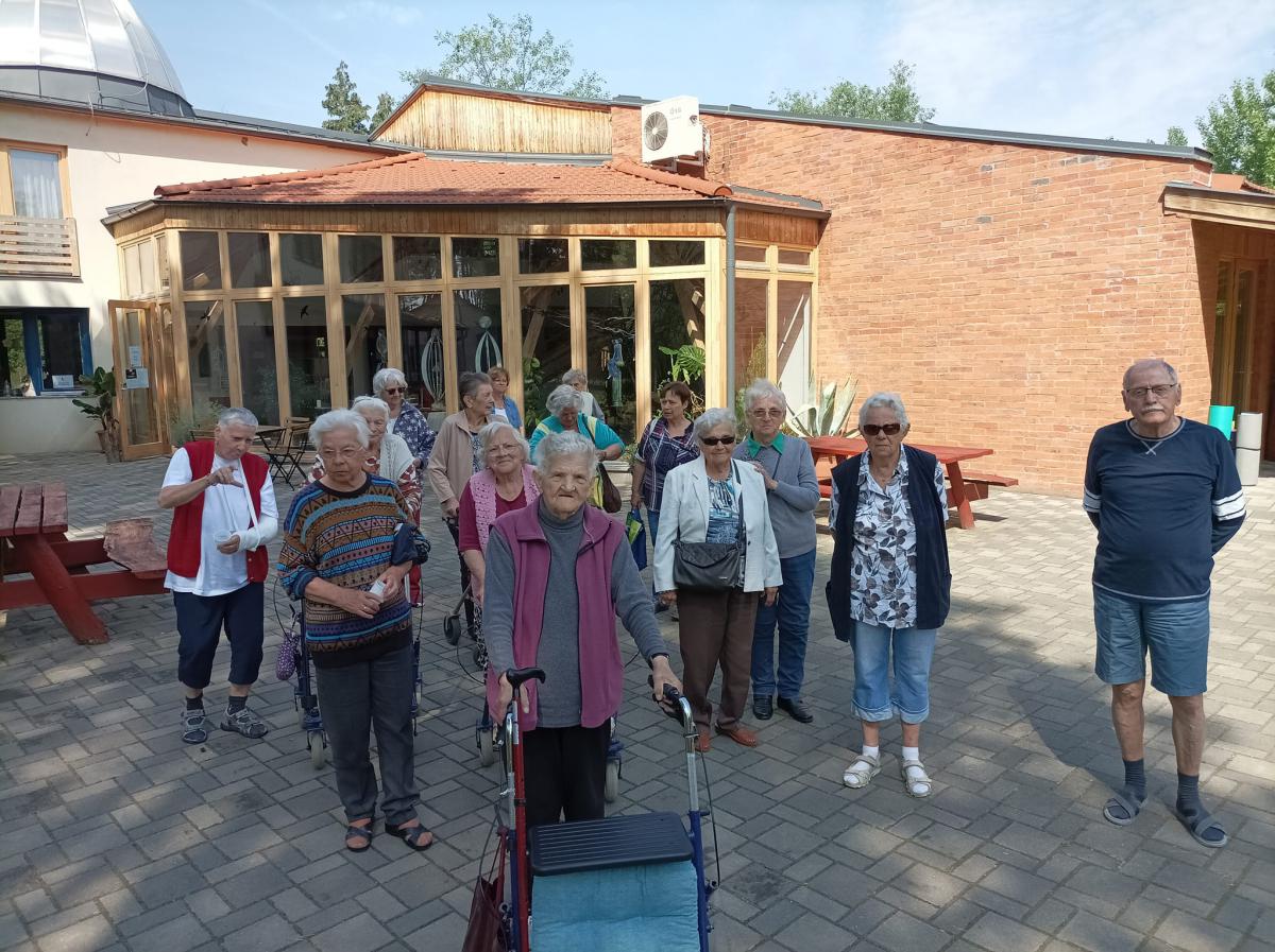 A Túróczy otthon lakói valóban megtapasztalhatták e hármas élményt a virágzó, színpompás, illatozó természetben, a fák között előbukkanó művészeti alkotásokban és az éneklésben, hisz a madárcsicsergés mellett dalkörünk dalra fakadt a hűs fák árnyékában.