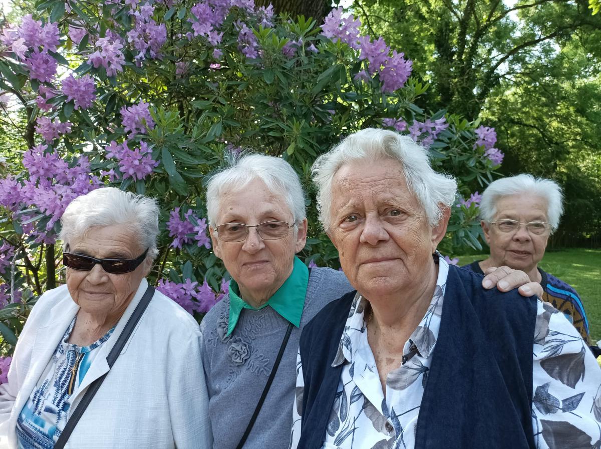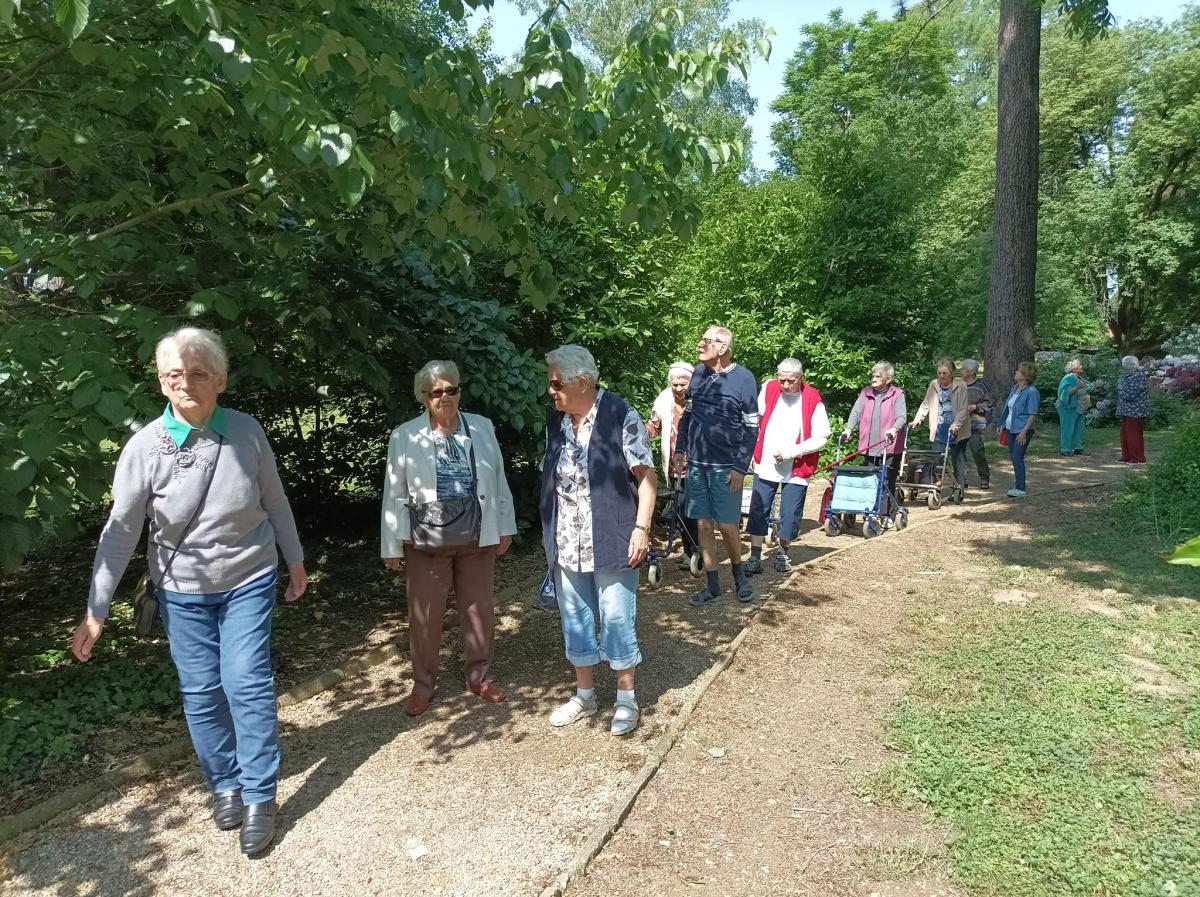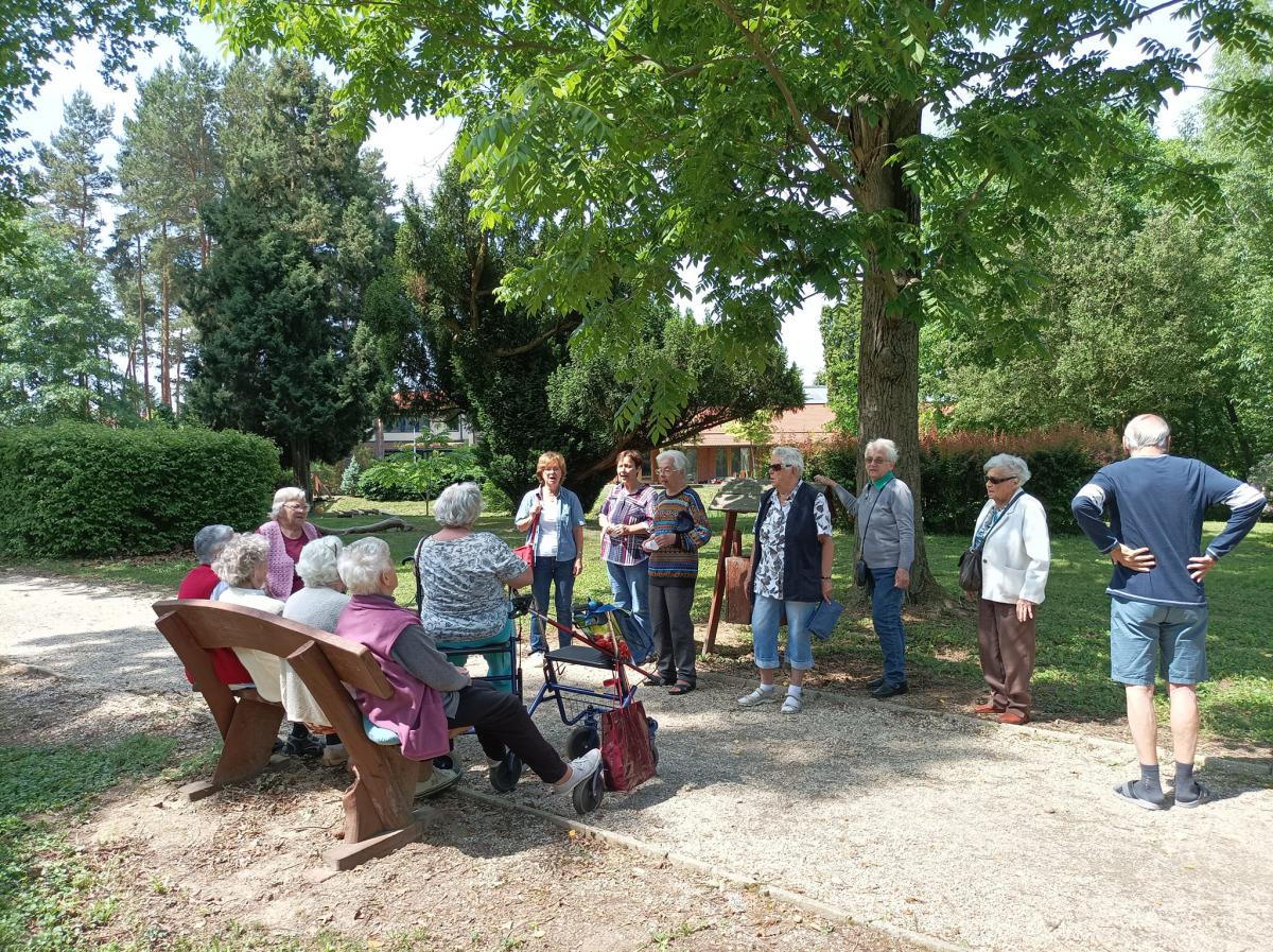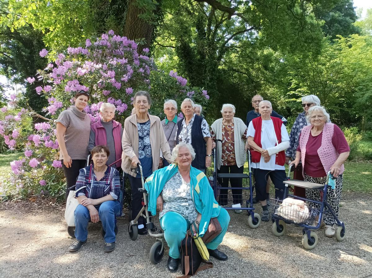 A Túróczy otthon lakói valóban megtapasztalhatták e hármas élményt a virágzó, színpompás, illatozó természetben, a fák között előbukkanó művészeti alkotásokban és az éneklésben, hisz a madárcsicsergés mellett dalkörünk dalra fakadt a hűs fák árnyékában.