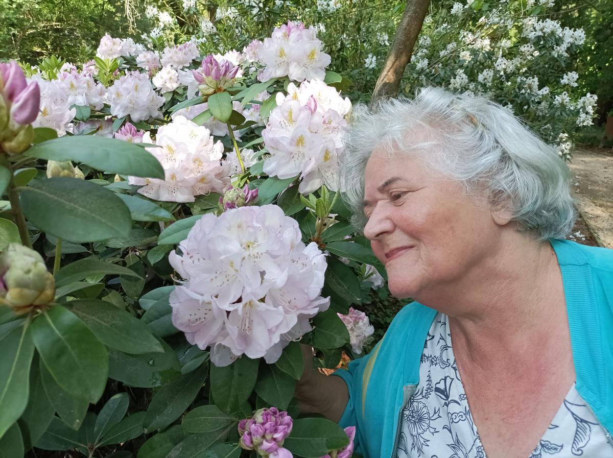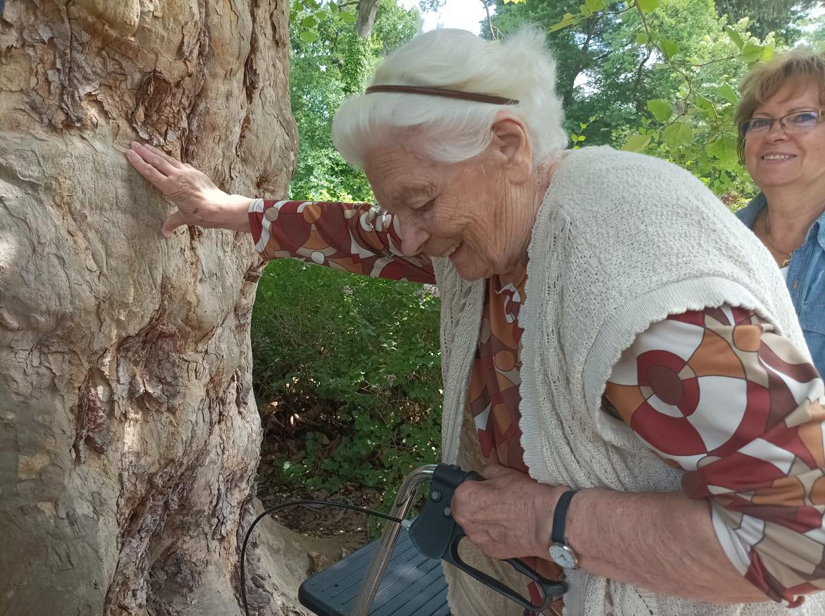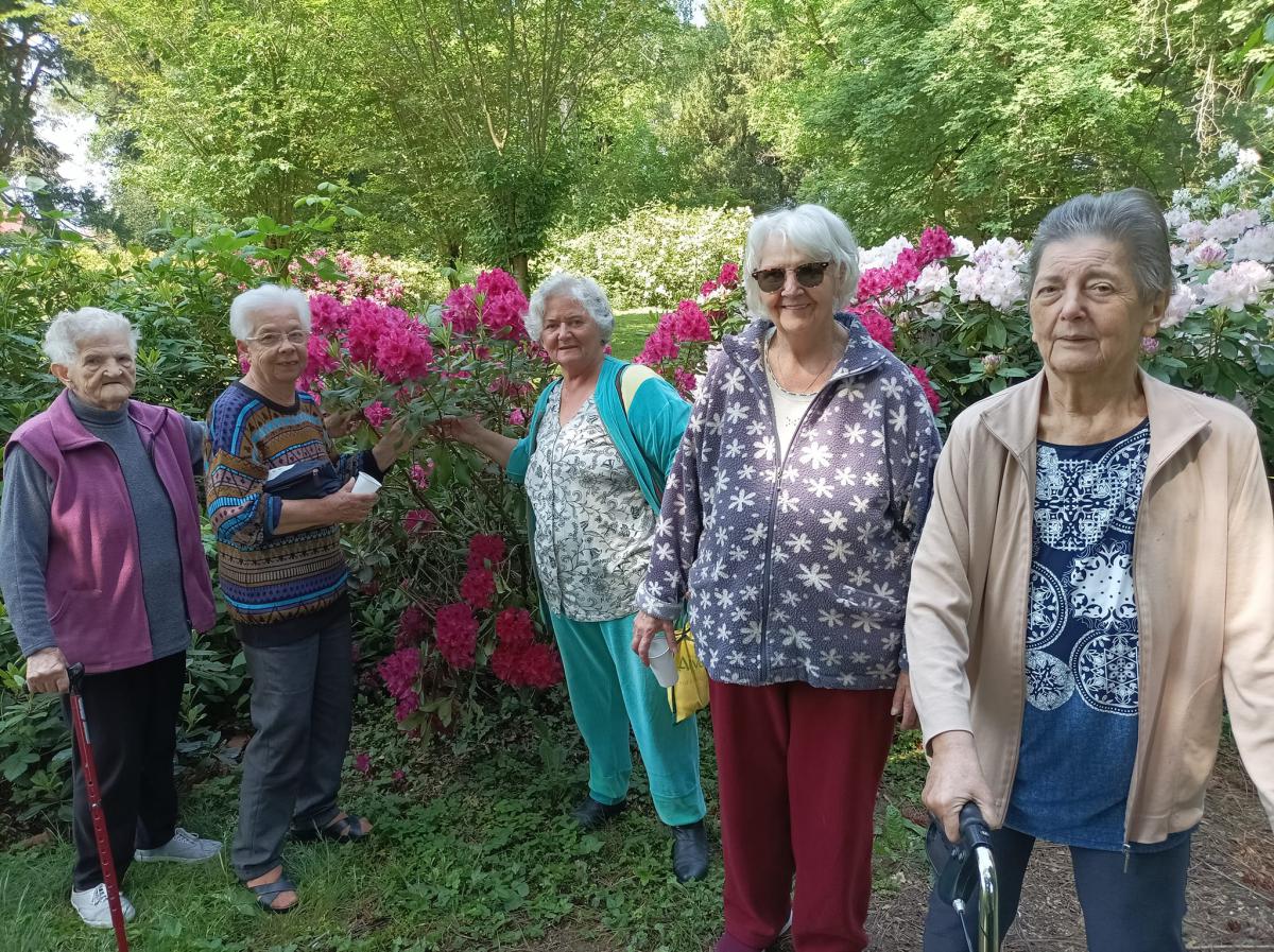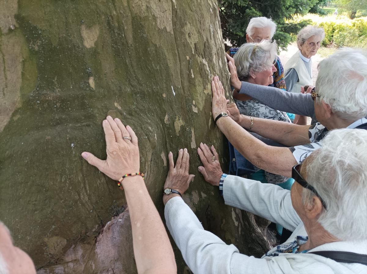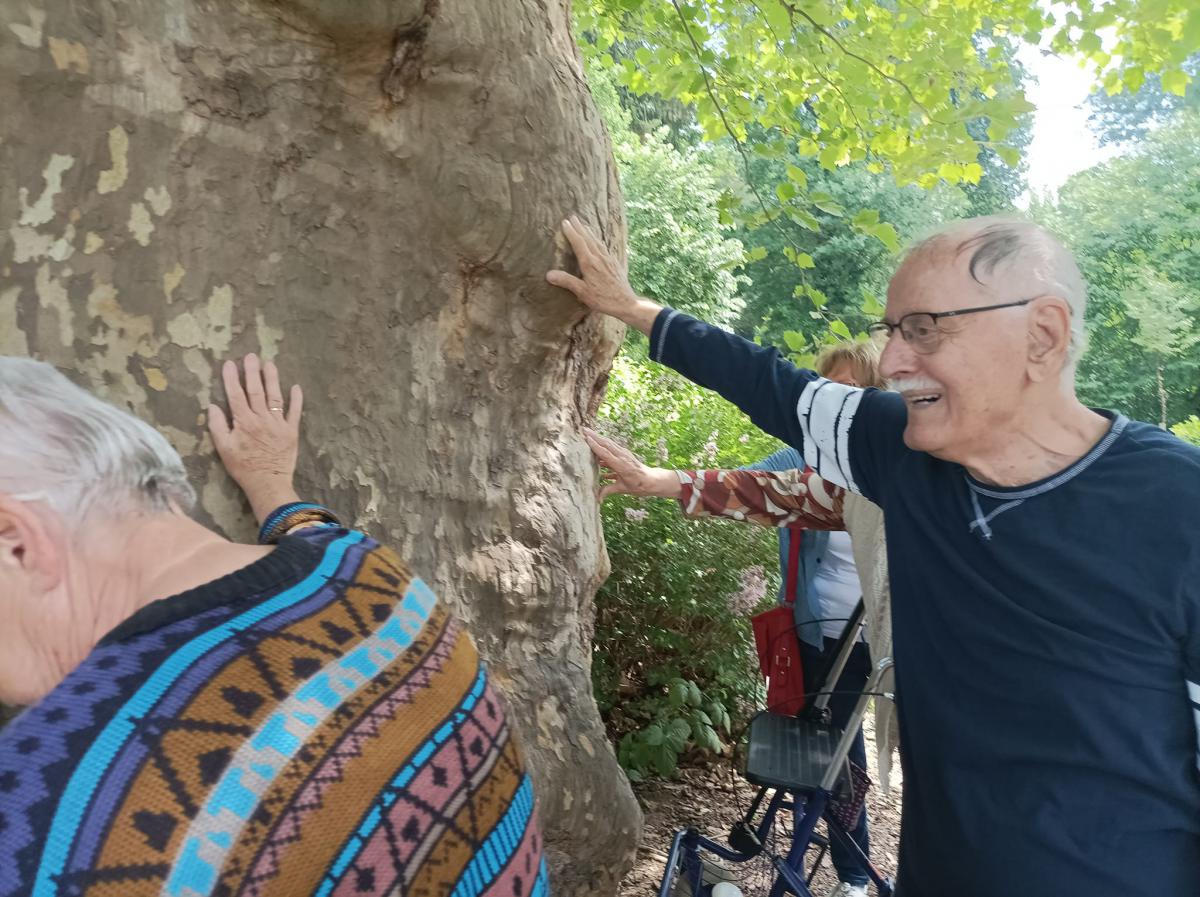 A Túróczy otthon lakói valóban megtapasztalhatták e hármas élményt a virágzó, színpompás, illatozó természetben, a fák között előbukkanó művészeti alkotásokban és az éneklésben, hisz a madárcsicsergés mellett dalkörünk dalra fakadt a hűs fák árnyékában.