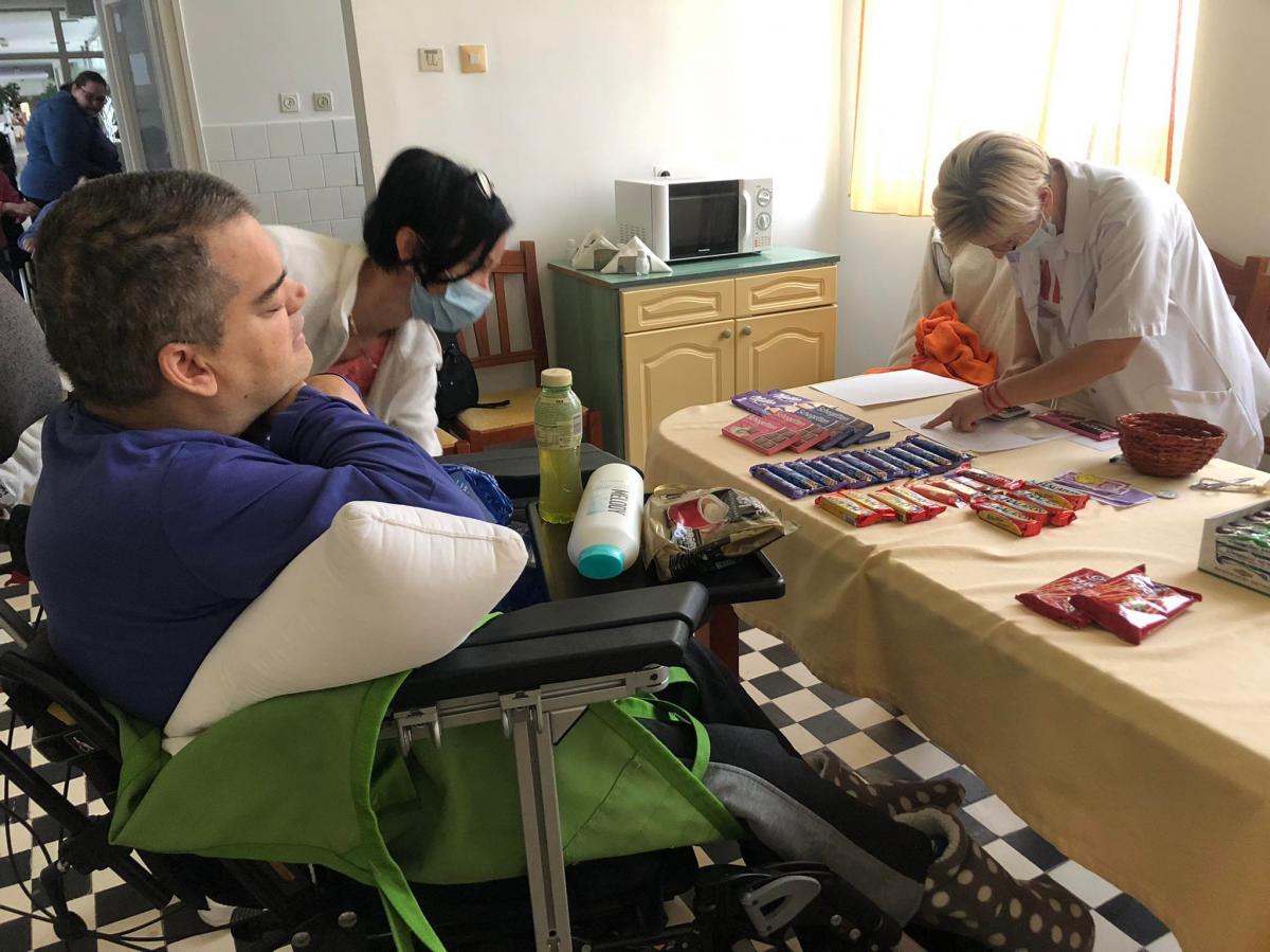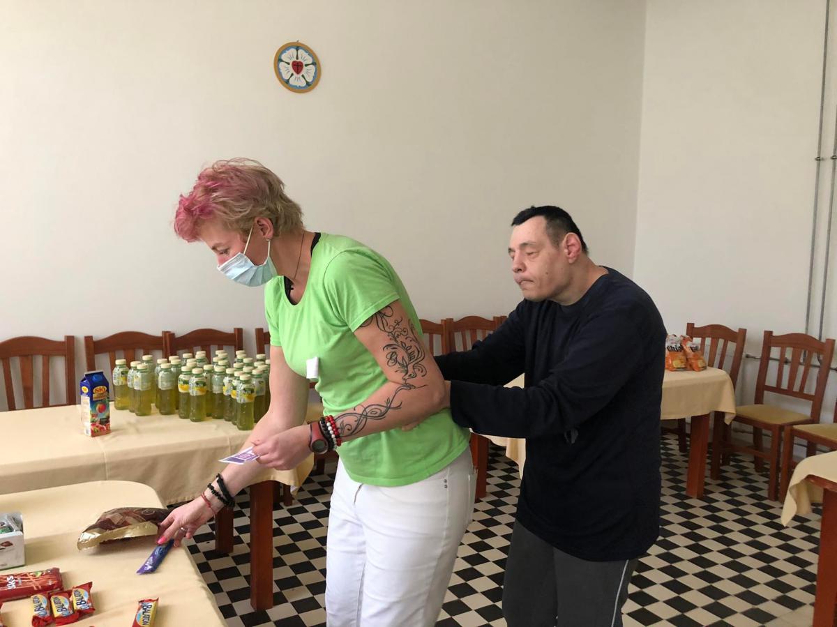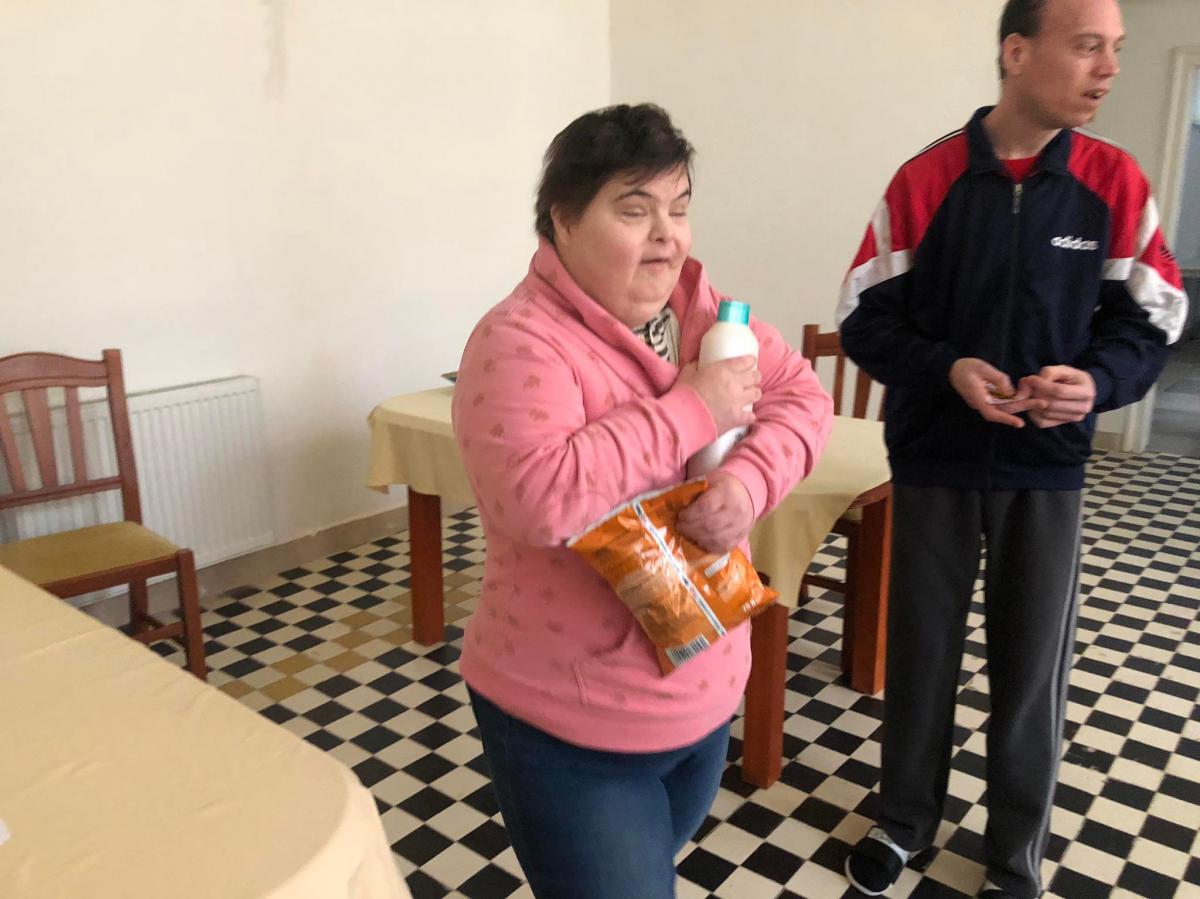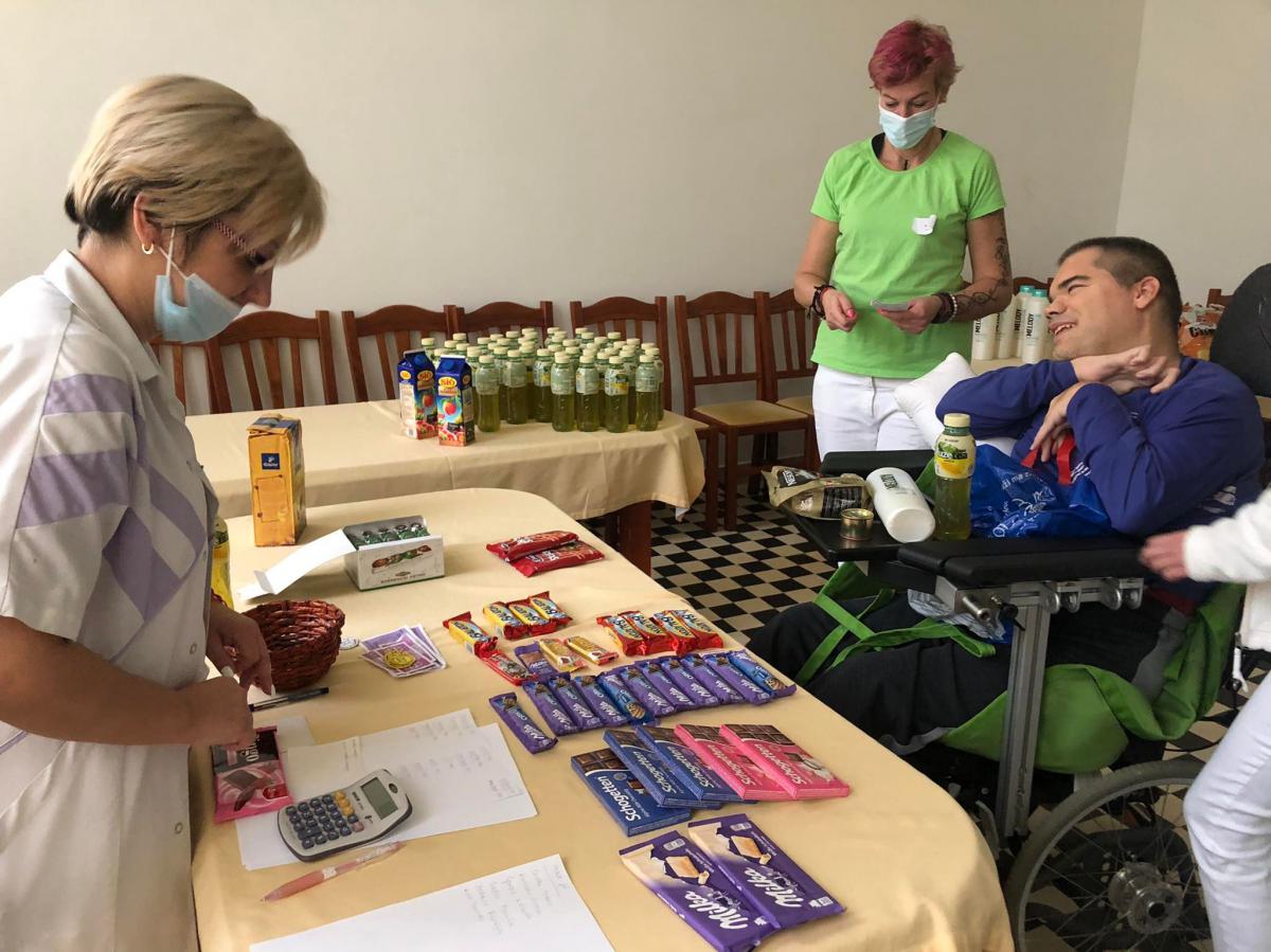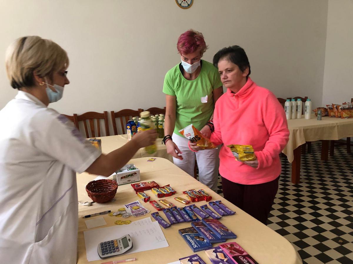 „Szép jó napot! Mit adhatok?" - így köszönt Kutfej Krisztina kolléganőnk, ez esetben "boótvezető" a hozzá betérő vásárlóknak a Johanneum ebédlőjében berendezett kisboltban. Segítői is akadtak: a polcszervizes Háklár Szidónia és a szállító Kiss Mirjam személyében. Persze a többi munkatárs is segített abban, hogy a fogyatékkal élő lakók közül minél többen eljussanak a kisboltba és tudjanak vásárolni: csokit, chipszet, különböző finomságokat és szépségápolási termékeket.