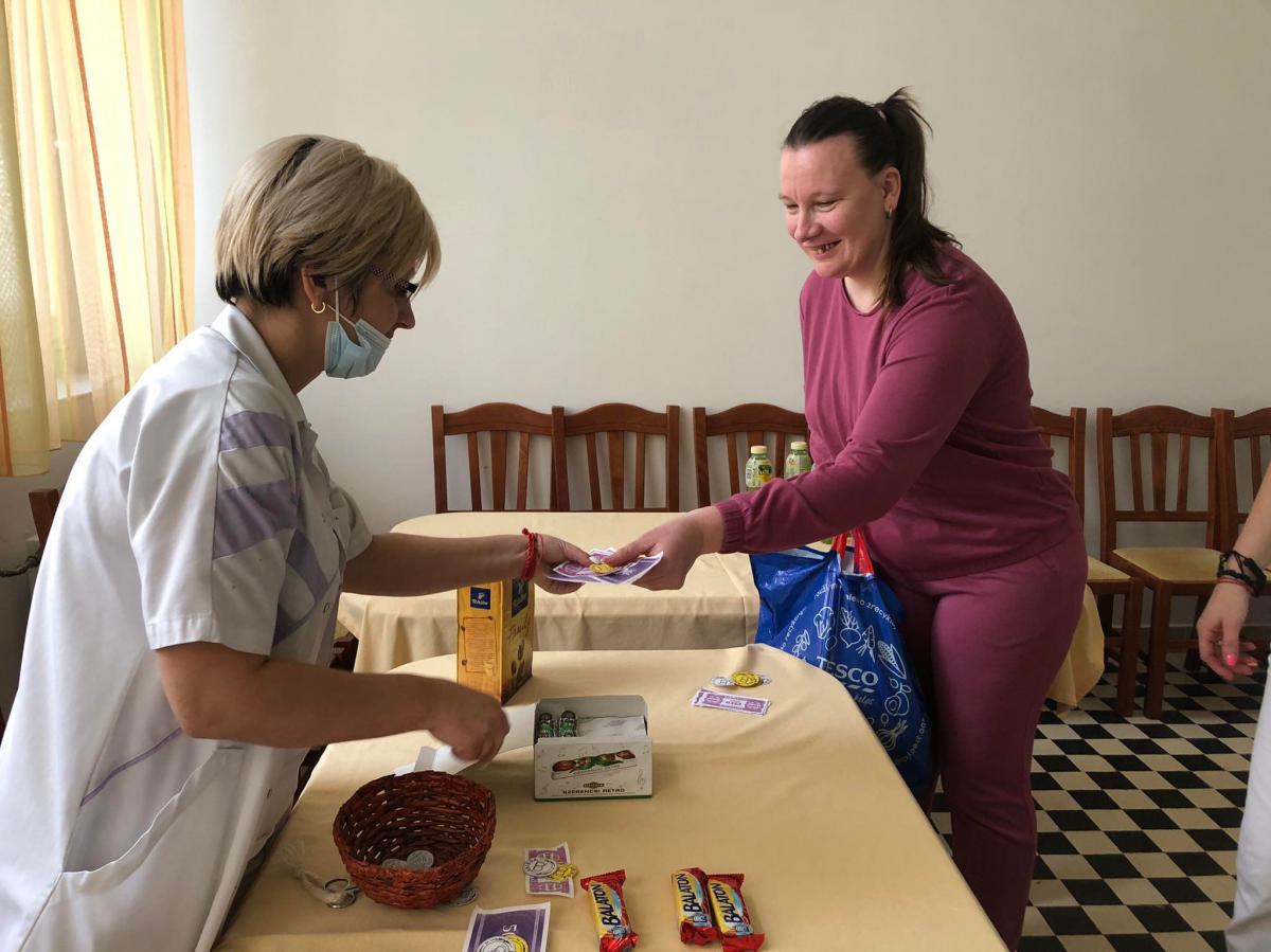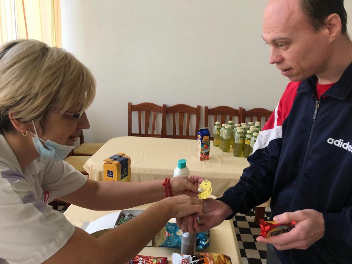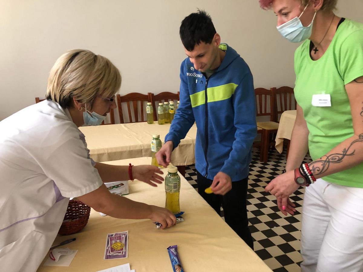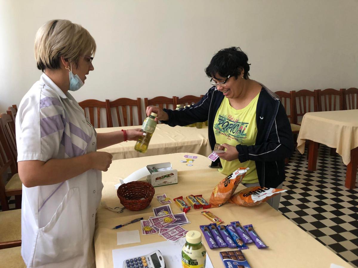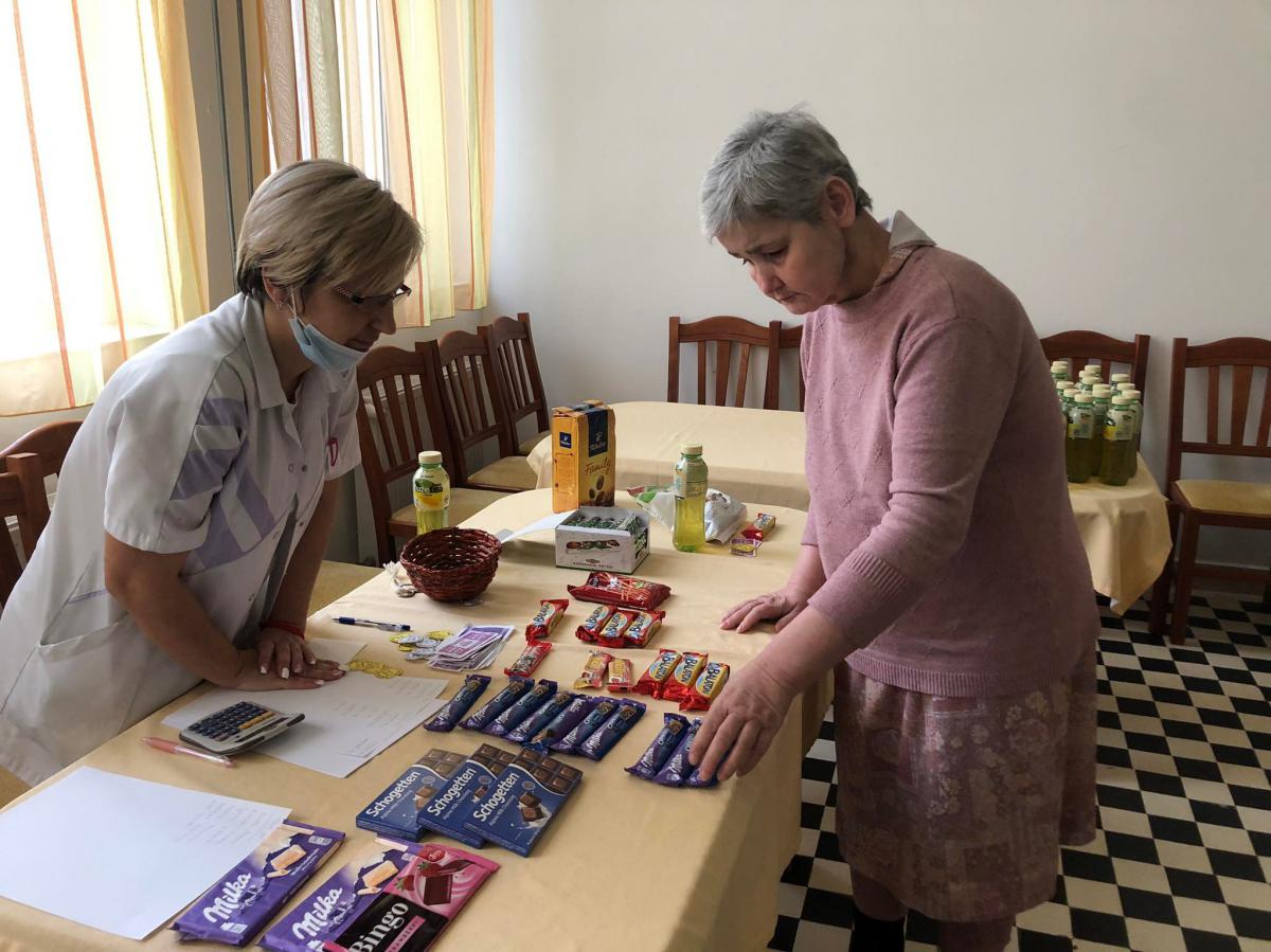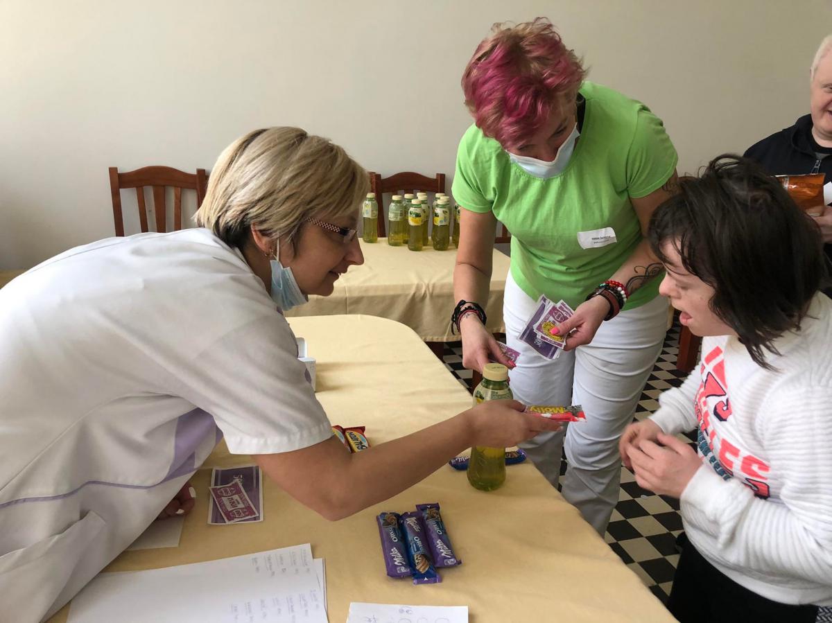 „Szép jó napot! Mit adhatok?" - így köszönt Kutfej Krisztina kolléganőnk, ez esetben "boótvezető" a hozzá betérő vásárlóknak a Johanneum ebédlőjében berendezett kisboltban. Segítői is akadtak: a polcszervizes Háklár Szidónia és a szállító Kiss Mirjam személyében. Persze a többi munkatárs is segített abban, hogy a fogyatékkal élő lakók közül minél többen eljussanak a kisboltba és tudjanak vásárolni: csokit, chipszet, különböző finomságokat és szépségápolási termékeket.