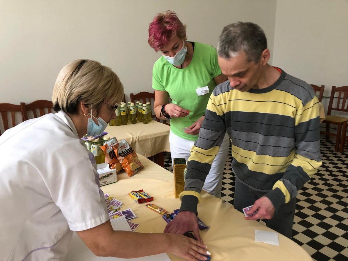 Valóban élmény volt ez, hiszen a kedves vásárlók nem csupán kérhettek, amit szemük-szájuk megkívánt, de még fizethettek is, játékpénzzel. Nemcsak a fogyatékkal élőknek volt ez kedves program, hanem a munkatársaknak is - látva a lakók lelkesedését, örömét, mosolyát. A képek magukért beszélnek.