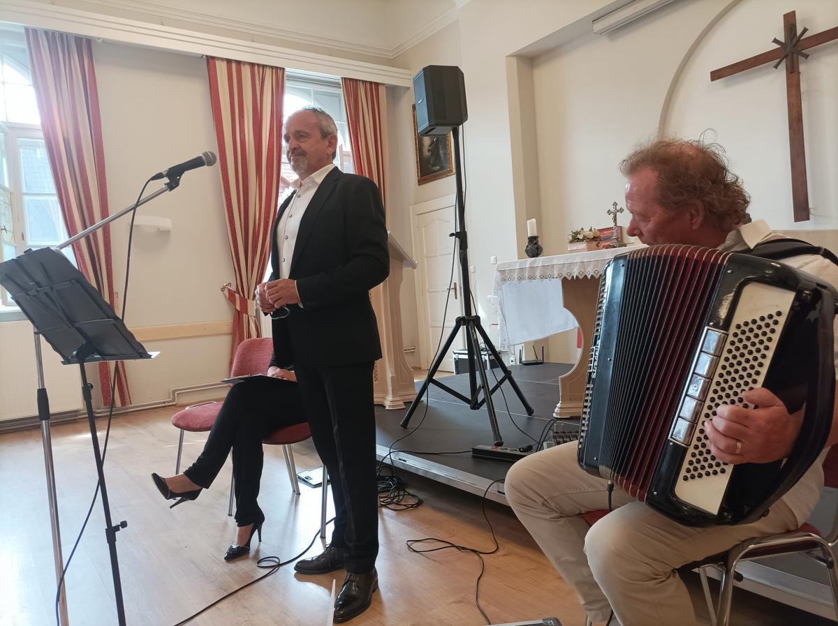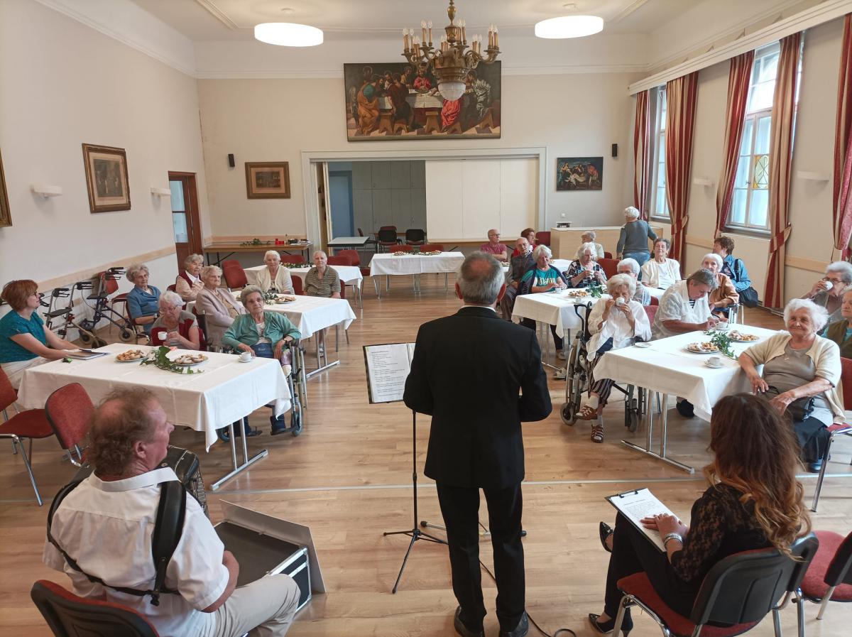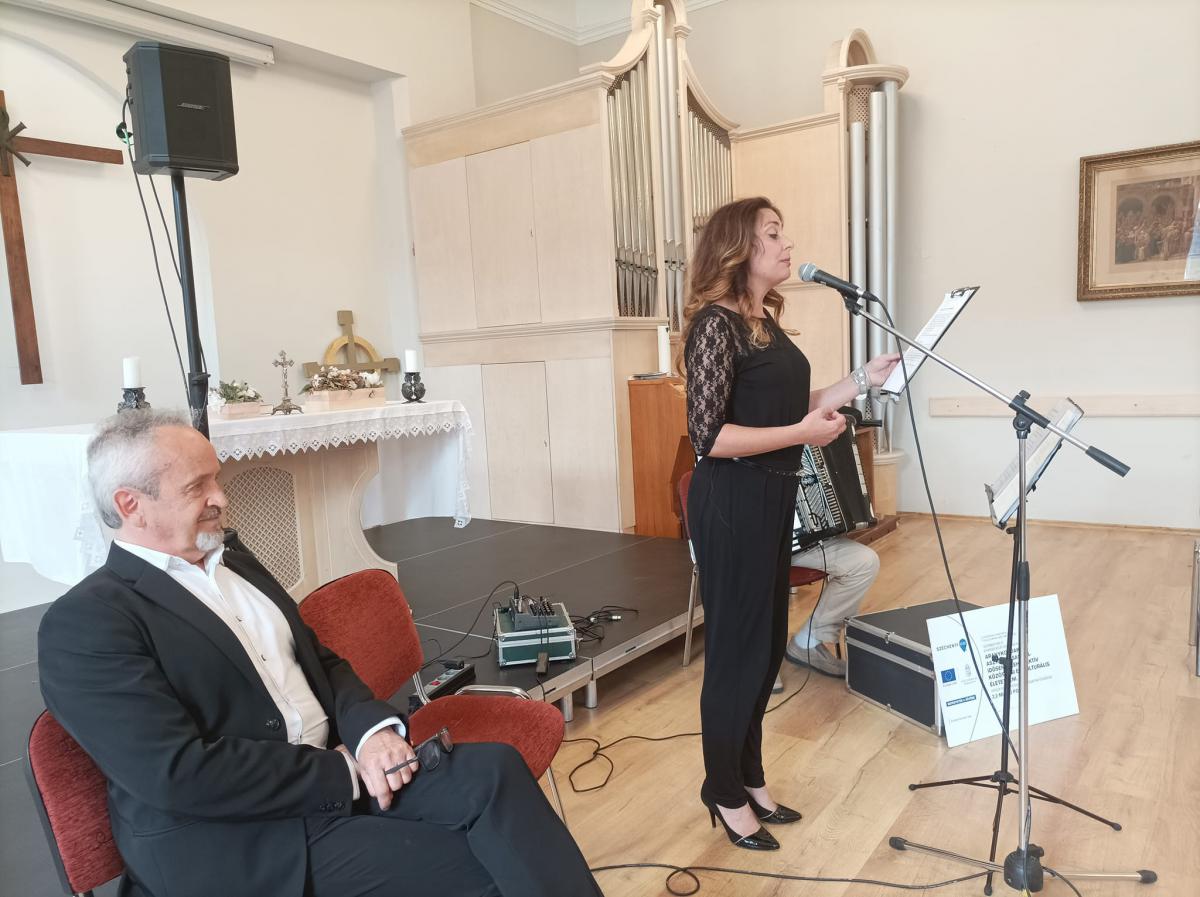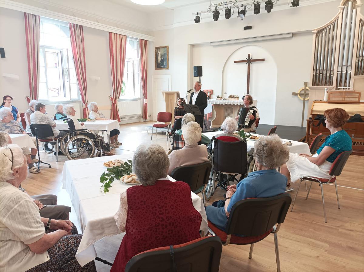 Az intézményünk idős lakói az evangélikus Kápolnában jöttek össze, ahol Szabó Tibor, a Weöres Sándor Színház igazgatója, felesége Bálint Éva színésznő előadásukkal és Peltzer Géza harmonikájával tette mindannyiunk számára érezhetővé és tapinthatóvá, hogy a színház összeköt minket. Lehet nélküle élni, de nem érdemes. Vendégeink zenével, verssel, történetekkel varázsoltak felejthetetlen élményt lakóink számára. A középpontban a szerelem állt. A hálás közönség többek között hallhatta a Meseautót, az O Sole Mio-t, s még nagy sok slágert. Ez az utolsó záró alkalom is bizonyította, hogy idősen is lehet aktív közösségi és kultúrális életet élni.