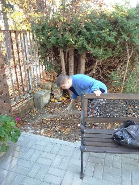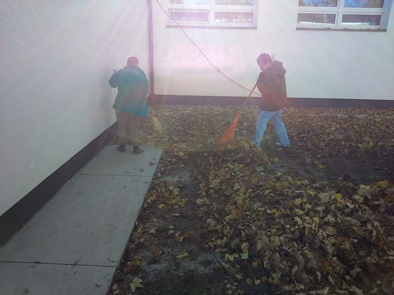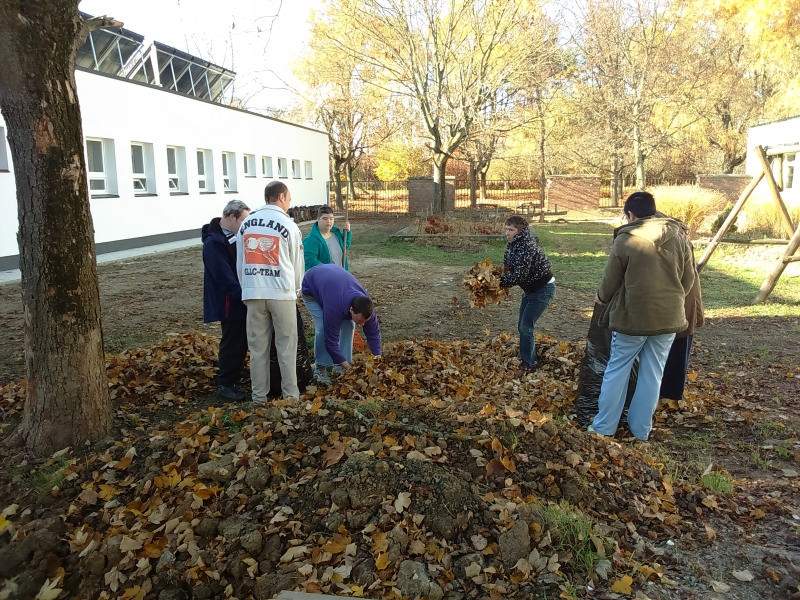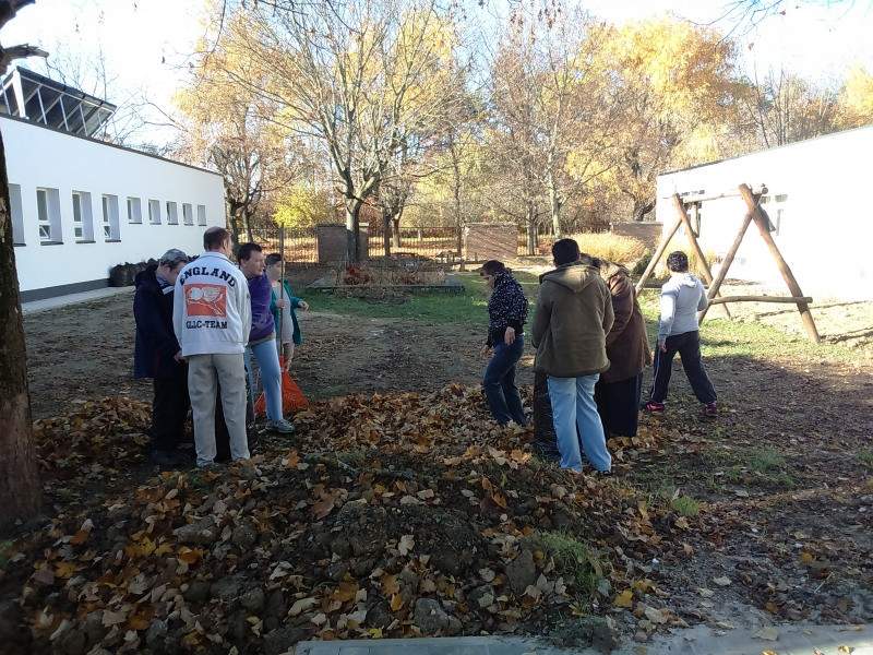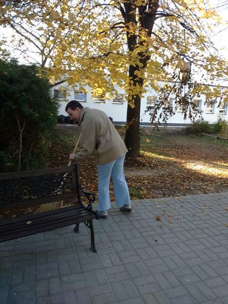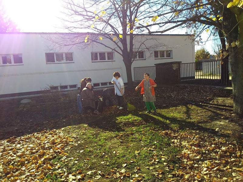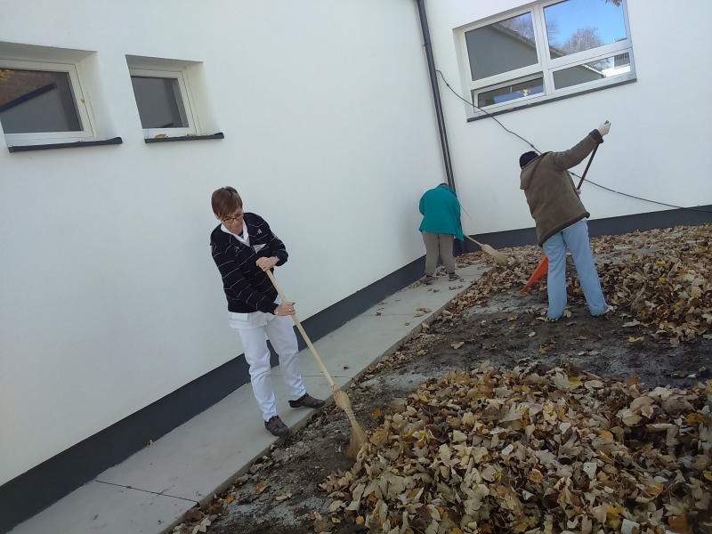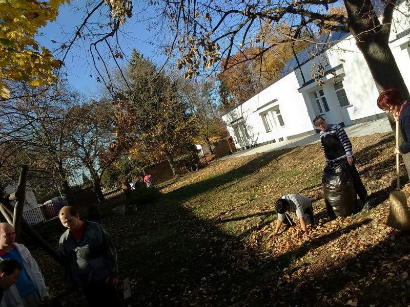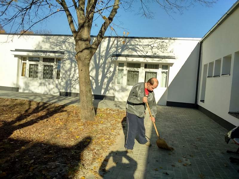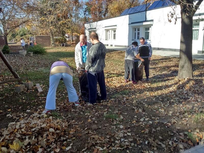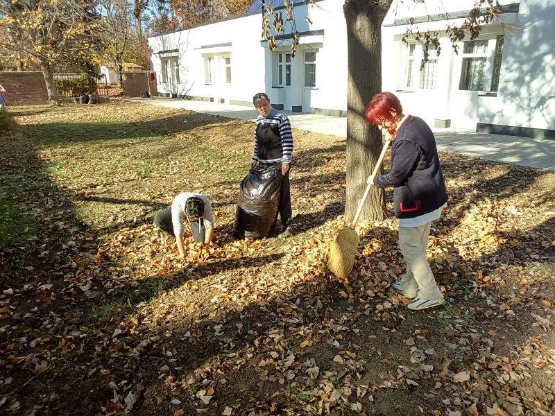 Mint minden évben az osztályon lévő kis udvart az ott lakó idősek és fogyatékos fiatalok rakják rendbe. Most is így történt. Verőfényes novemberi héten több napon keresztül rendeztük, takarítottuk az udvarokat. Pl. levél söprés, gereblyézés, levél ág szedés. A résztvevő lakók nagyon ügyesen dolgoztak, beszélgetés keretében folyt a munka.