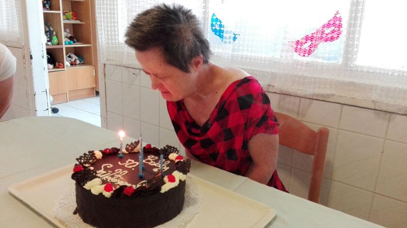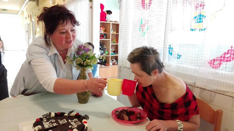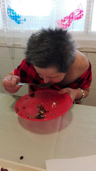 A torta és üdítők most sem hiányoztak a partiról, Fintuska pedig nagyon boldog volt.
