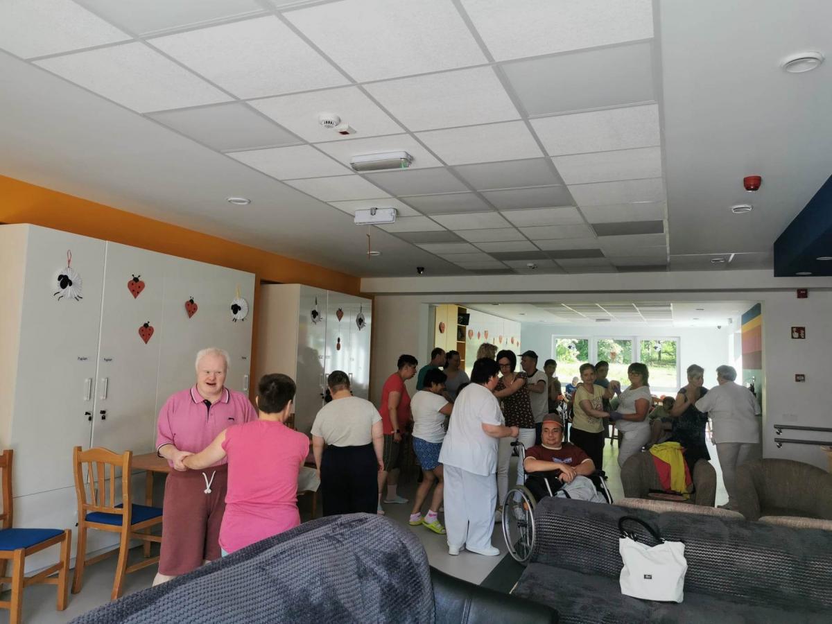 Májusban sem maradhatott el születés és névnapos fogyatékkal élő lakóink köszöntése.Táncos mulatsággal ünnepeltünk a Johanneumban. Az ilyen alkalmak napokig kihatnak a ránk bízottak hangulatára, és vidám beszédtémát szolgáltatnak.