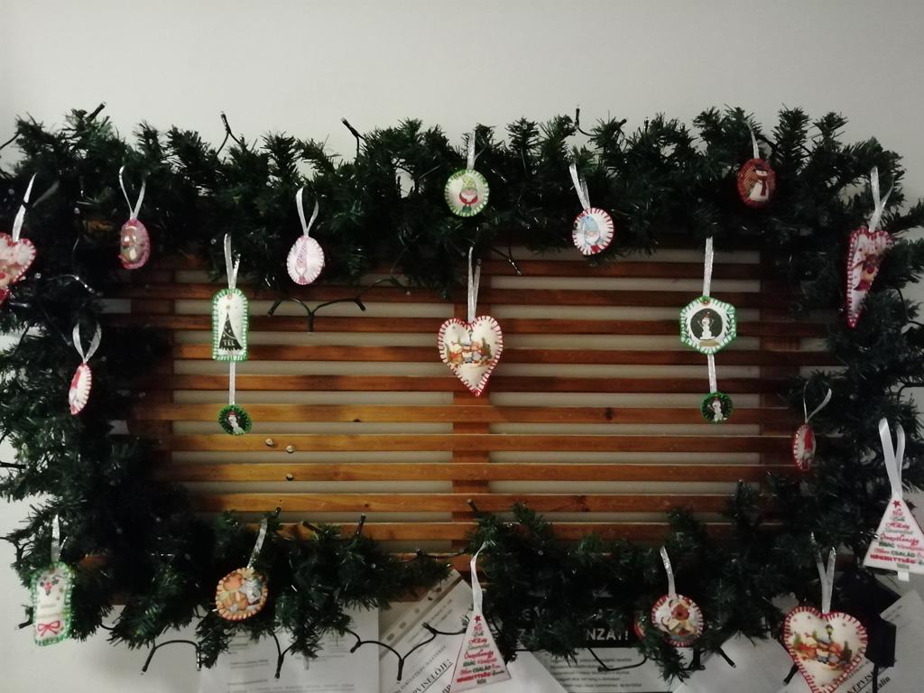 A Johanneum 1. osztályára a hölgyek ilyen díszeket készítettek, némelyik a régi karácsonyi képeslap mintájával díszített. A beszélgetés ezáltal nagyon gyorsan a régi képeslapokra, s gyűjtésükre terelődött a szó. Így készülődtünk a karácsonyra, hangolódtunk a közeledő ünnepre.