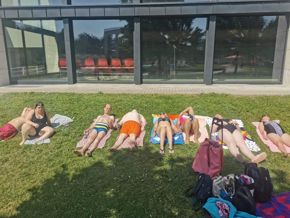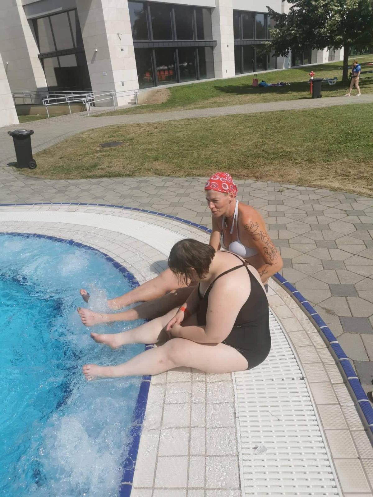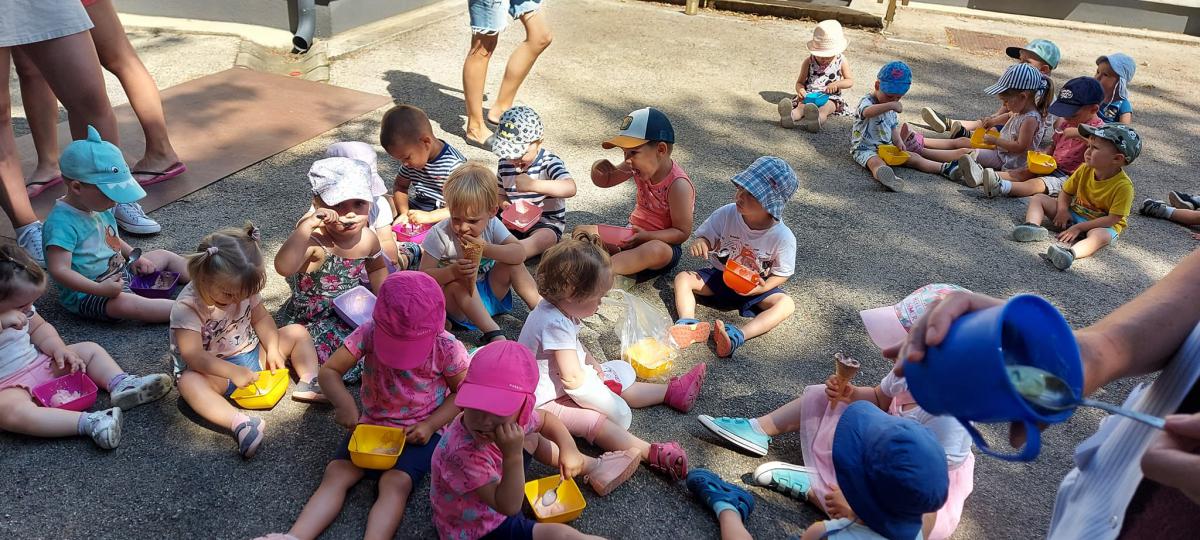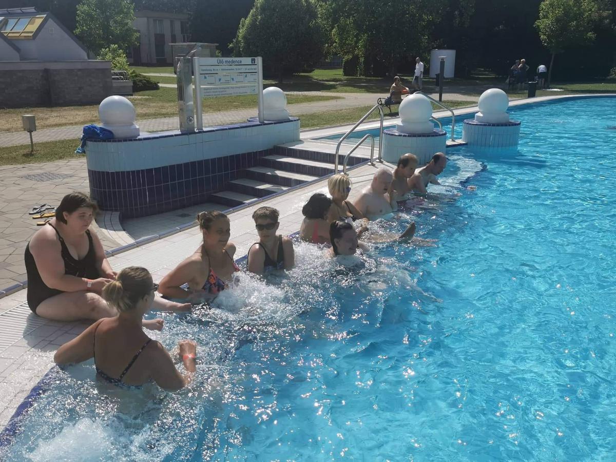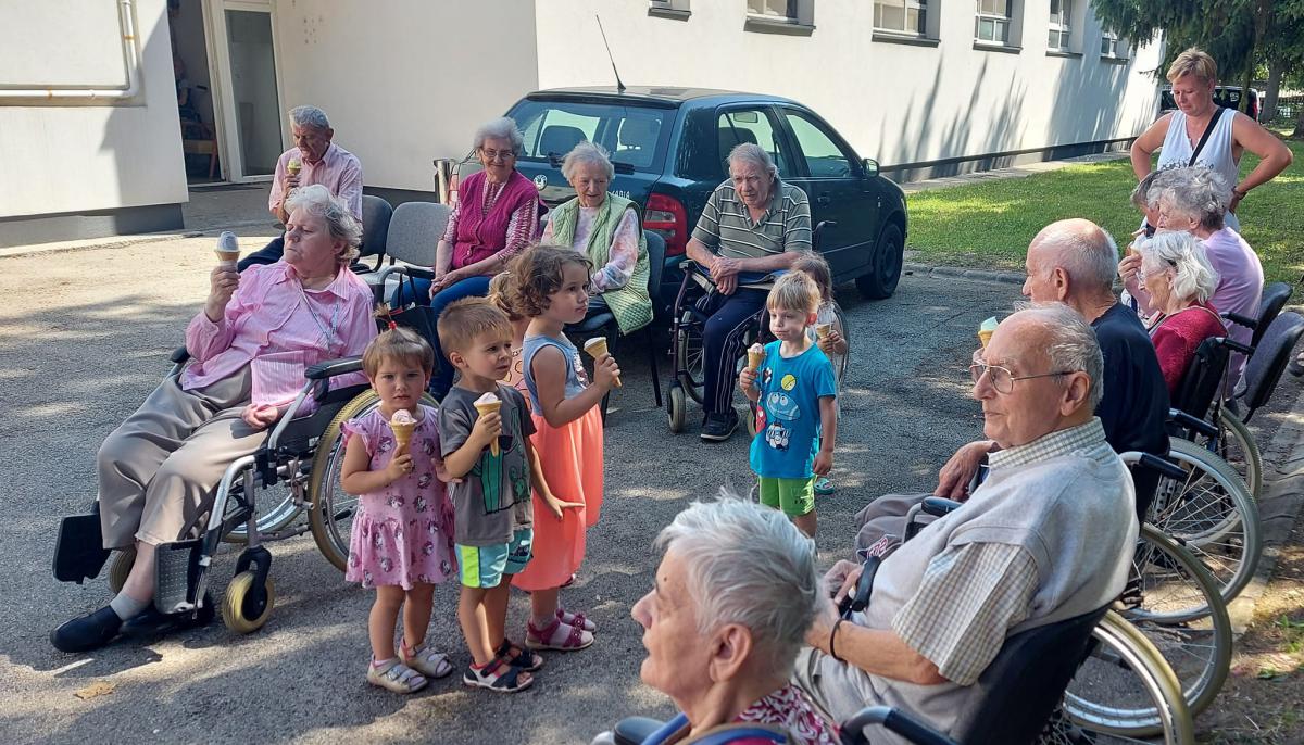 Míg idén először strandoltunk a fogyatékkal élő lakóinkkal a Termálfürdőben, addig az idős lakóink és kis bölcsiseink fagyiztak a forró nyári délelőttön.