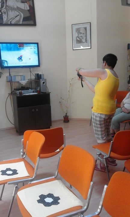 A fogyatékos fiatalokkal kipróbáltuk az új tévés játékot,a Wii-t. Nagy sikere volt a gyerekek körében.