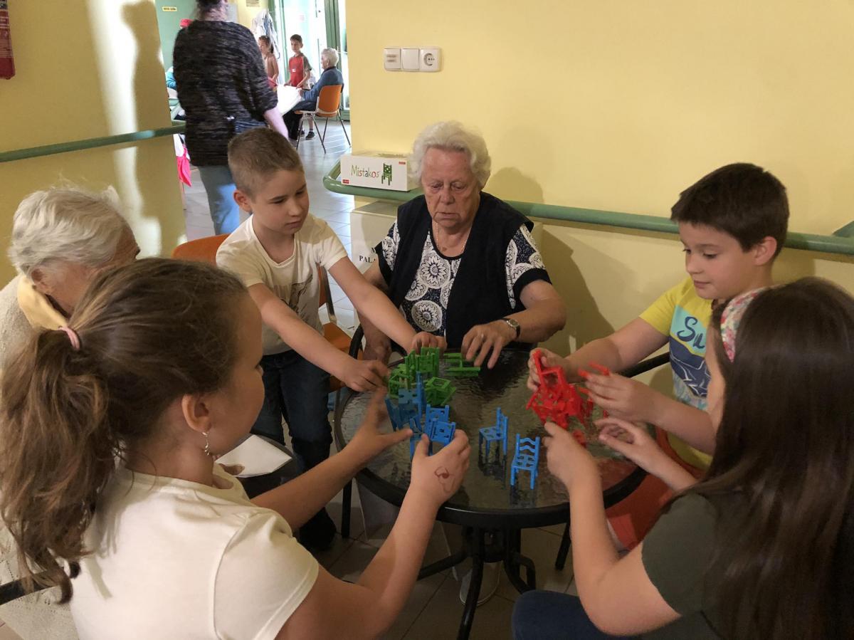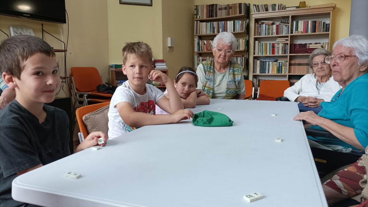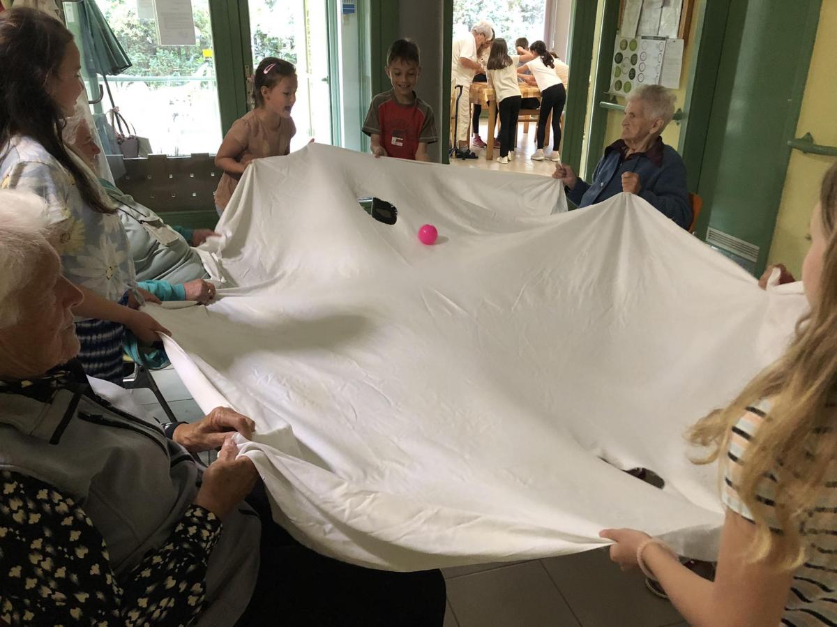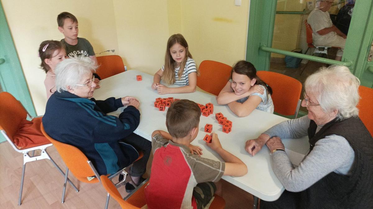 Egy rövid tízórai következett, majd kezdődhetett a szórakozás. Különböző társasjátékokat, ügyességi játékokat játszottak együtt az idősek és a diákok. Nevetéstől volt hangos a Túróczy Zoltán Szeretetotthon épülete. Főleg a lepedőfoci tartogatott nagy izgalmakat. Lakóink gyermeki örömmel vettek részt a játékokban. S bár sajnos sokaknak vannak korukból fakadóan mozgásszervi fájdalmaik, ezen a délelőttön ezek háttérbe szorultak, igaz lehetséges, hogy másnapra némi izomlázzal ébredtek, de csakis a nevetőizmokat sikerült túlterhelni.