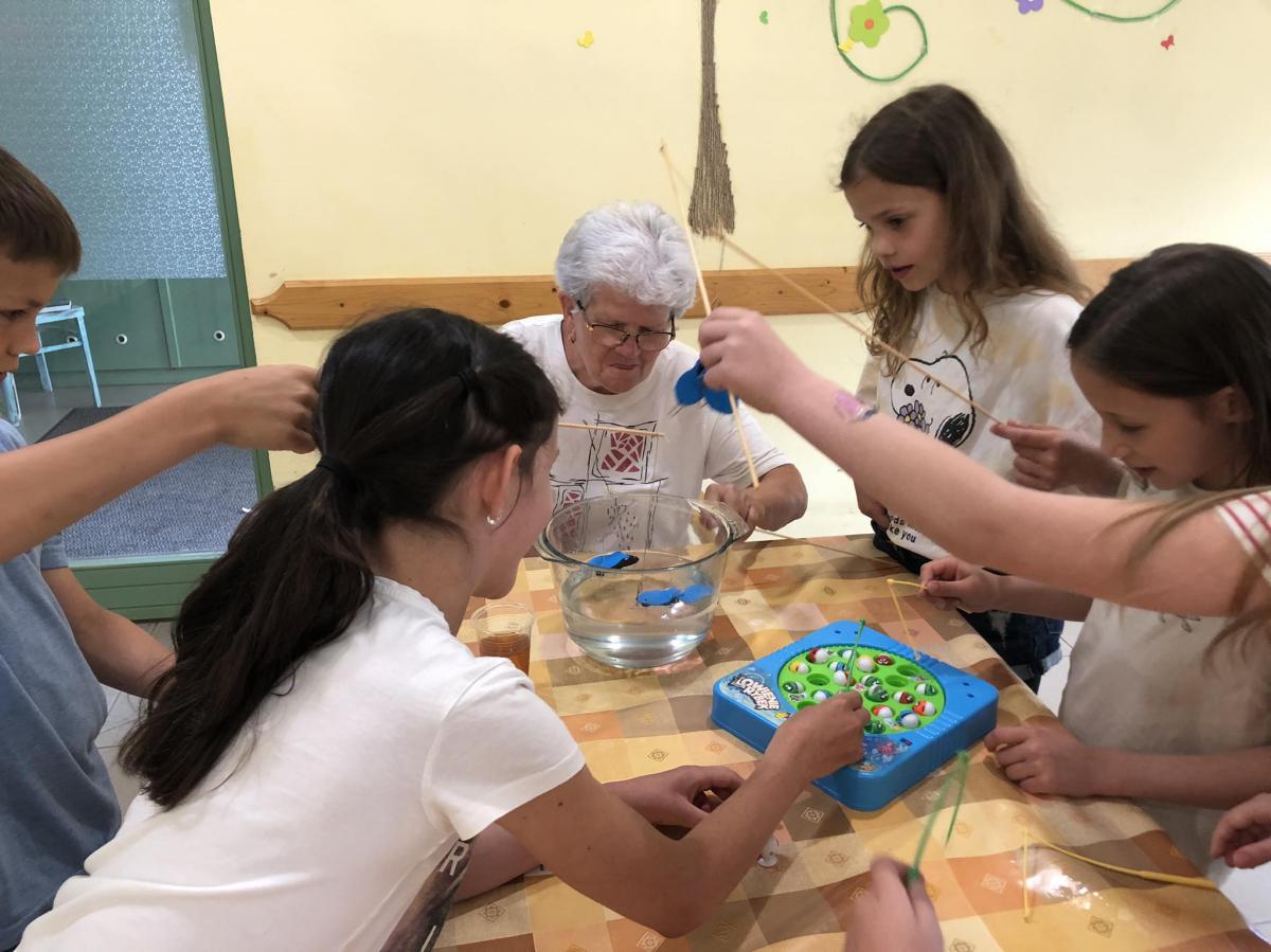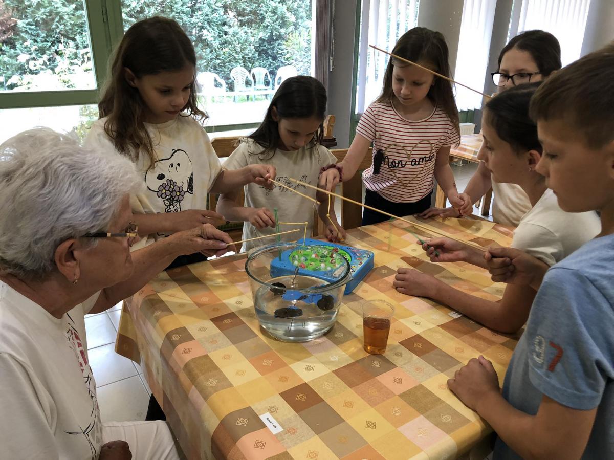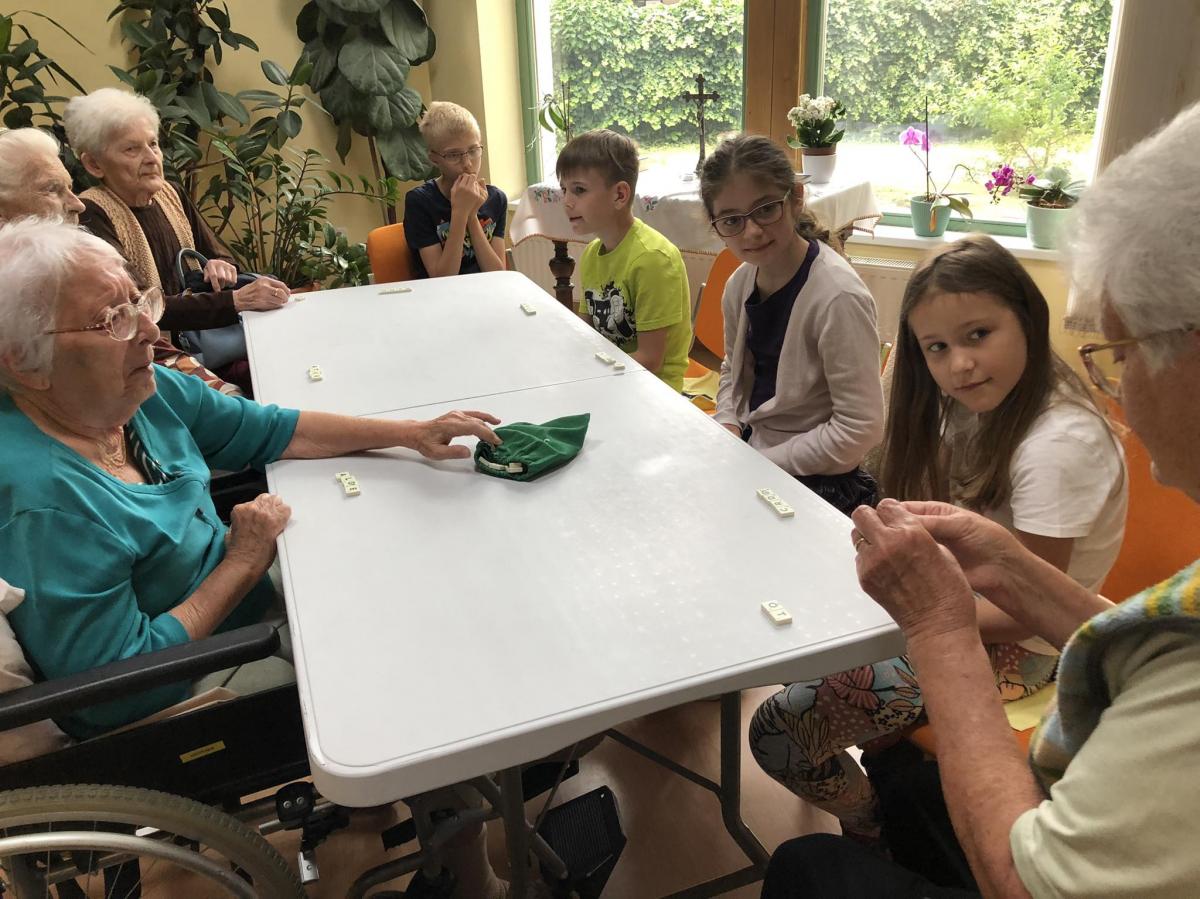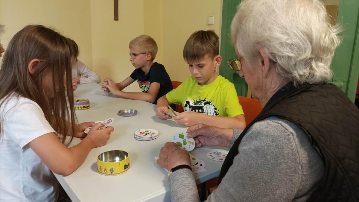 Egy rövid tízórai következett, majd kezdődhetett a szórakozás. Különböző társasjátékokat, ügyességi játékokat játszottak együtt az idősek és a diákok. Nevetéstől volt hangos a Túróczy Zoltán Szeretetotthon épülete. Főleg a lepedőfoci tartogatott nagy izgalmakat. Lakóink gyermeki örömmel vettek részt a játékokban. S bár sajnos sokaknak vannak korukból fakadóan mozgásszervi fájdalmaik, ezen a délelőttön ezek háttérbe szorultak, igaz lehetséges, hogy másnapra némi izomlázzal ébredtek, de csakis a nevetőizmokat sikerült túlterhelni.